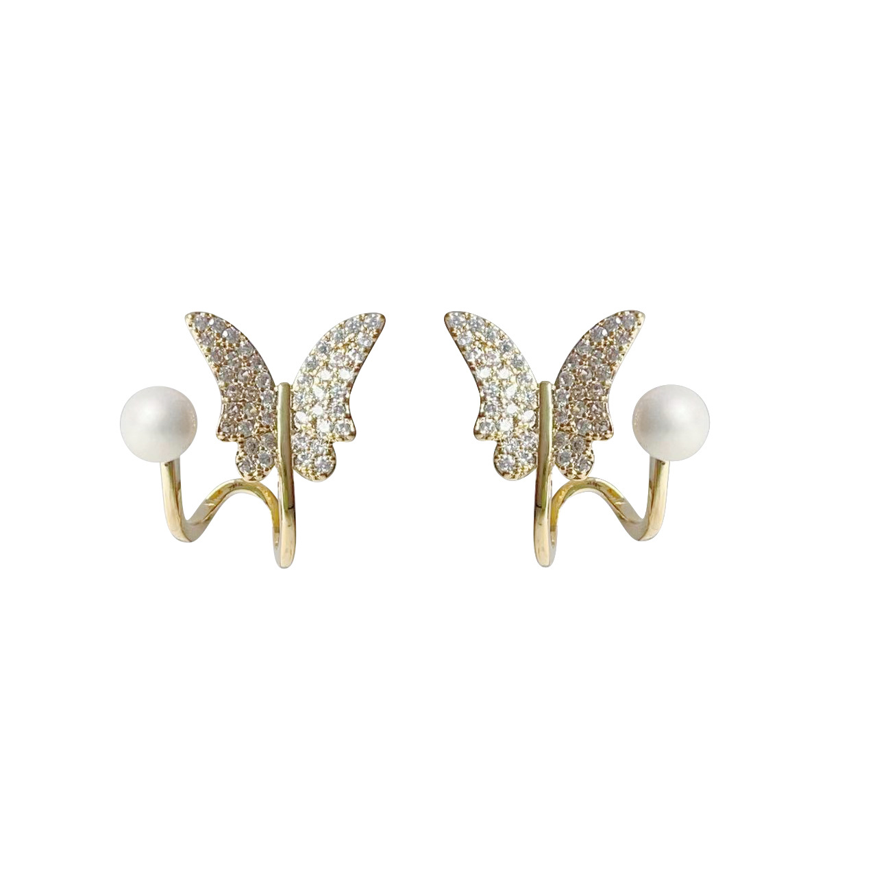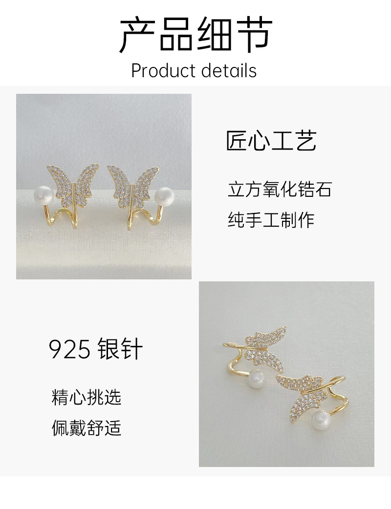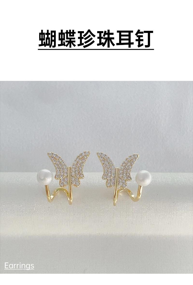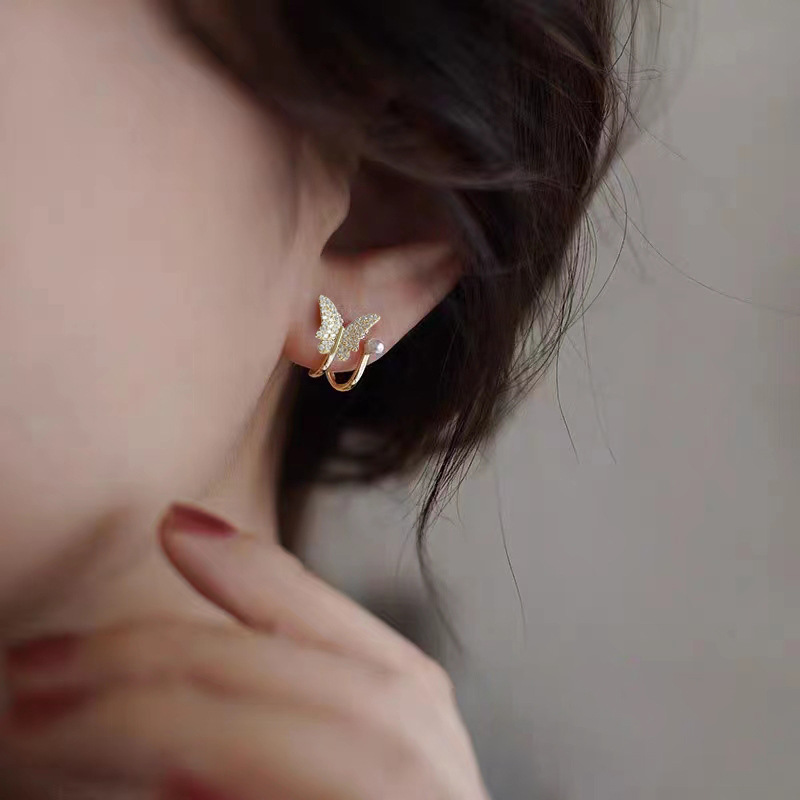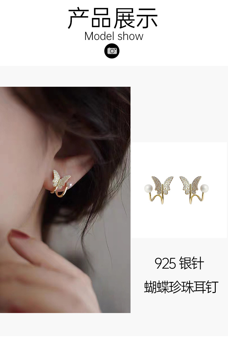 高级感设计蝴蝶珍珠耳钉微镶锆石女气质百搭耳环2023年新款潮耳饰 English | 投诉