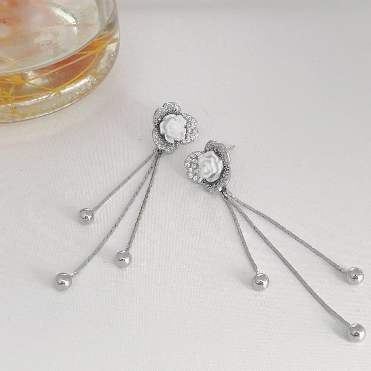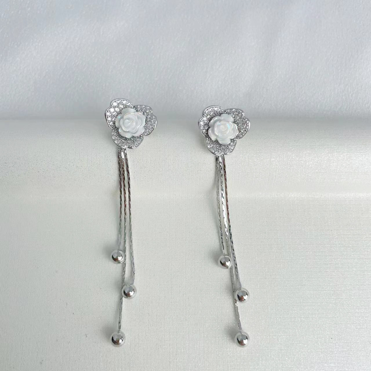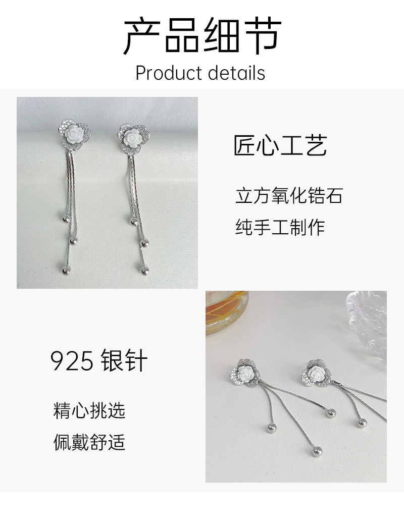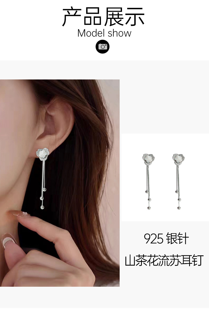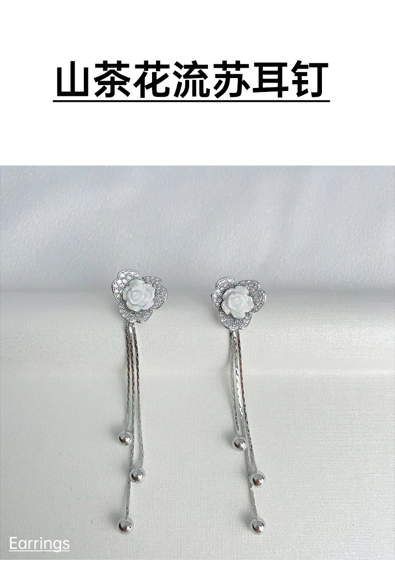 925银针山茶花耳环2023新款女小众设计微镶锆石流苏耳独特耳饰耳 English | 投诉