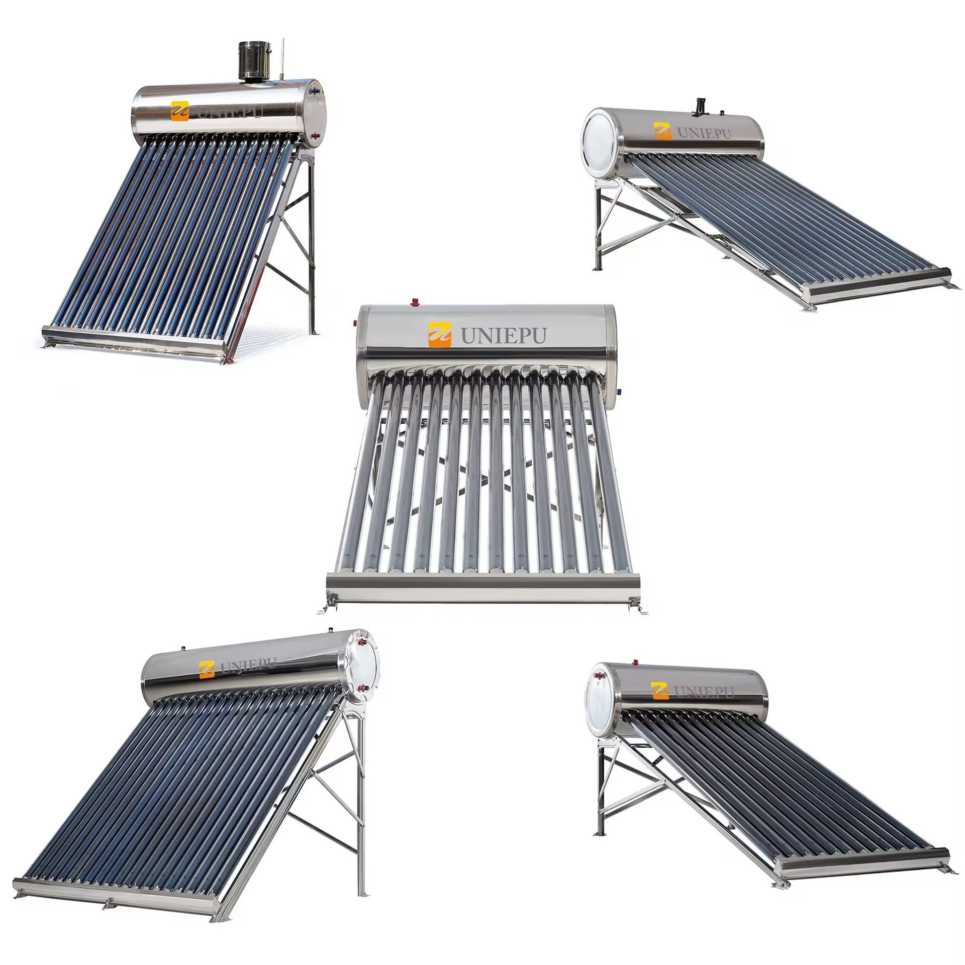 不锈钢太阳能热水器水箱 + 不锈钢U型支架(带螺丝) + 配套数量的真空管 + 塑料镁棒