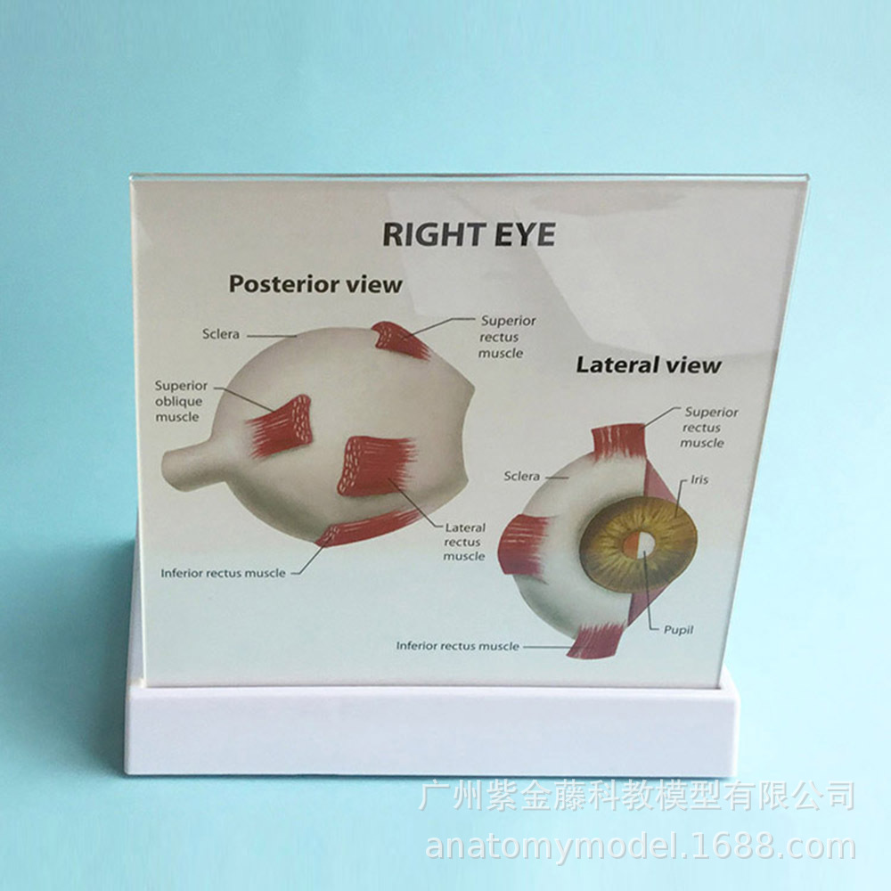 模型置于稳固底座或透明有机玻璃盒中,支持眼球正中矢状切面的观察,清晰呈现内部与外部结构。部分版本还模拟常见眼科疾病(如白内障、青光眼、糖尿病视网膜病变等),适用于临床培训与患者沟通。