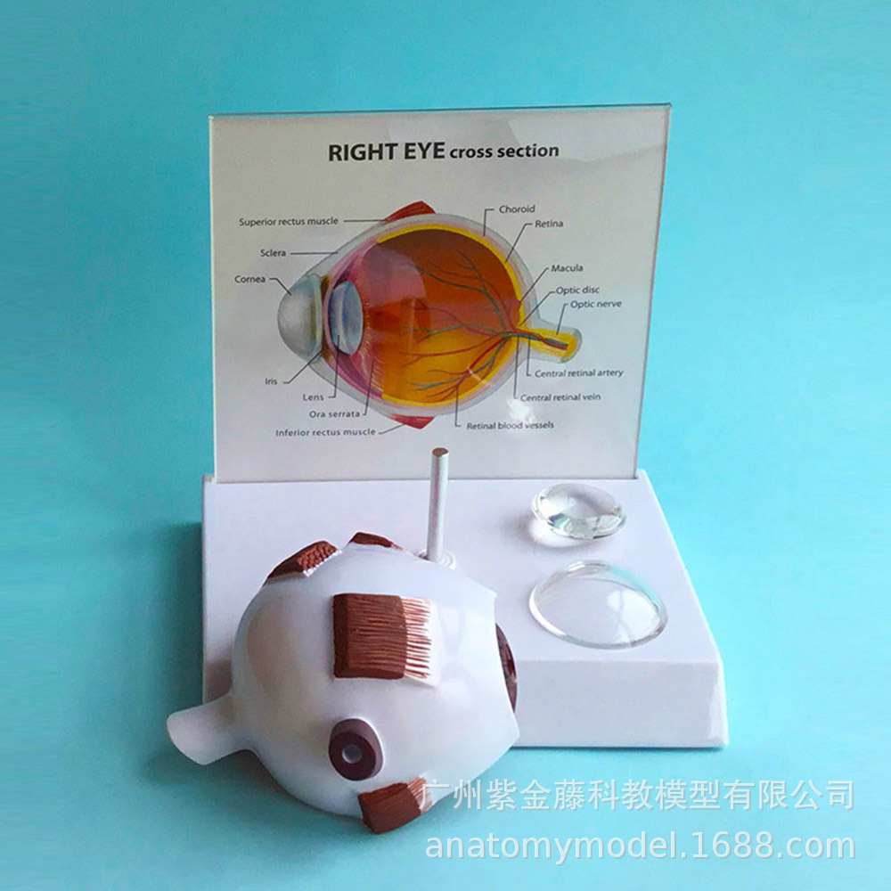 这款眼睛仿真教学模型采用高精度设计,按实际眼球结构,专为医学教学与科普教育打造。模型展示了眼球的主要解剖结构,包括角膜、虹膜、晶状体、玻璃体、视网膜、视神经等,并配有可拆卸部件,便于教学演示与互动操作。