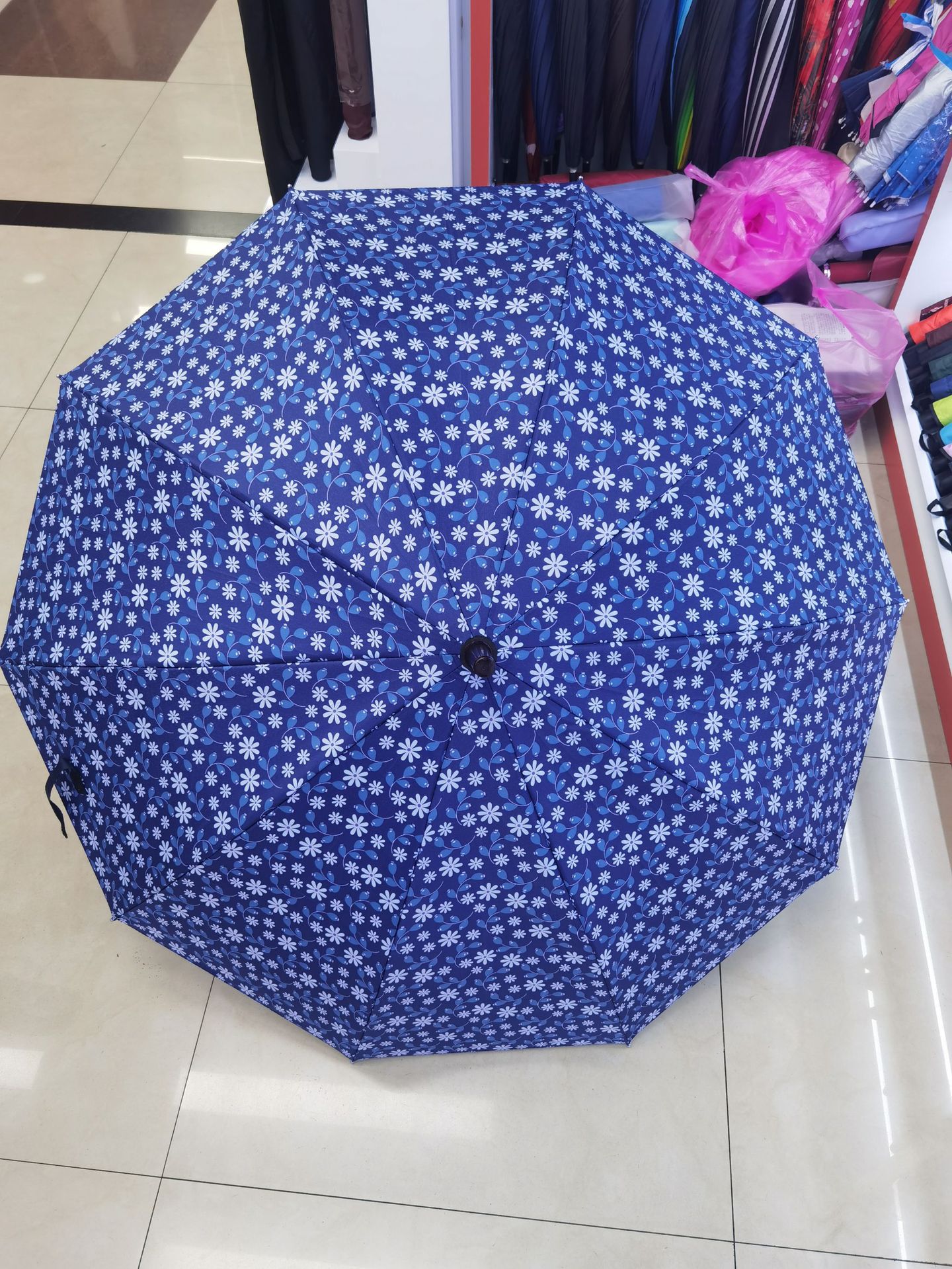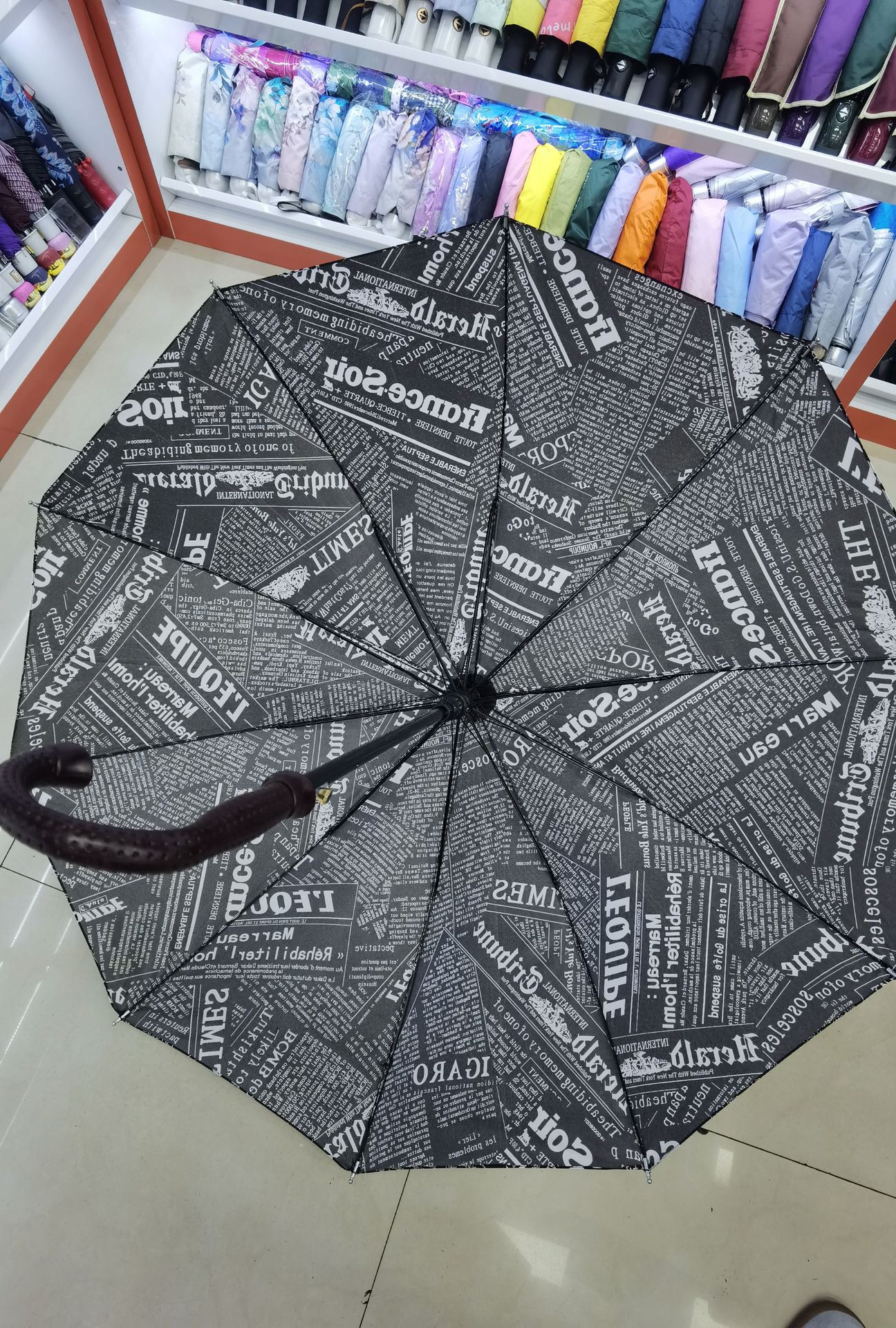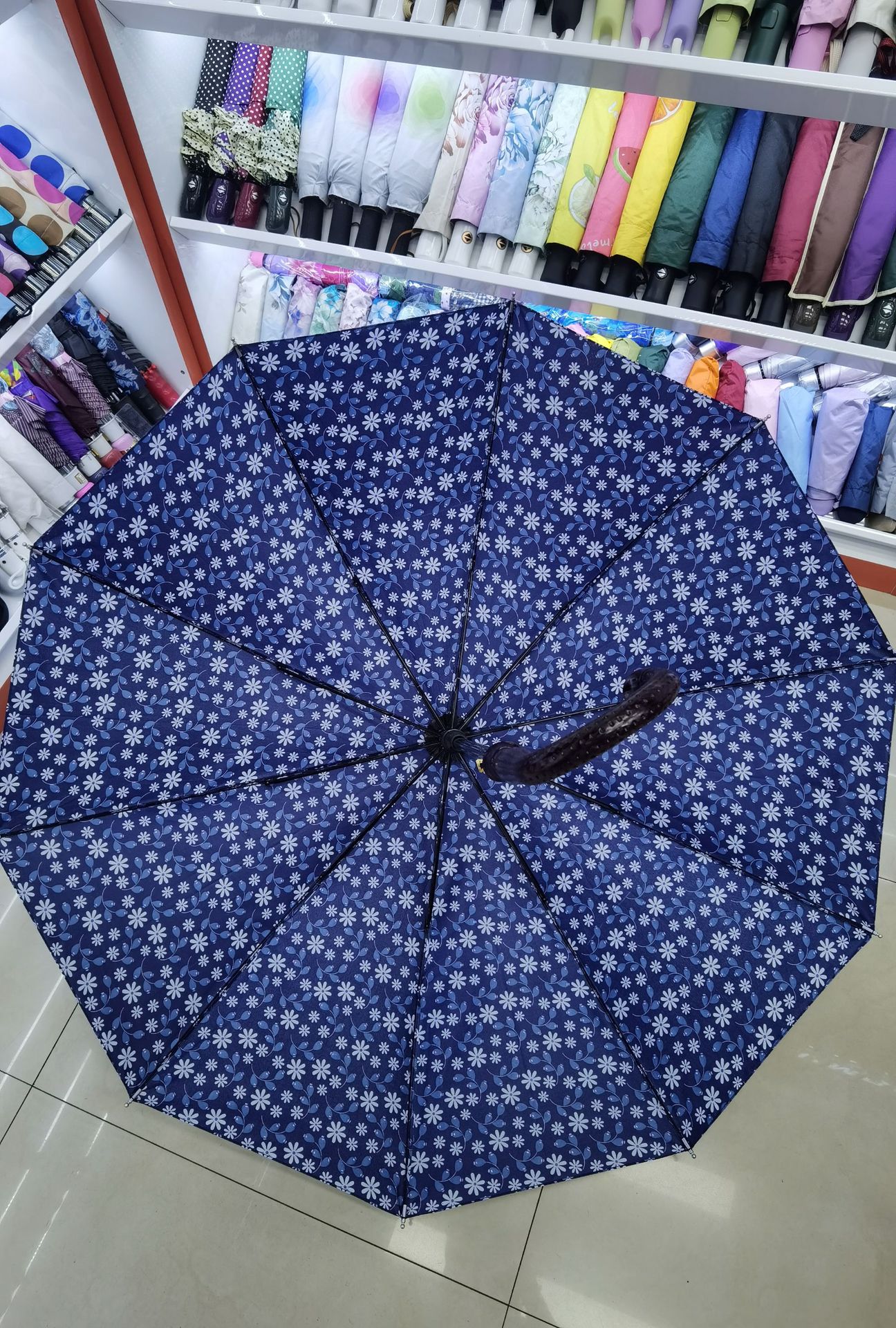 10骨花色弯柄伞,坚固骨架抗风稳,精致弯柄握感佳。多彩花色,为雨天添一抹亮色,实用又美观,是你雨天出行的时尚好搭档~