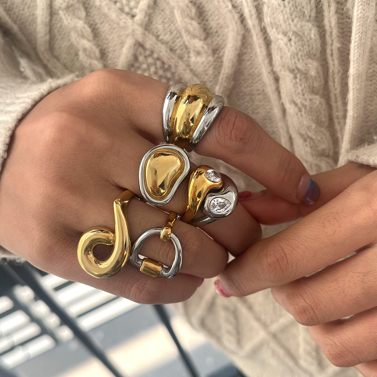 杰鼎拼色戒指钛钢不掉色手饰轻奢高级指环不锈钢跨境饰品小众设计 English | 投诉