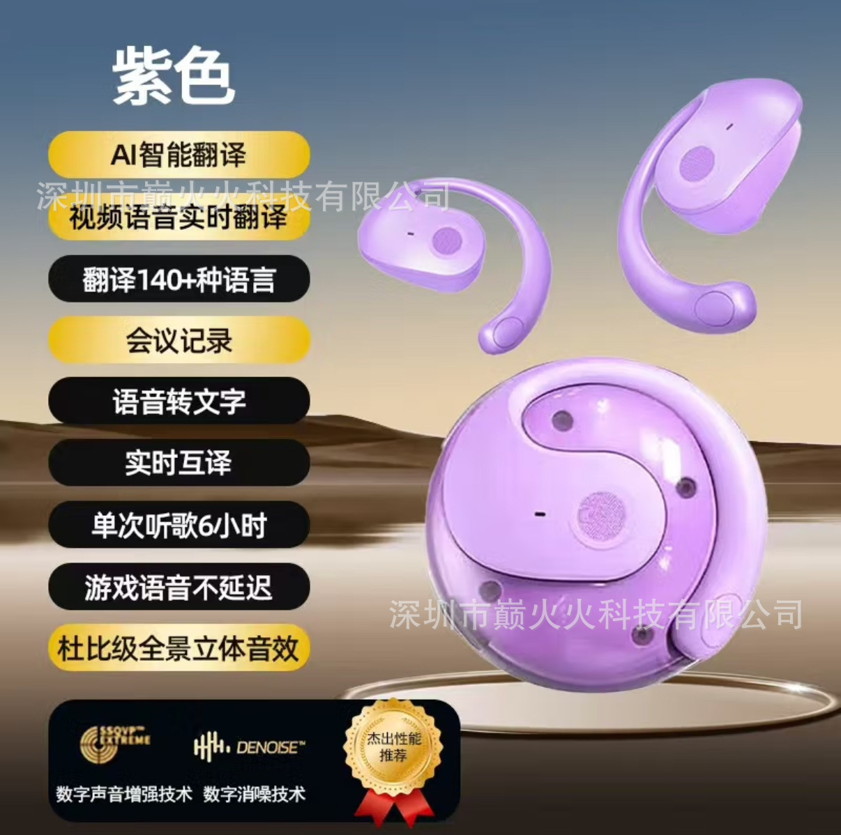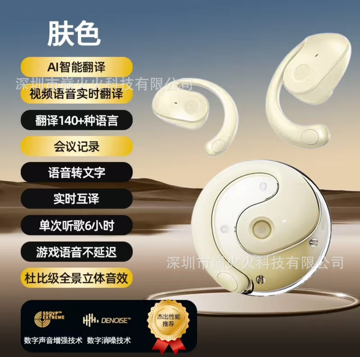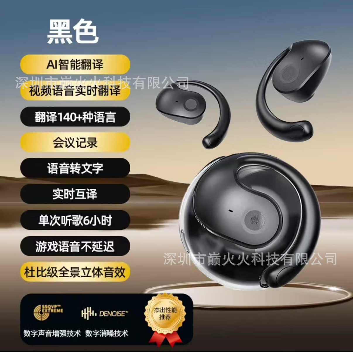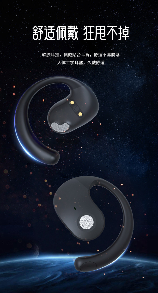 品牌: 中性 功能: 超长续航,支持音乐 防水性能: 不支持防水 芯片类型: 中科蓝讯 材质: PC+ABS 续航时间: 4-8小时 使用方式: 挂耳式 传输范围: 10米 蓝牙协议: 5.4 是否单双耳: 双边立体声 主要下游平台: 独立站,LAZADA,其他 主要销售地区: 北美,东北亚,中东,其他 有可授权的自有品牌: 否 是否跨境出口专供货源: 是 支持订制: 支持 是否专利货源: 否 模具类型: 私模 上市年份/季节: 2024年 春季 风格: 创意设计 3C证书编号: 2024200903000235 重量: 0.113 kg/套
