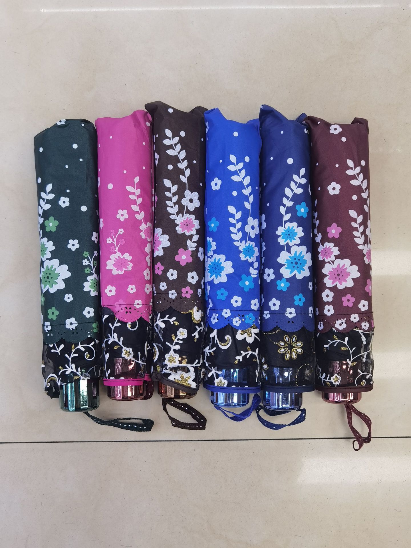 浪漫蕾丝+闪耀亮片,多彩小花印花清新动人,三折黑胶设计晴雨防晒都hold住。轻巧便携,每一次打开都是时尚秀场,让你在雨天、晴天都能绽放独属于自己的甜美光芒~