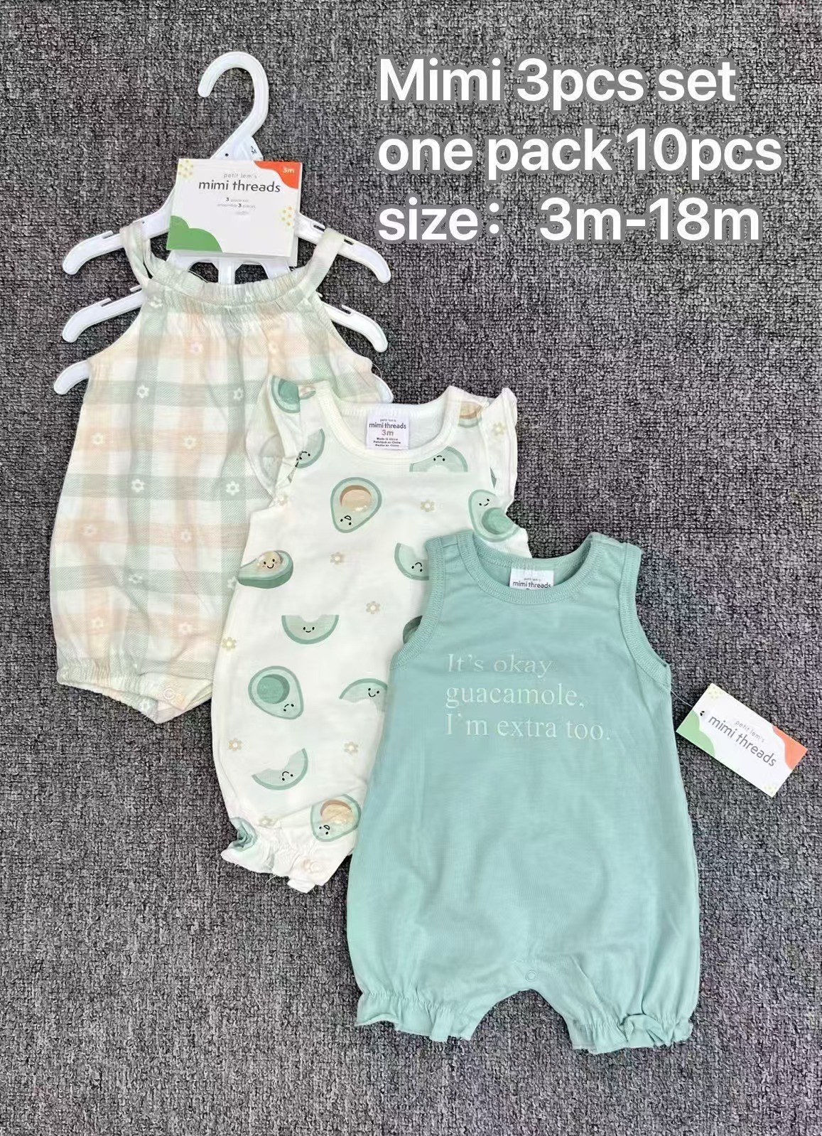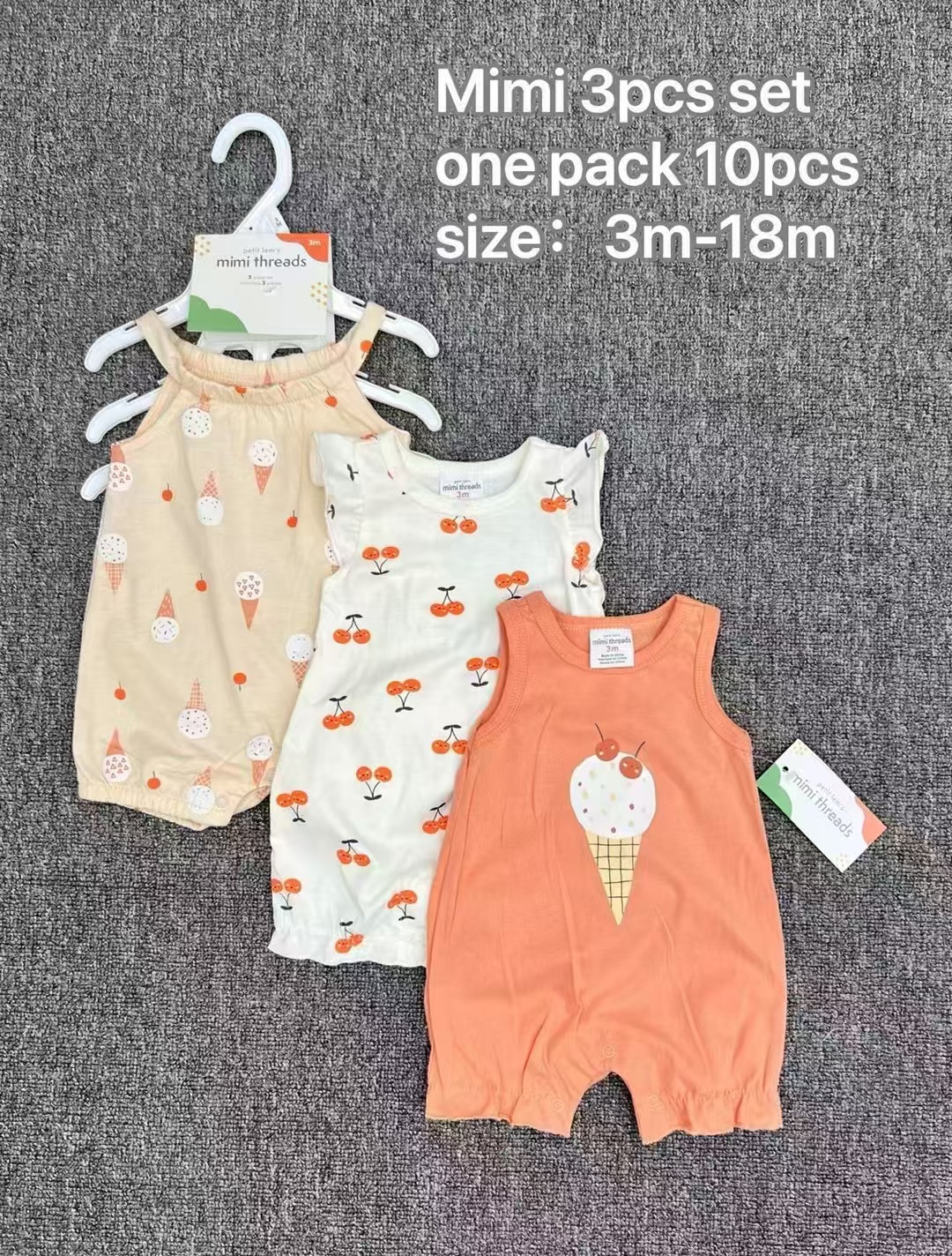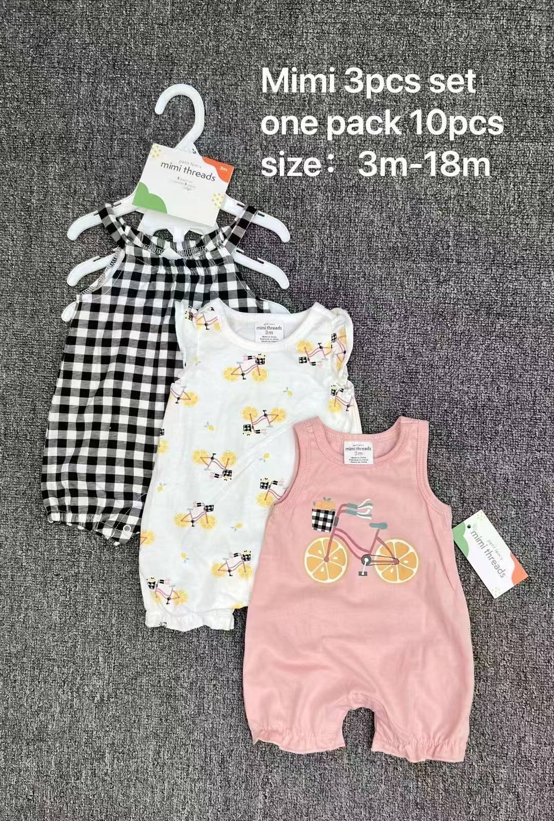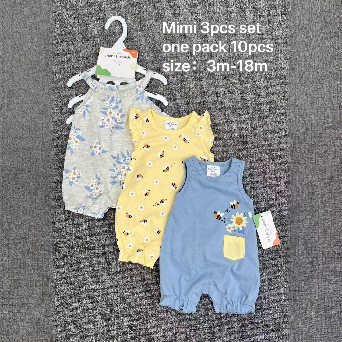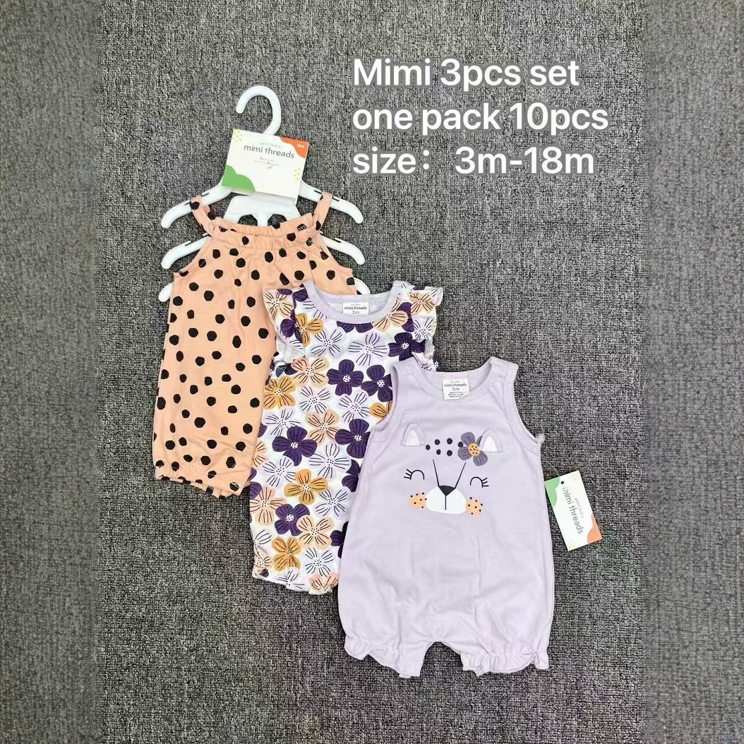 主面料成分: 棉 适合年龄段: 婴幼童(1~3岁,80~100cm) 套装件数: 三件套 厚薄: 薄款 面料名称: 棉 袖长: 短袖 货源类别: 现货 适用性别: 女 风格: 欧美 套装类型: 裤套装 礼盒内容: 服装 产地: 广东 是否连帽: 不连帽 图案: 卡通 图片实拍: 实拍无模特 是否库存: 是 上市年份季节: 2023年春季 毛头/杂余线头是否修剪: 全部修剪干净 主面料成分含量: 棉 安全等级: A类