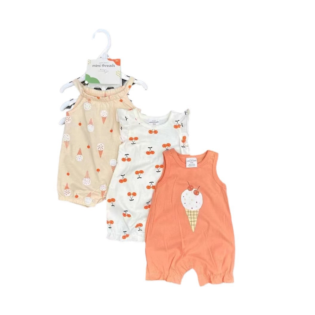 外贸批发新生儿女宝宝平角哈衣套装PL    baby girl short sleeve