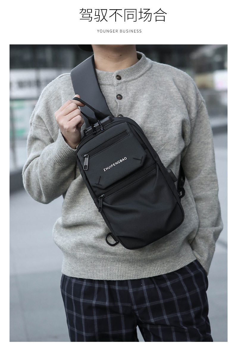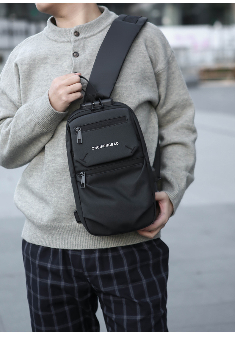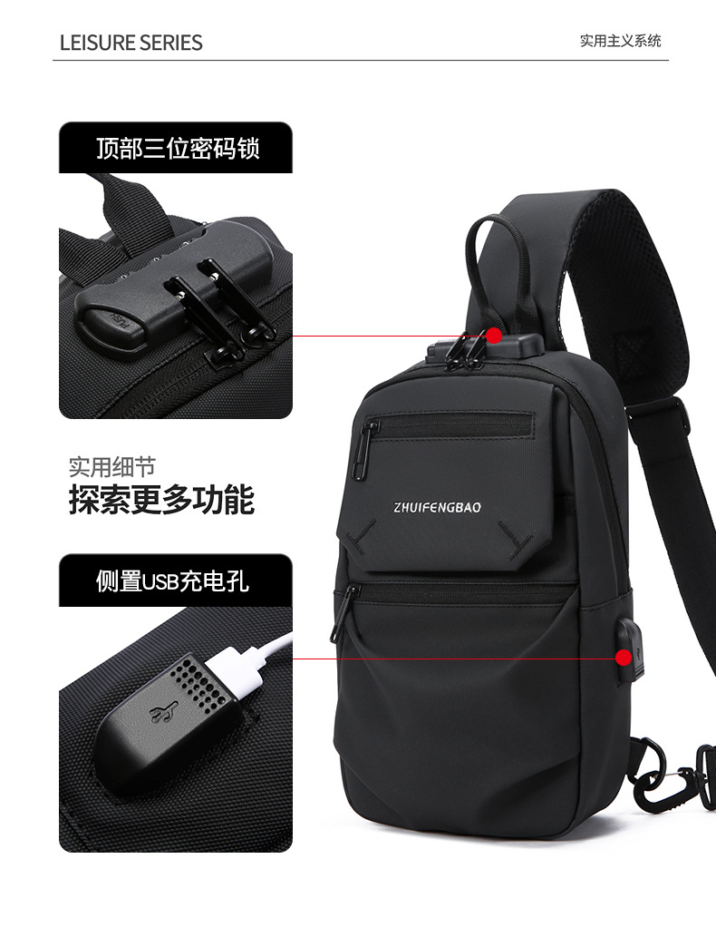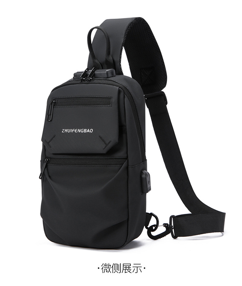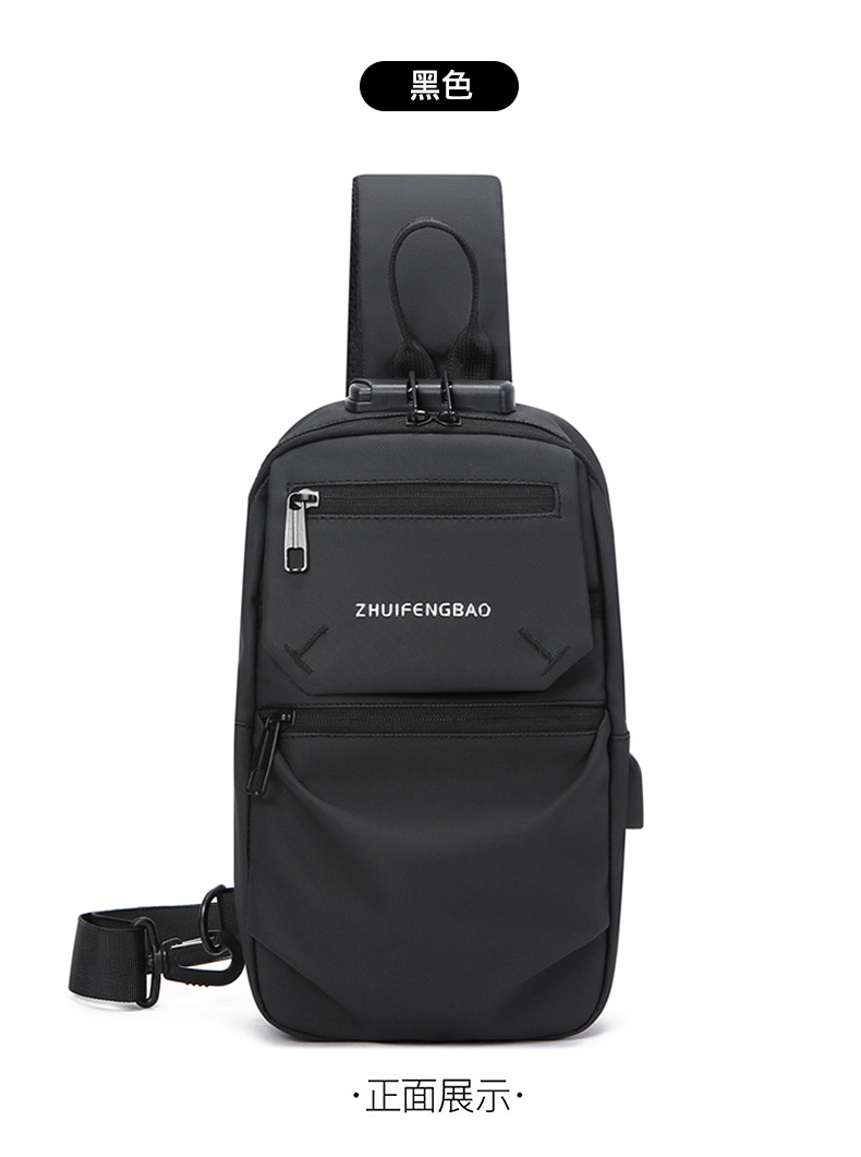 新款潮流胸包男士单肩斜挎包时尚休闲密码锁大容量骑行机车包跨境 English | 投诉