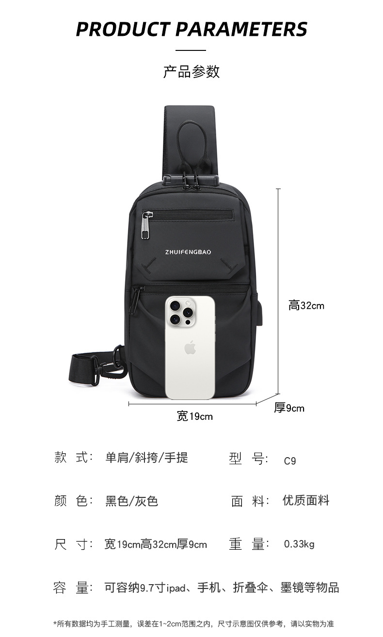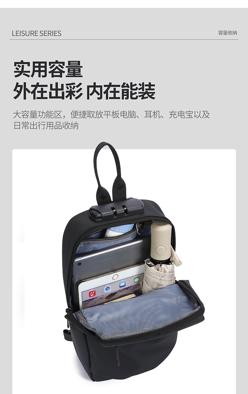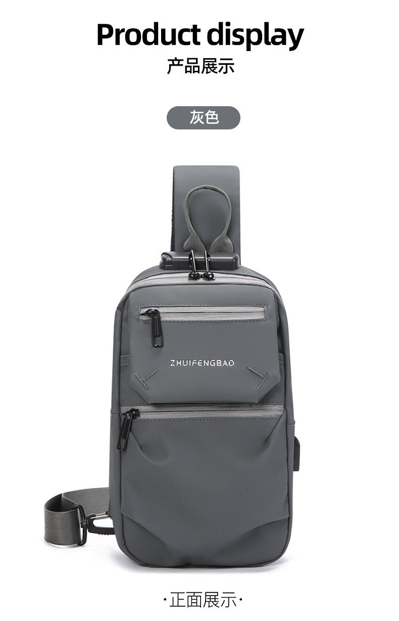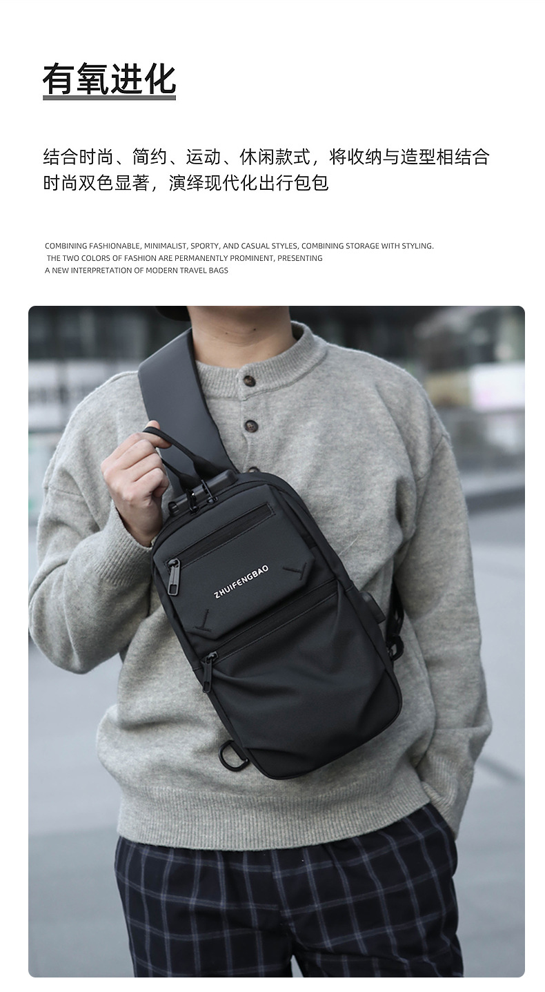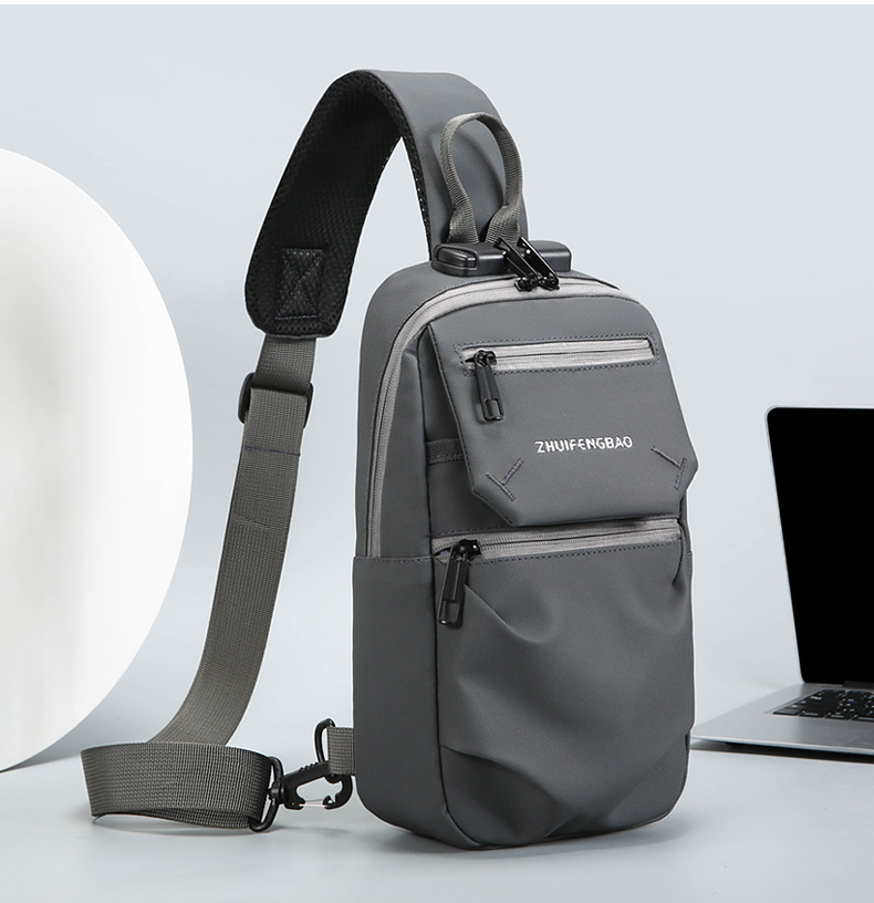 新款潮流胸包男士单肩斜挎包时尚休闲密码锁大容量骑行机车包跨境 English | 投诉