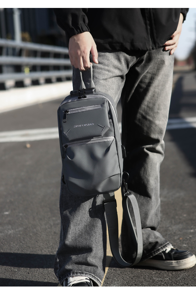 新款潮流胸包男士单肩斜挎包时尚休闲密码锁大容量骑行机车包跨境