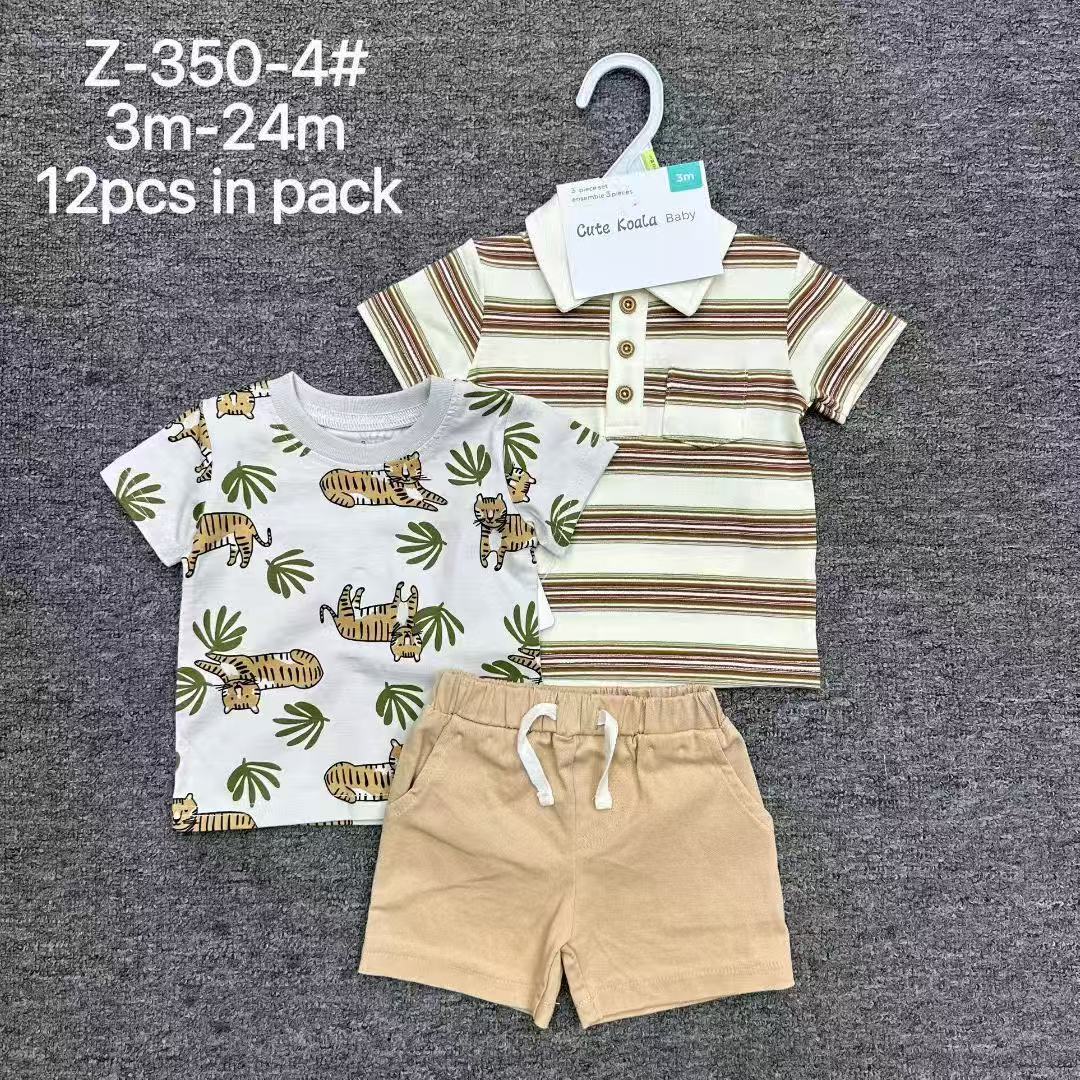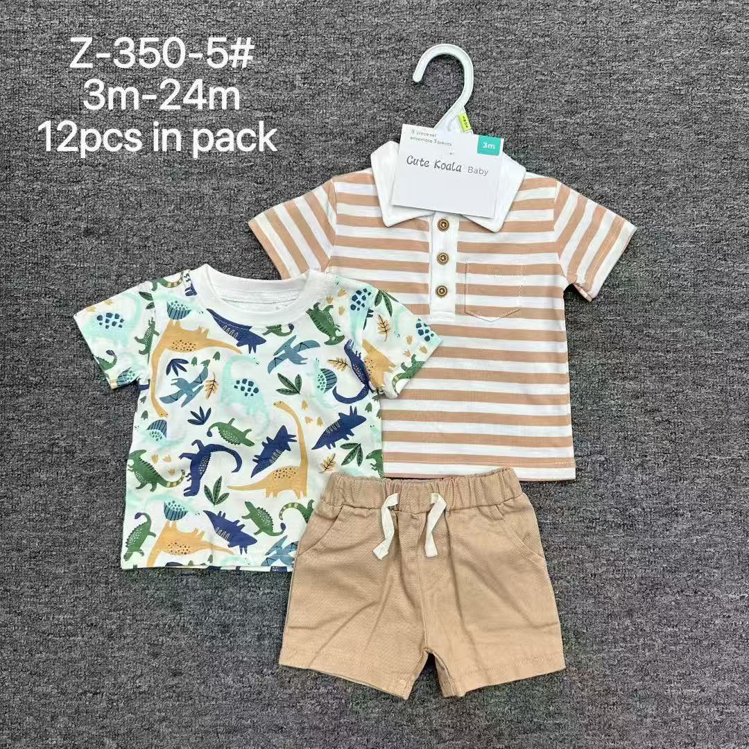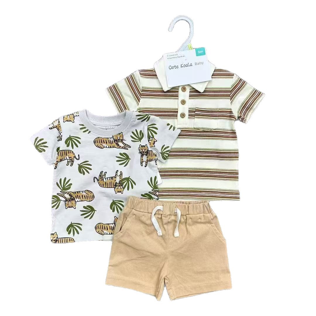 跨境外贸男童3件套 宝宝印花衬衫+T恤+短裤 短袖短裤欧美风 3pcs