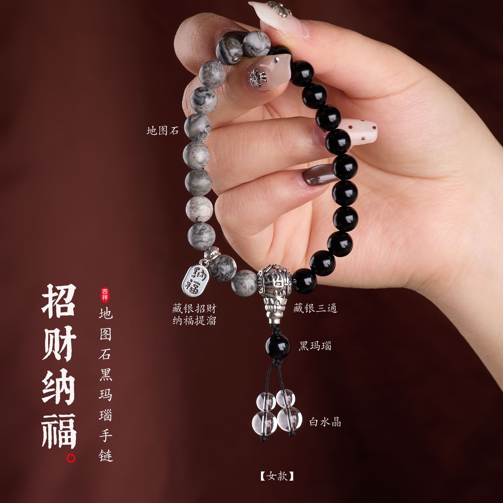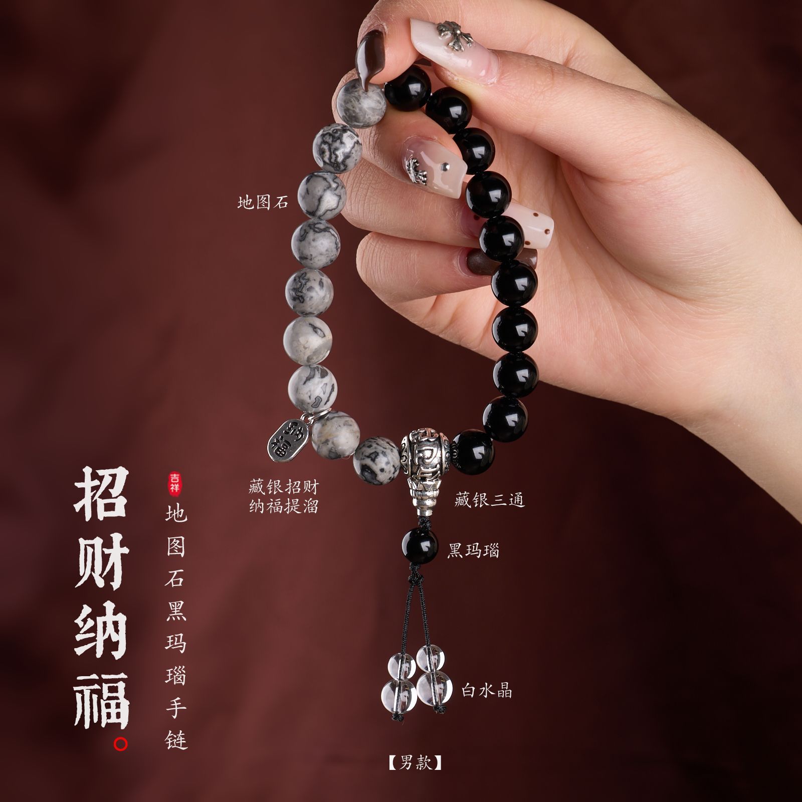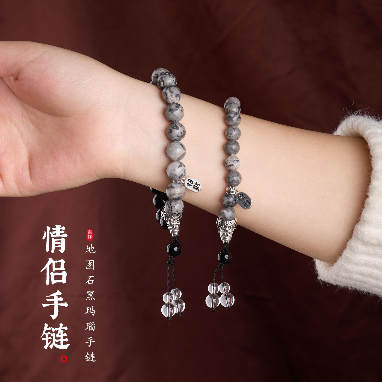 |主材|10mm黑玛瑙,8mm黑玛瑙,地图石,白水晶,铜镀银配件