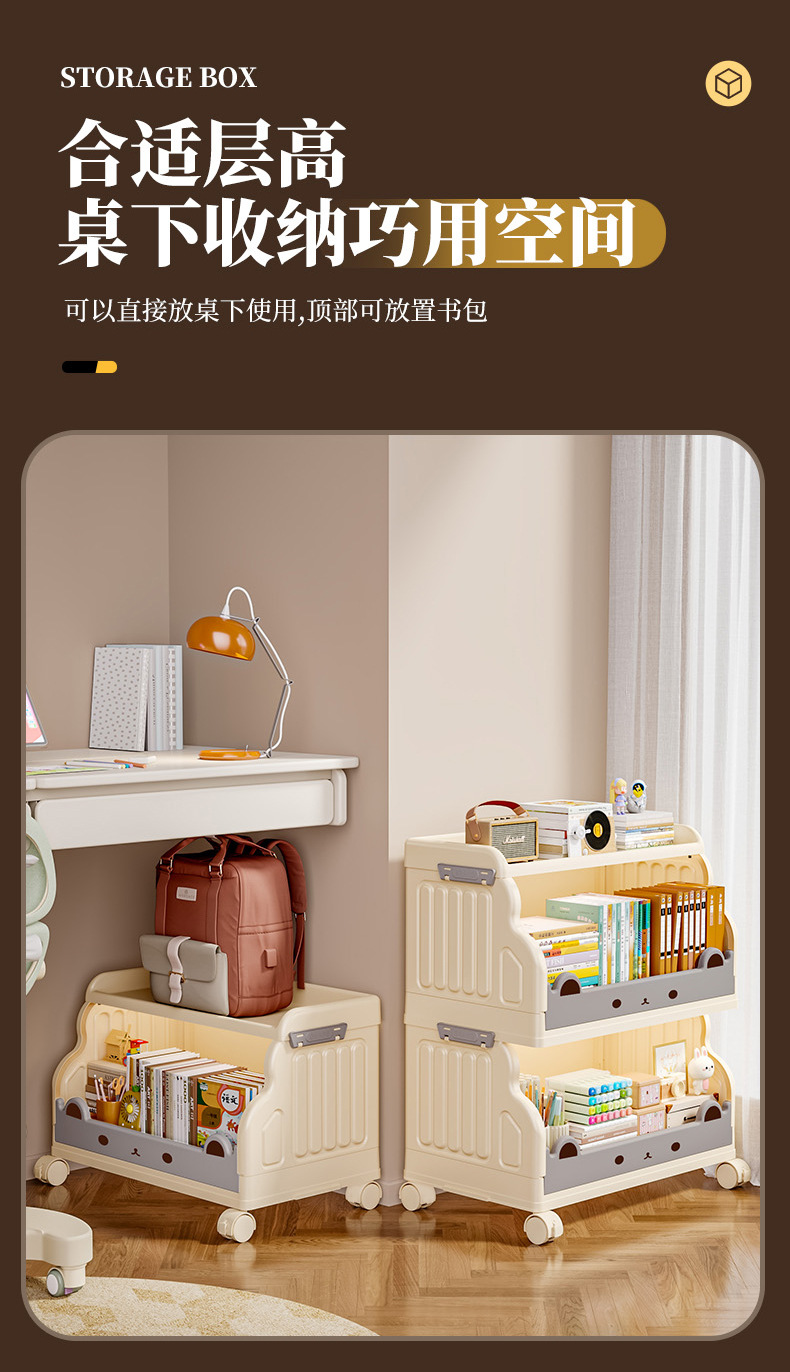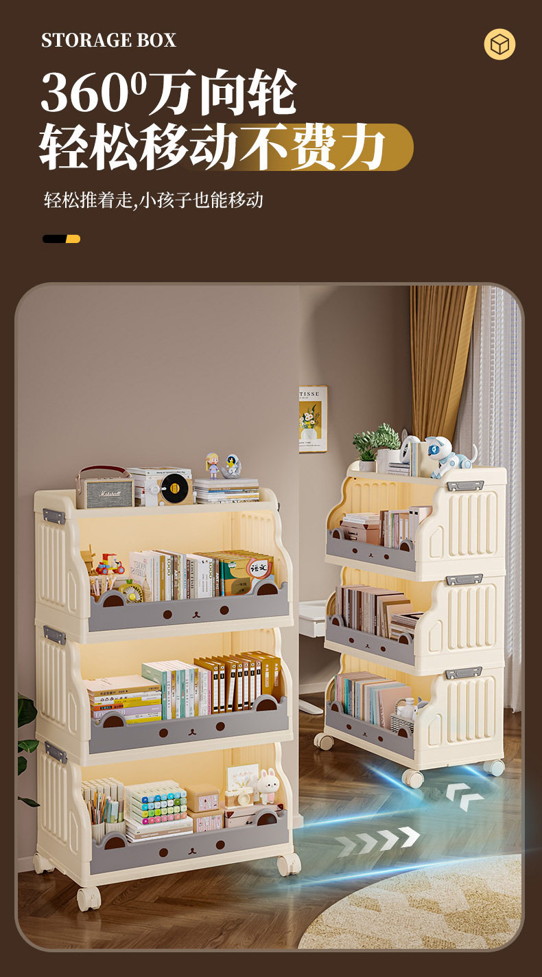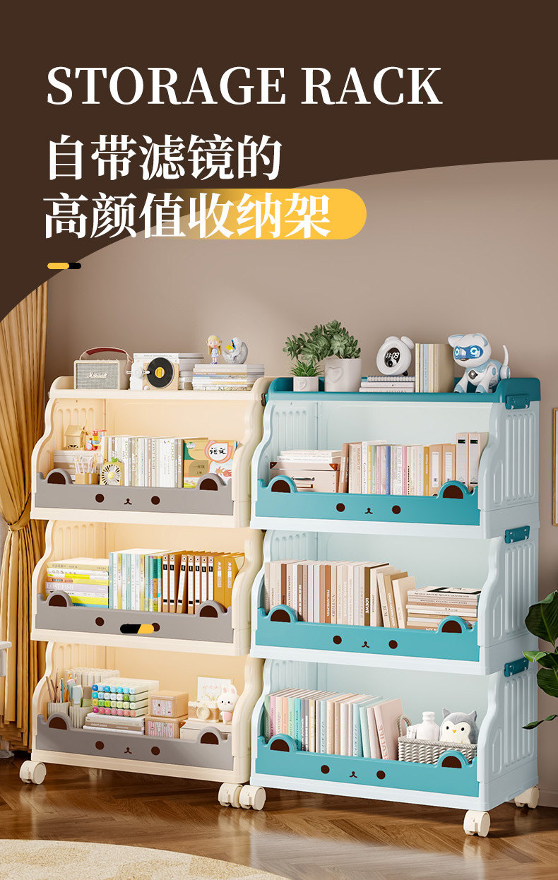 大容量书架家用客厅书房厨房卡通可爱儿童落地小推车置物架收纳架 English | 投诉