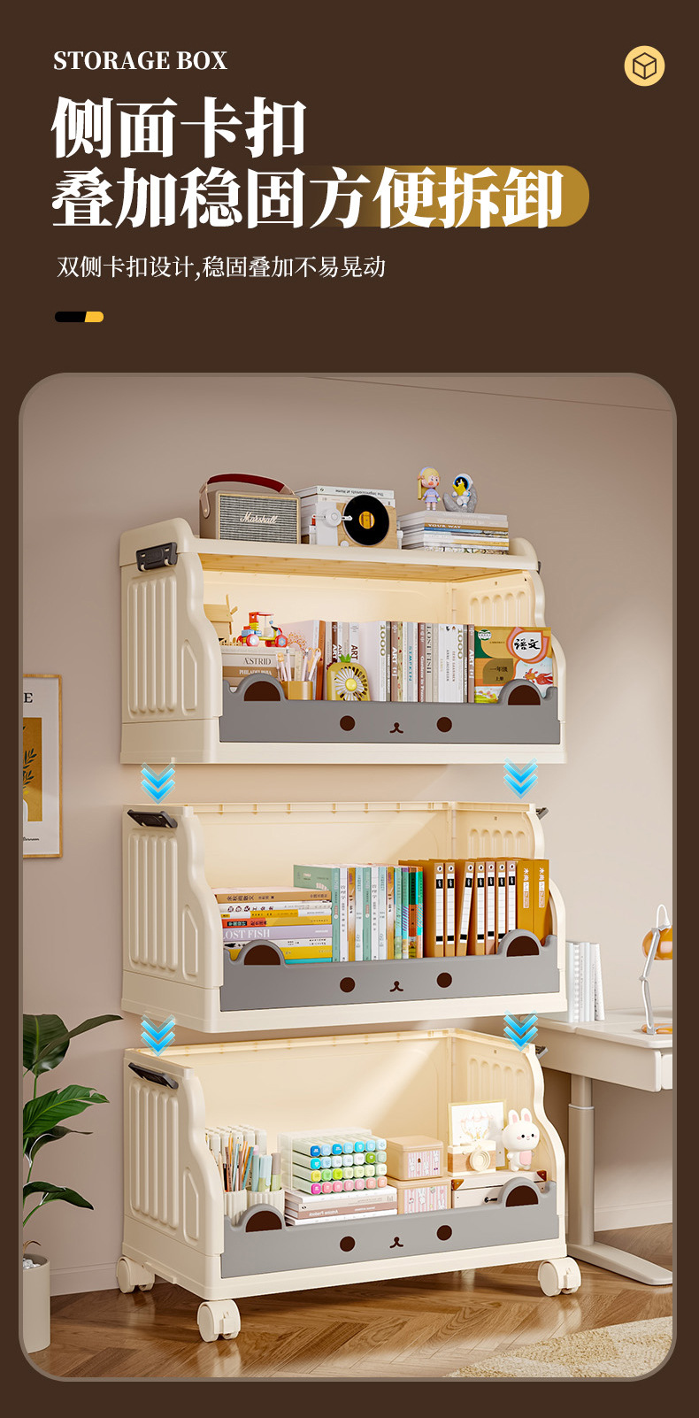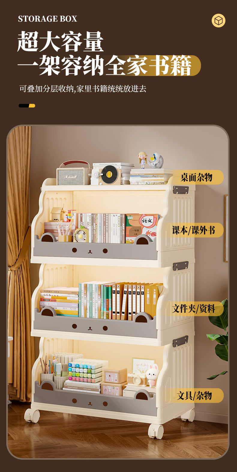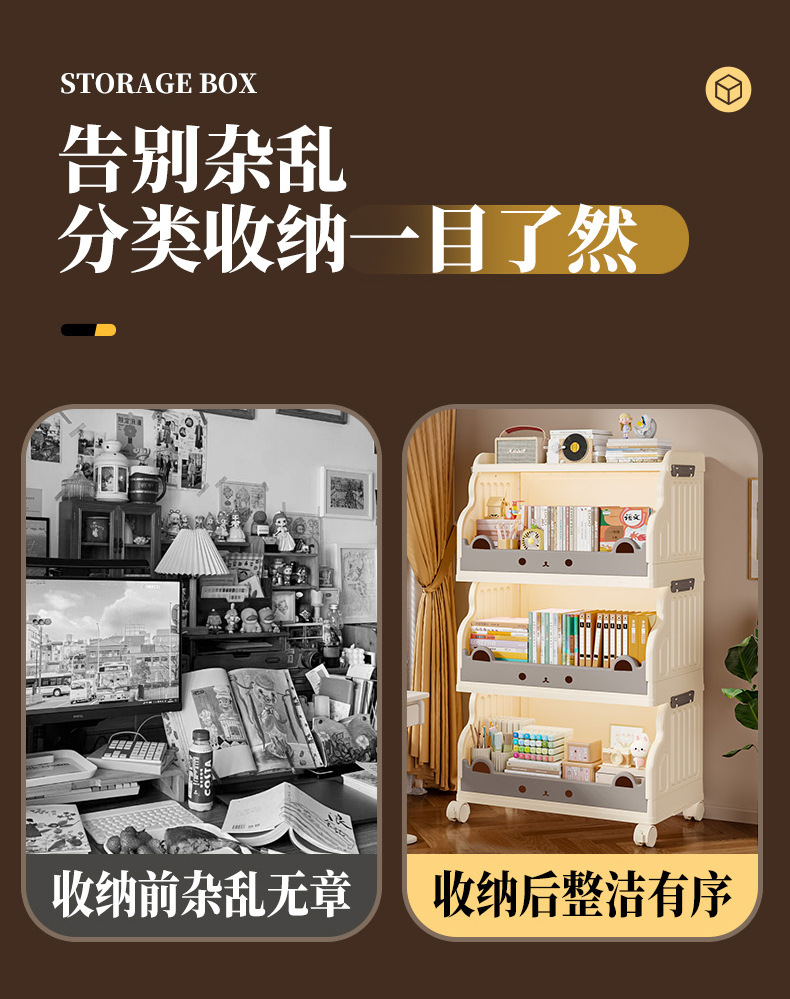 大容量书架家用客厅书房厨房卡通可爱儿童落地小推车置物架收纳架 English | 投诉