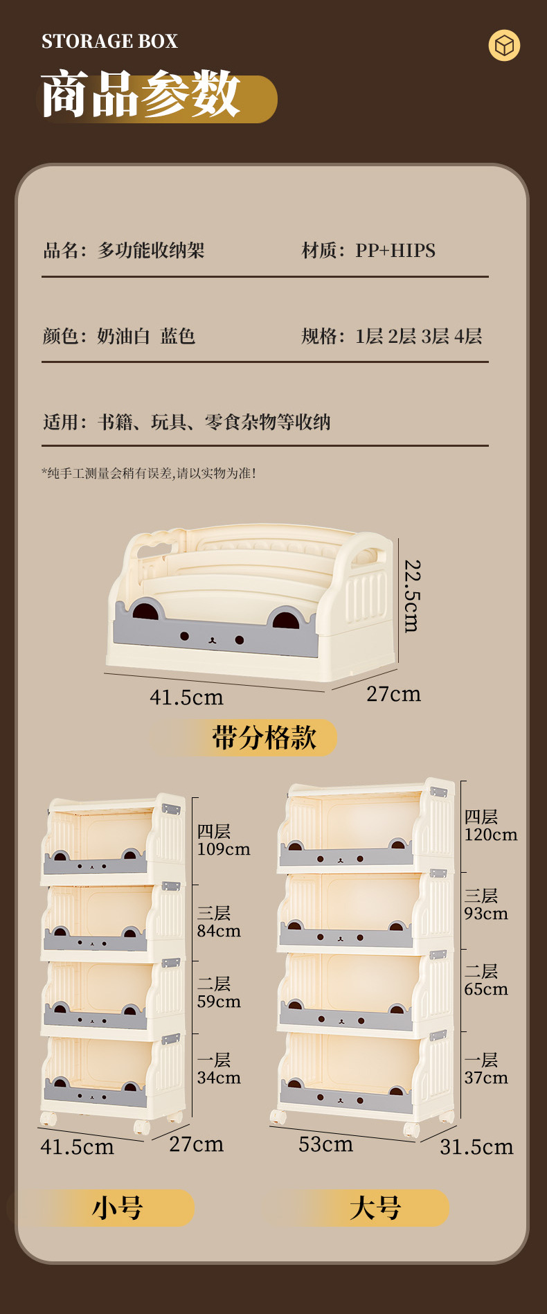 材质: PP+HIPS 功能: 可折叠,便携式,收纳,可移动,拆装,整理 层数: 4层 品牌: 亿乐 款式: 小推车置物架 收纳场景: 书房,化妆收纳,厨房收纳,桌面收纳,卧室 安装方式: 置地式 是否进口: 否 风格: 卡通 贸易属性: 内贸+外贸