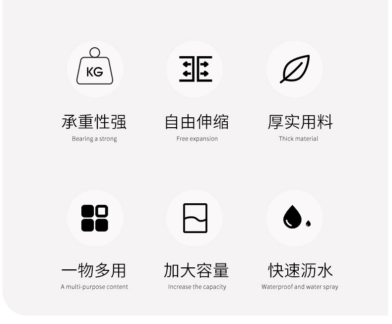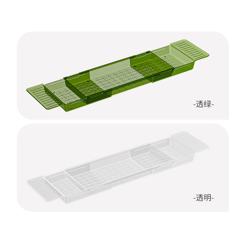 材质: PET 功能: 多用途,便携式,可伸缩,可移动,免安装 层数: 1层 品牌: 锐威 款式: 浴缸可伸缩置物架 收纳场景: 厨房收纳,卫浴收纳 安装方式: 悬挂式 是否进口: 否 风格: 轻奢 贸易属性: 内贸+外贸