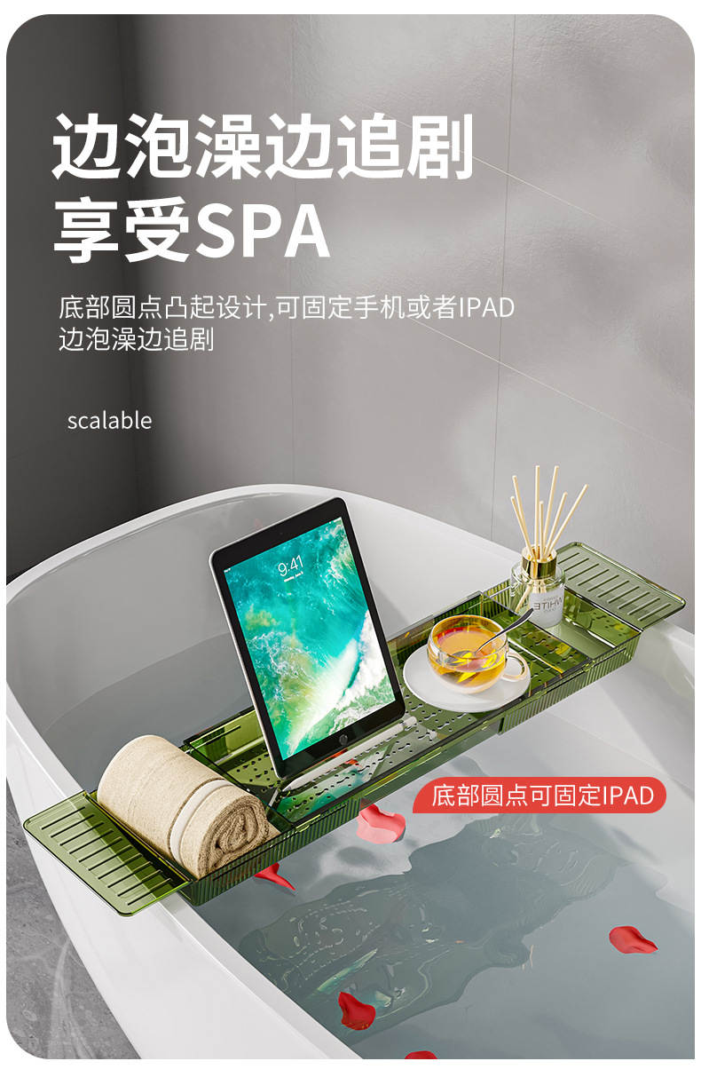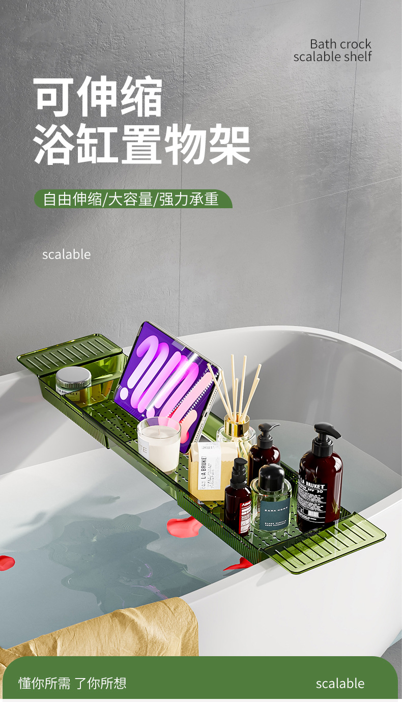 可伸缩沥水浴缸置物架泡澡神器置物板洗澡间毛巾浴室架子浴桶托盘 English | 投诉
