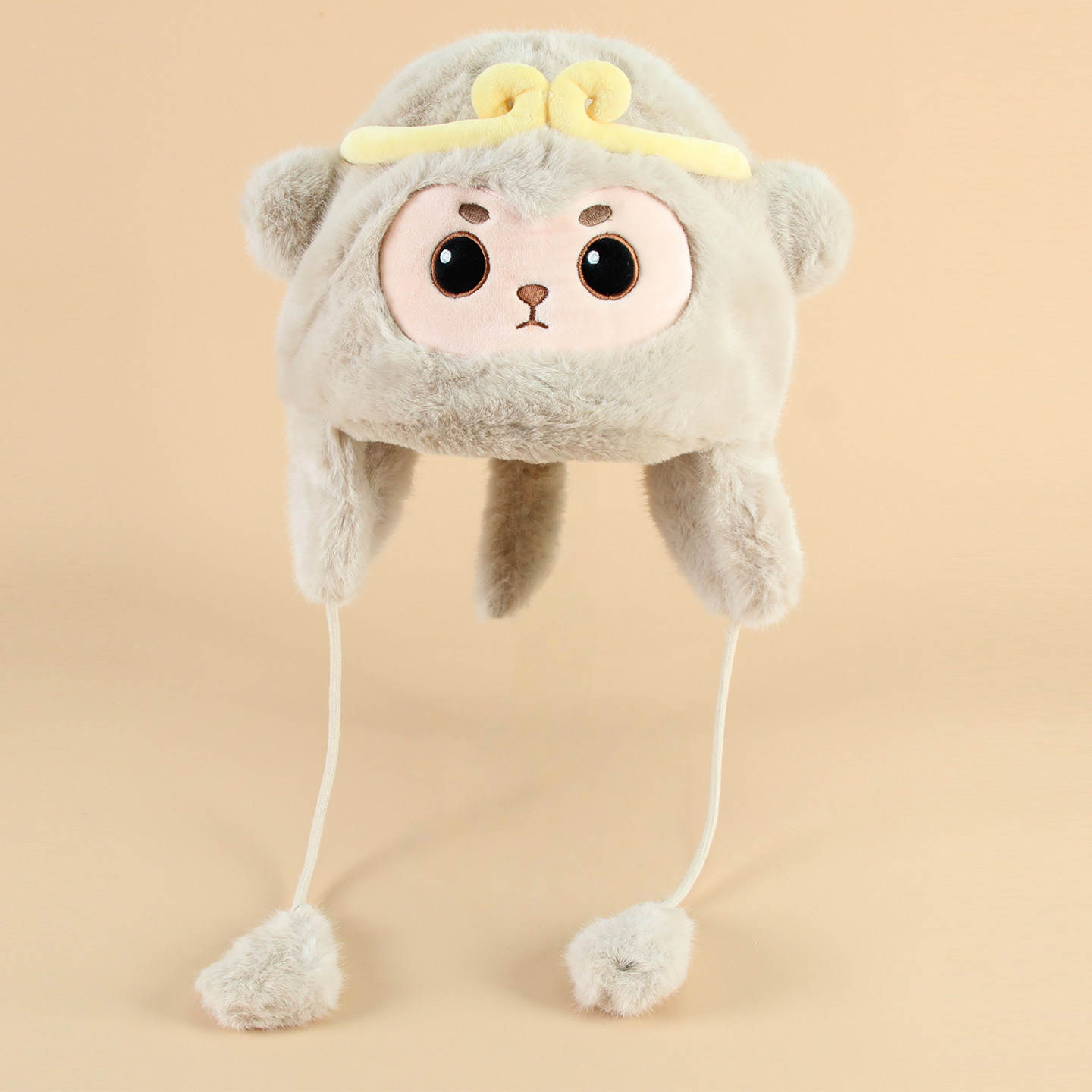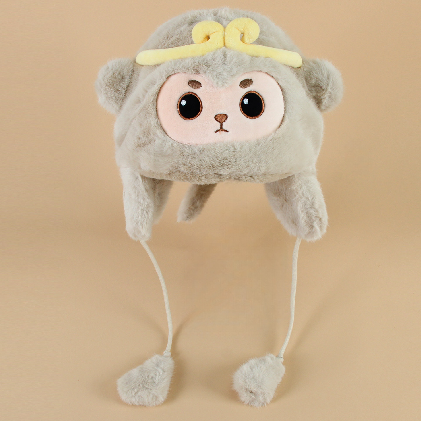 孙悟空猴子保暖套头帽子护耳朵防风毛绒女孩可爱儿童毛绒冬季加厚