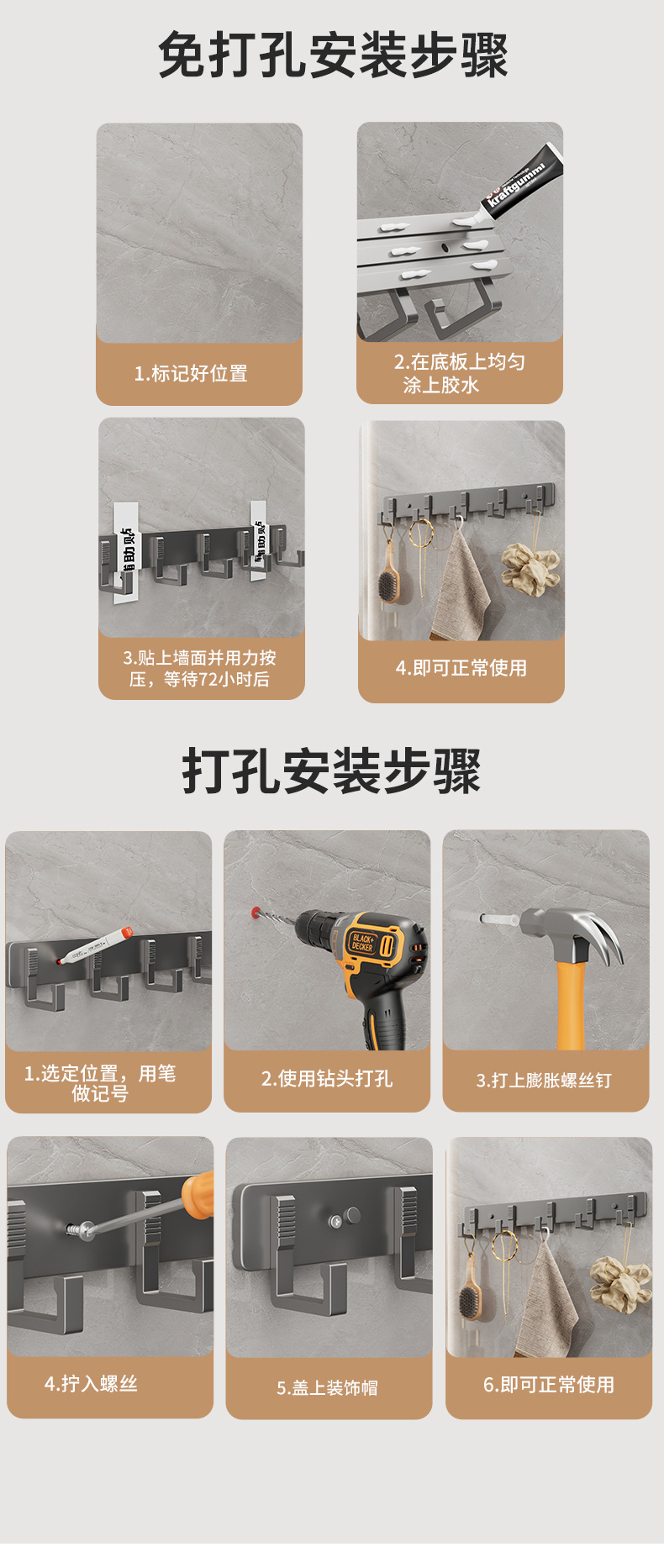 门后衣架挂钩挂衣架家用免打孔入户门玄关挂包衣服收纳排钩架 English | 投诉