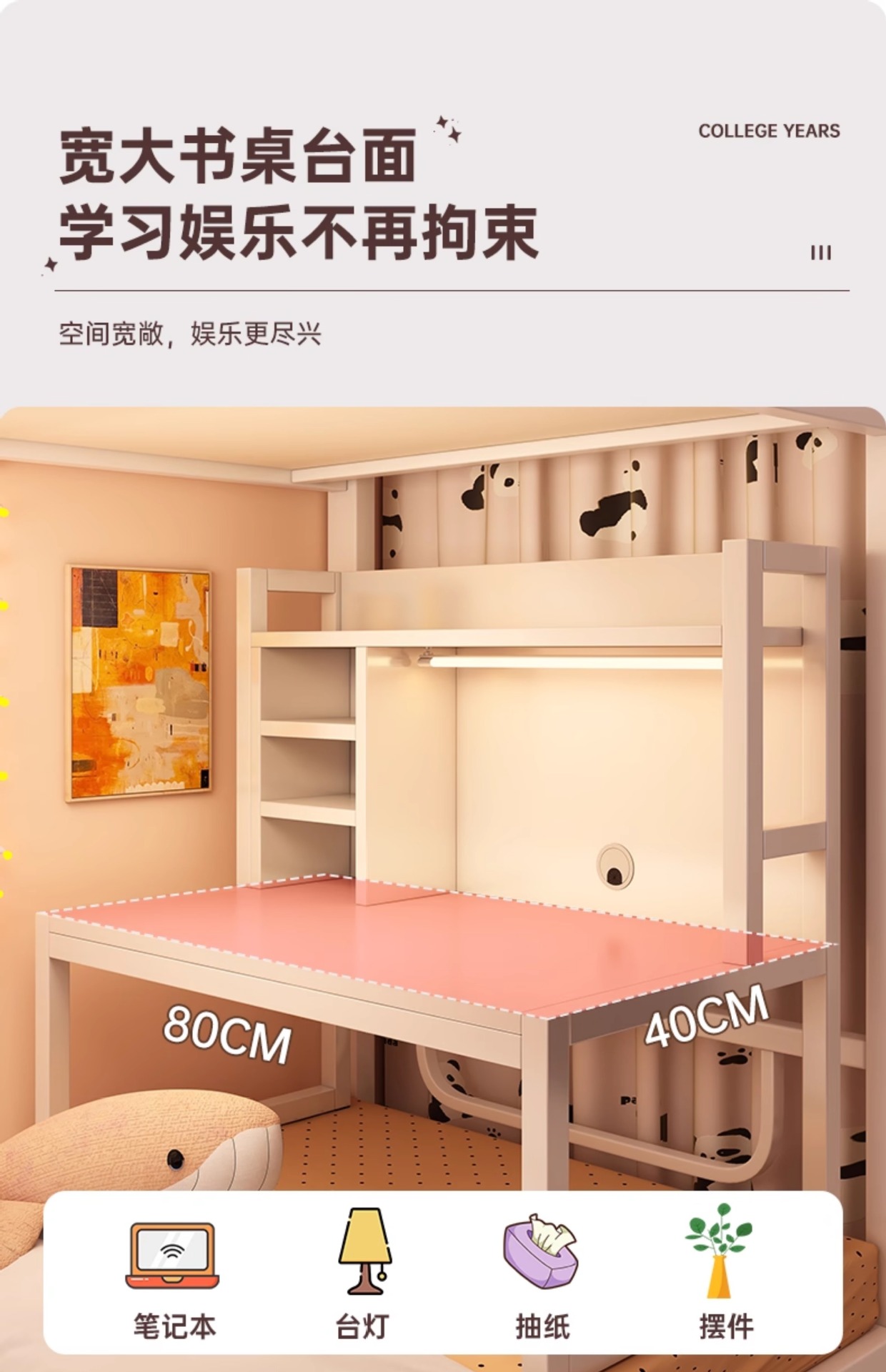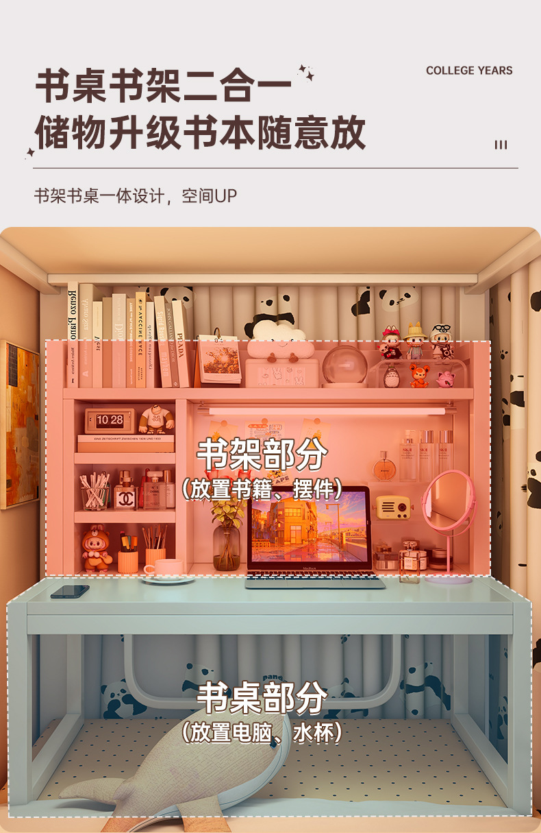 宿舍床上桌电脑桌大学生上下铺神器懒人书桌学习桌铁艺置物小桌子