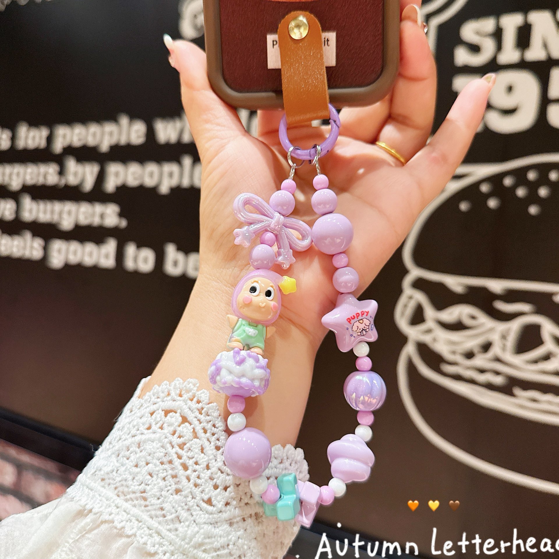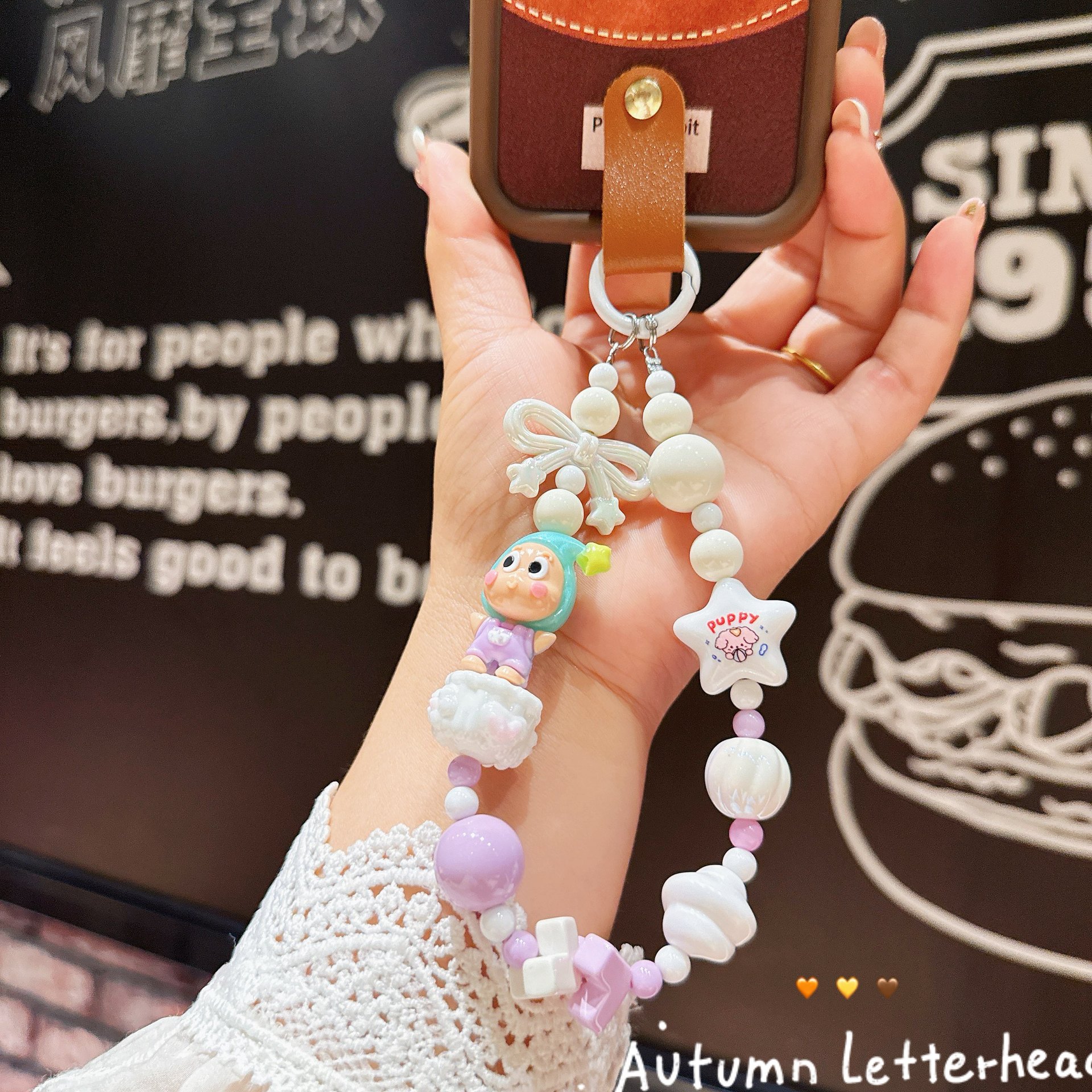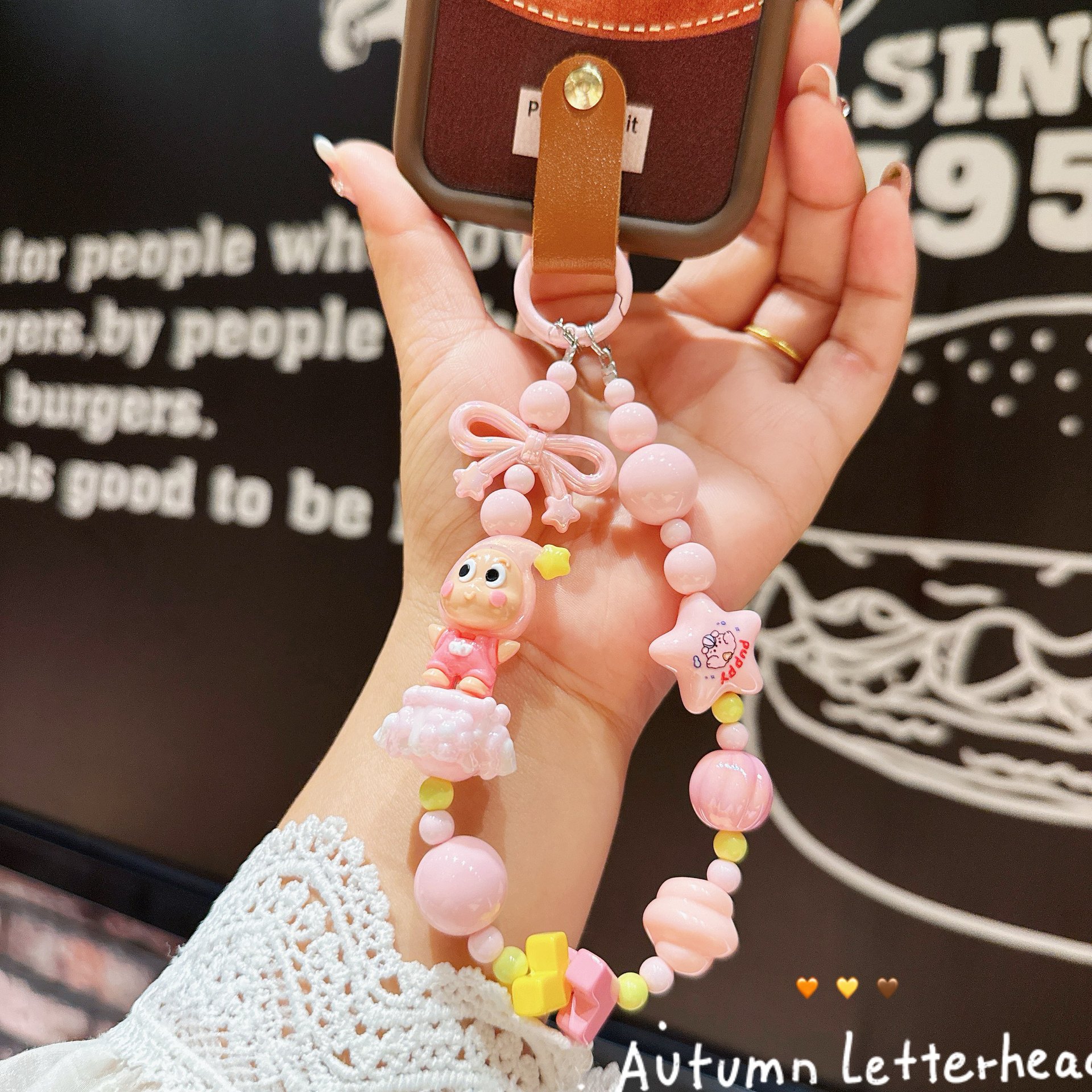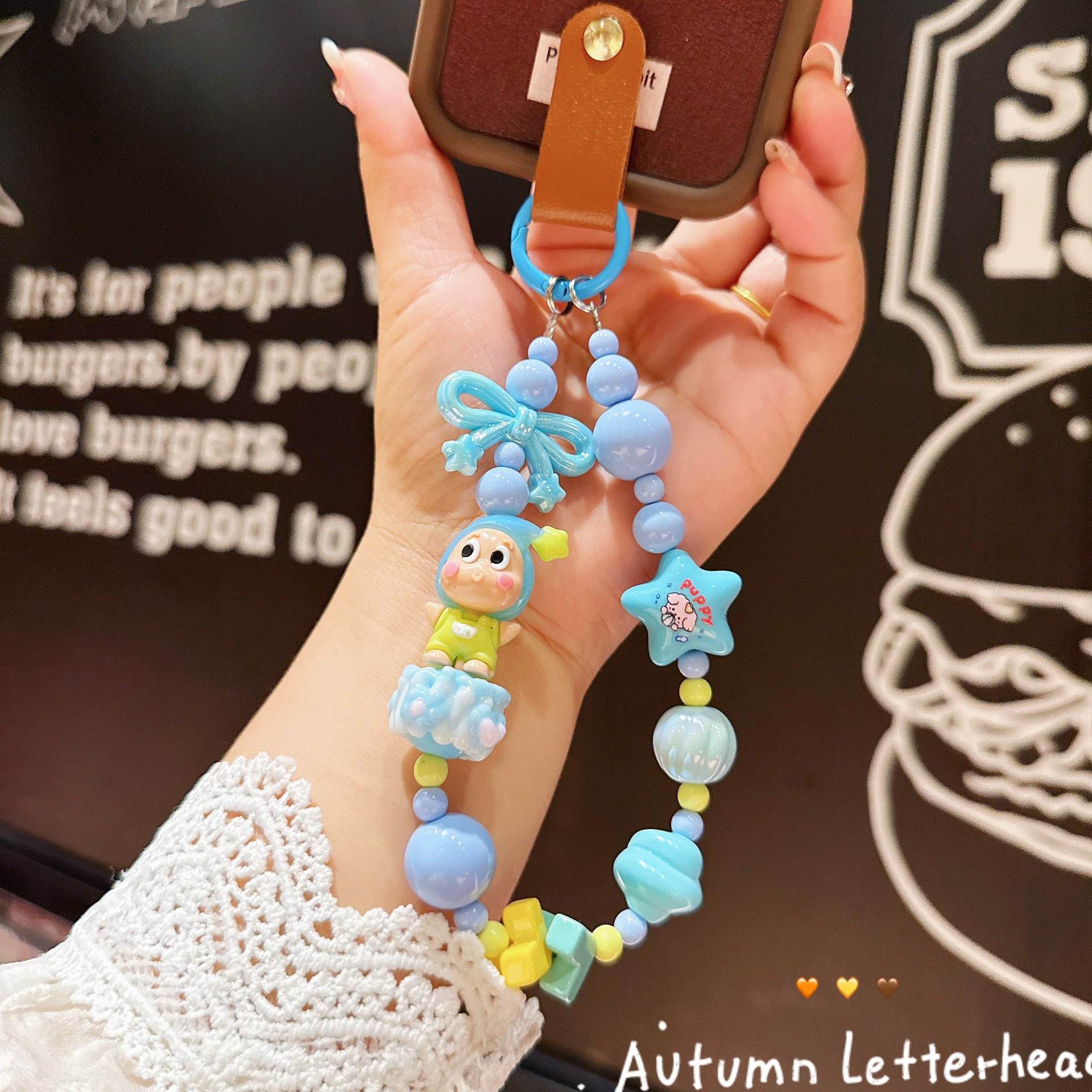 新款卡通公仔星星人串珠手机链手绘珠珠串手机壳挂件包包配饰批发
