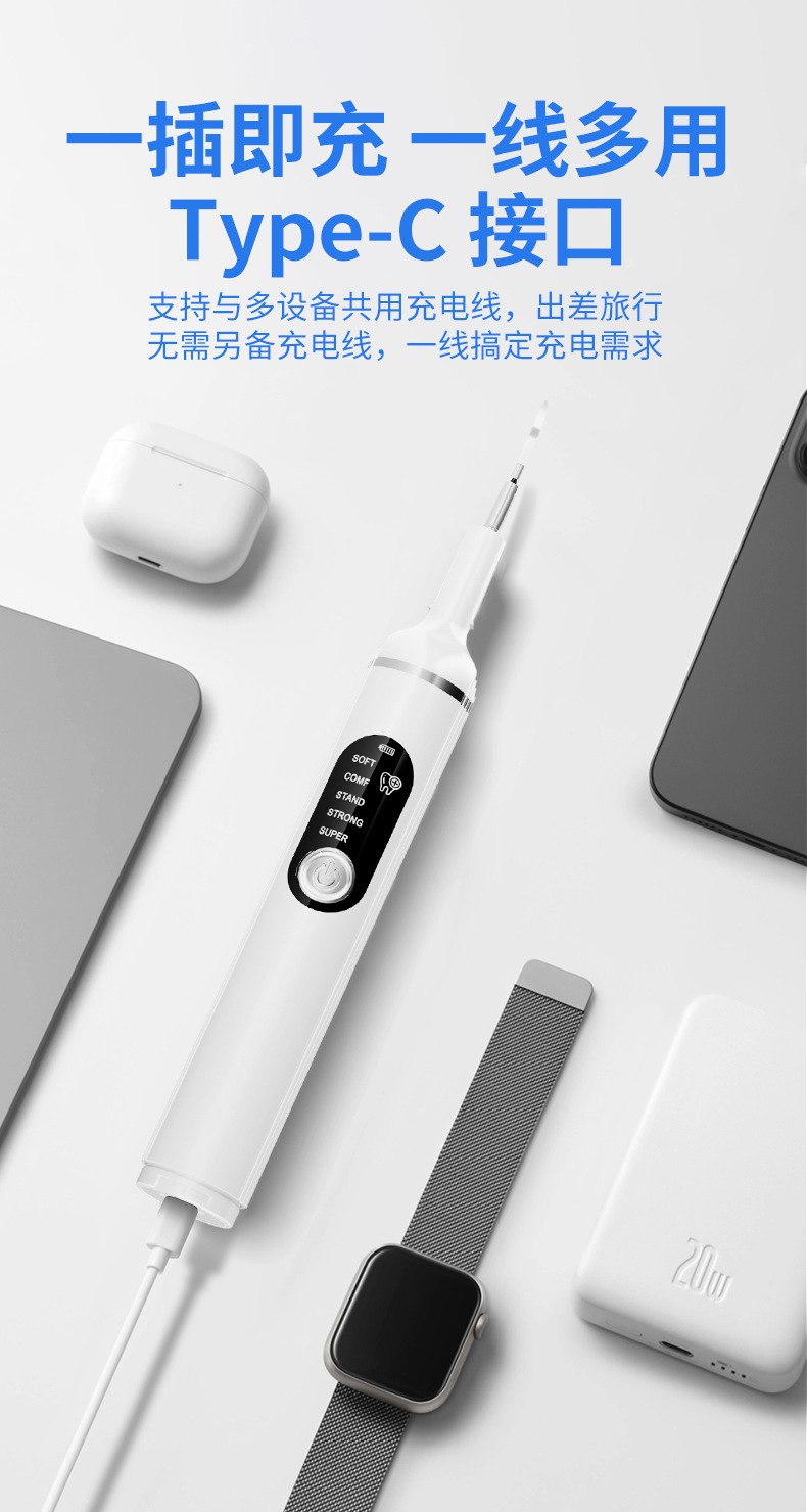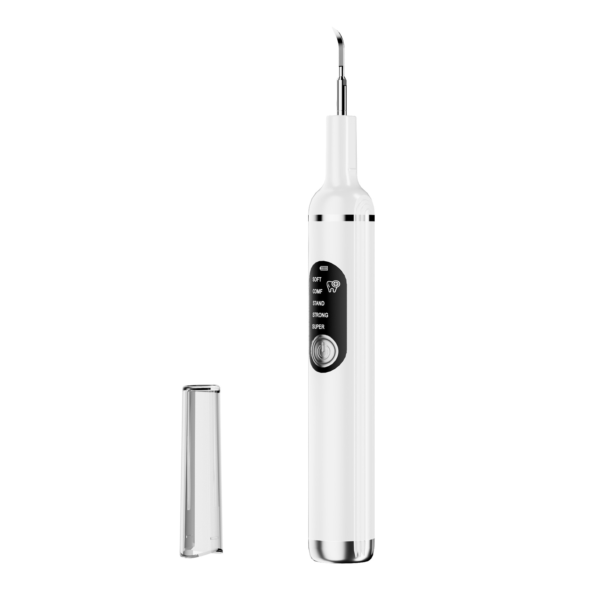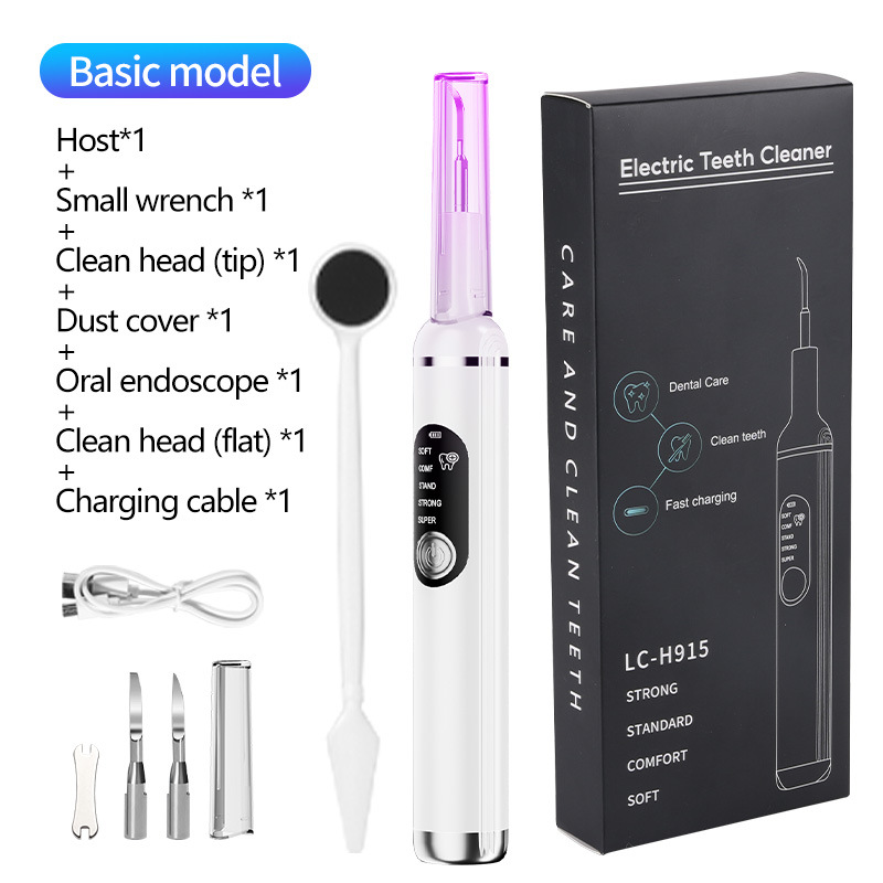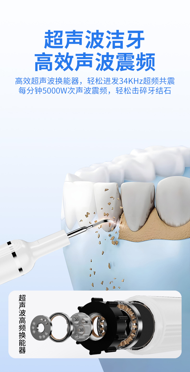 包装清单:洁牙器主机*1,不锈钢尖头*1,不锈钢平头*1,口腔镜*1