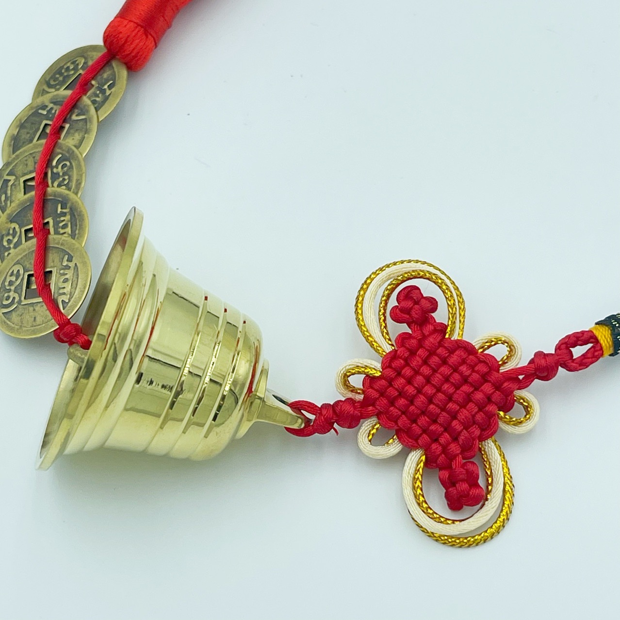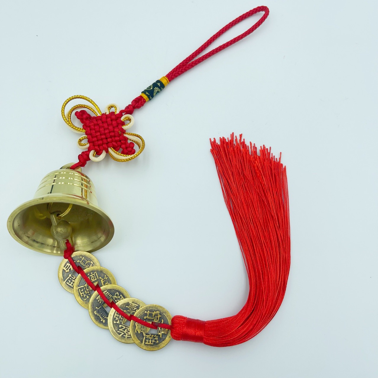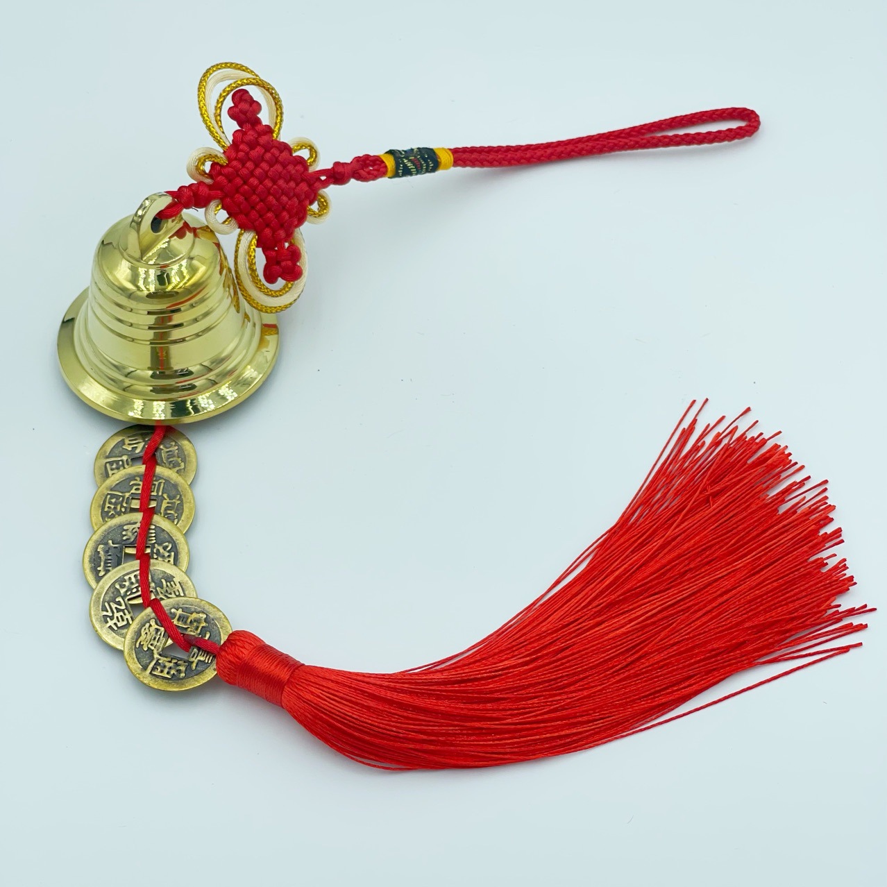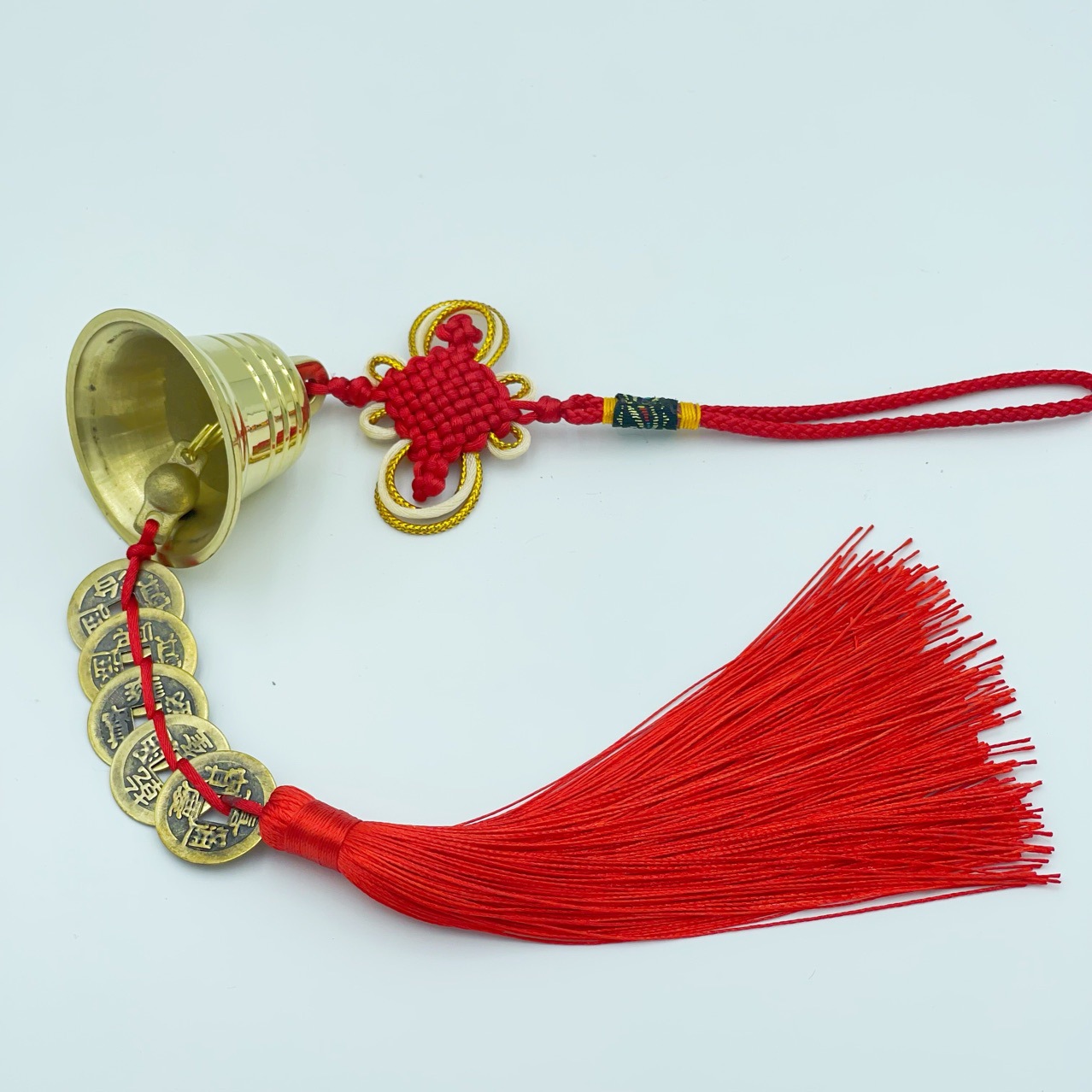 义乌市琳烺工艺品 厂家批发锦纶线富贵结黄铜材质铜铃五帝串挂件