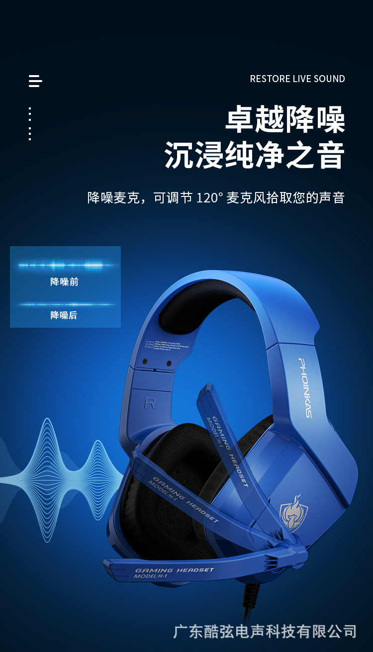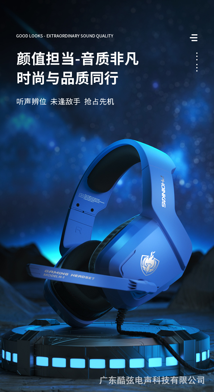 菲尼卡西H1头戴式耳机 USB有线带麦台式电脑电竞游戏耳机听声辨位 English | 投诉