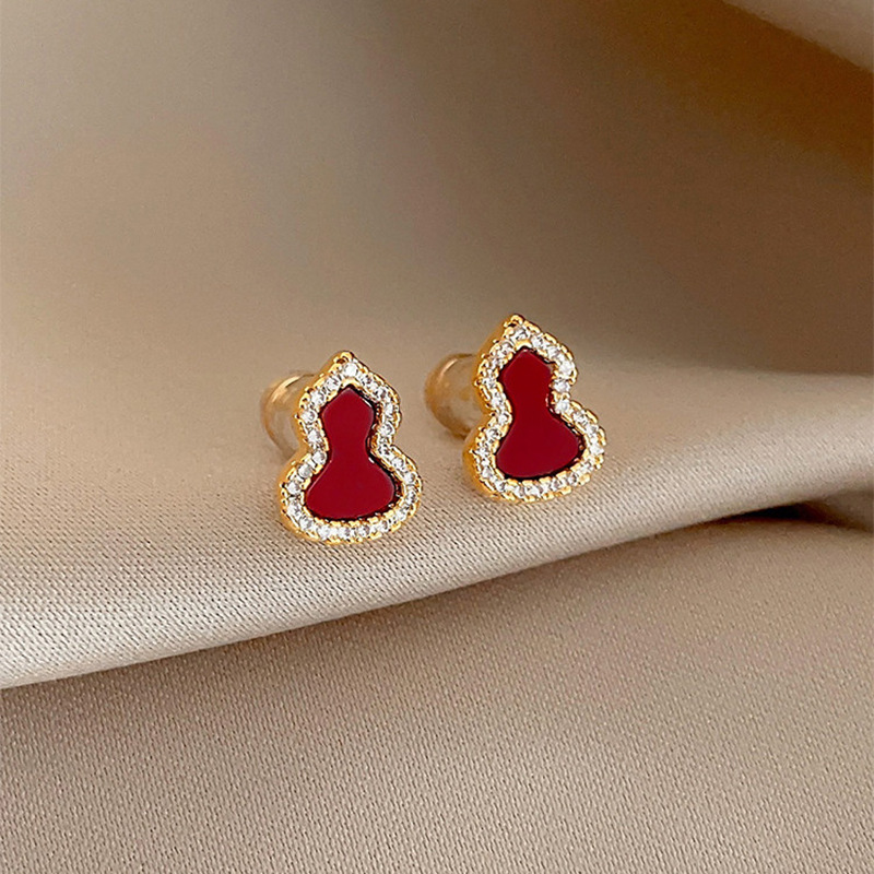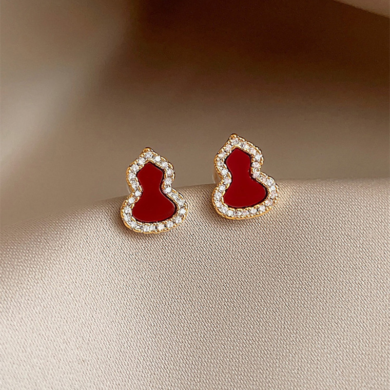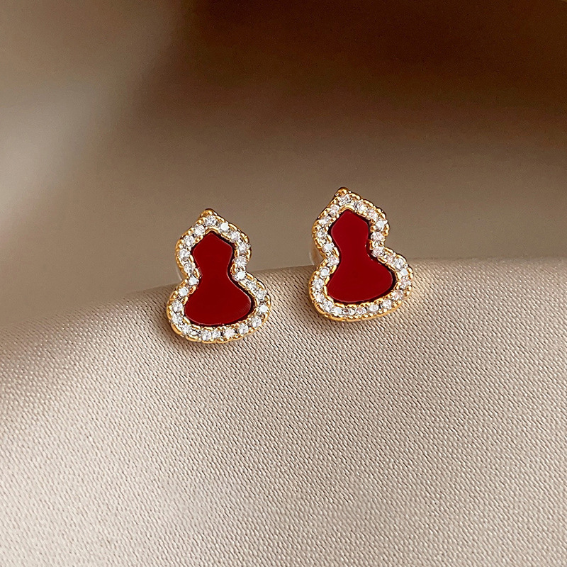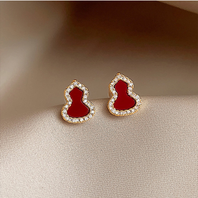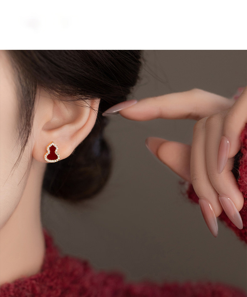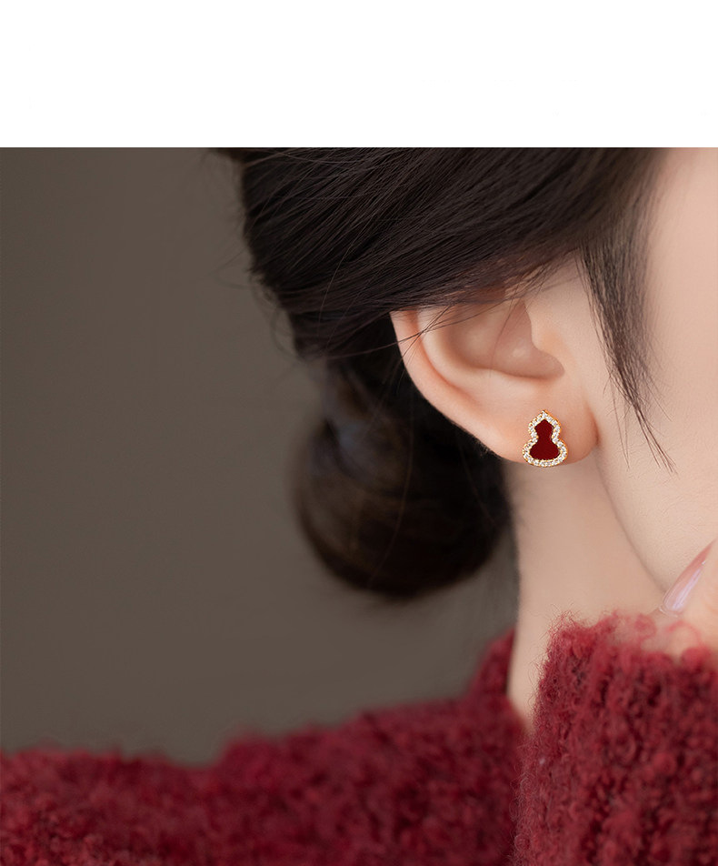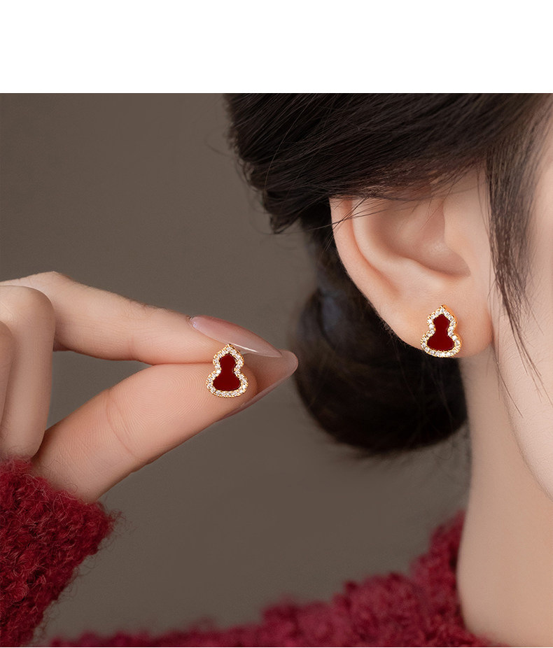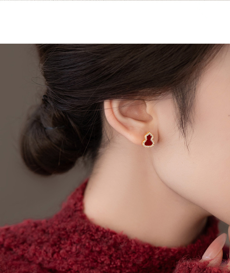 18k真金电镀新中式简约锆石葫芦耳钉小众高级感耳环时尚百搭耳饰 English | 投诉
