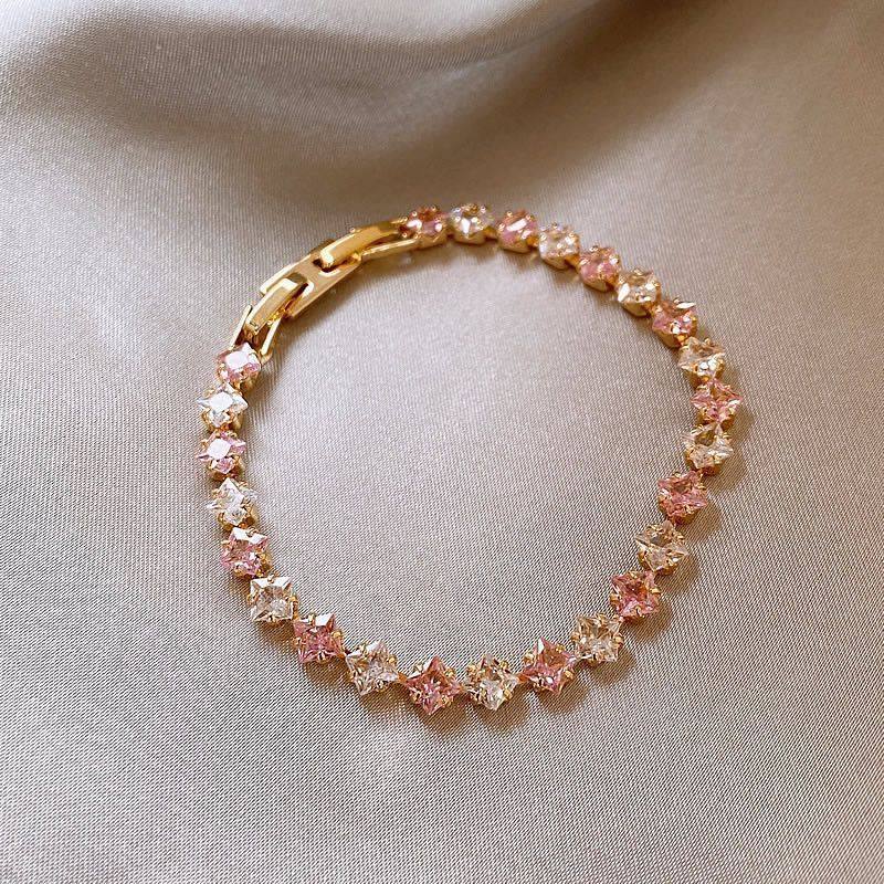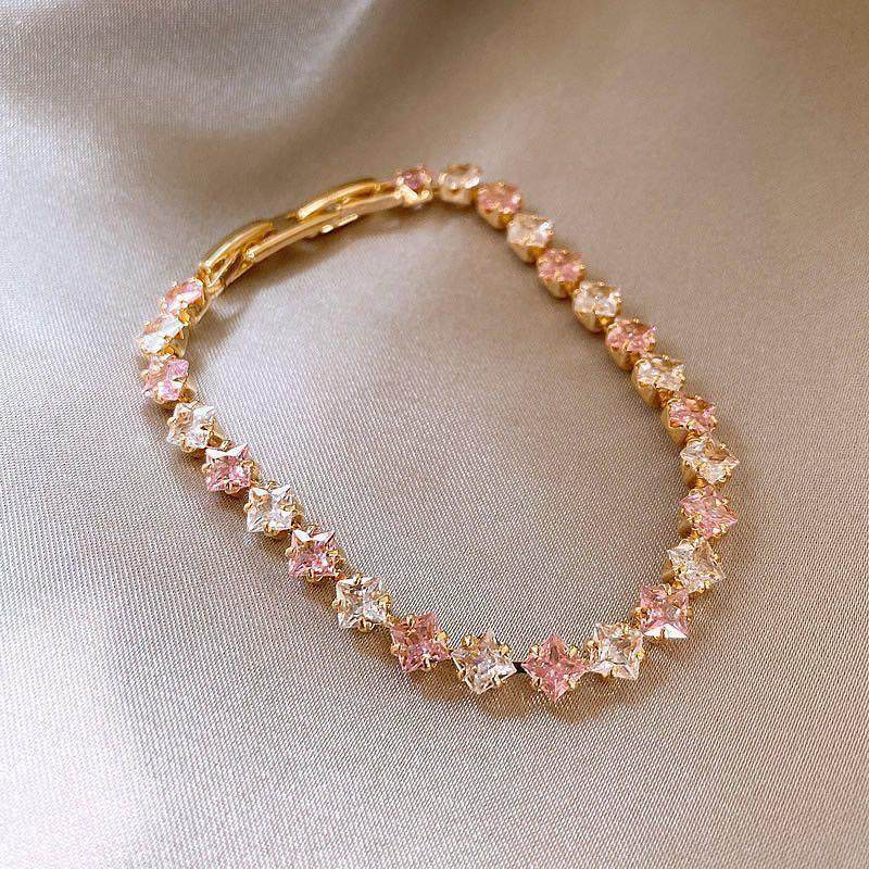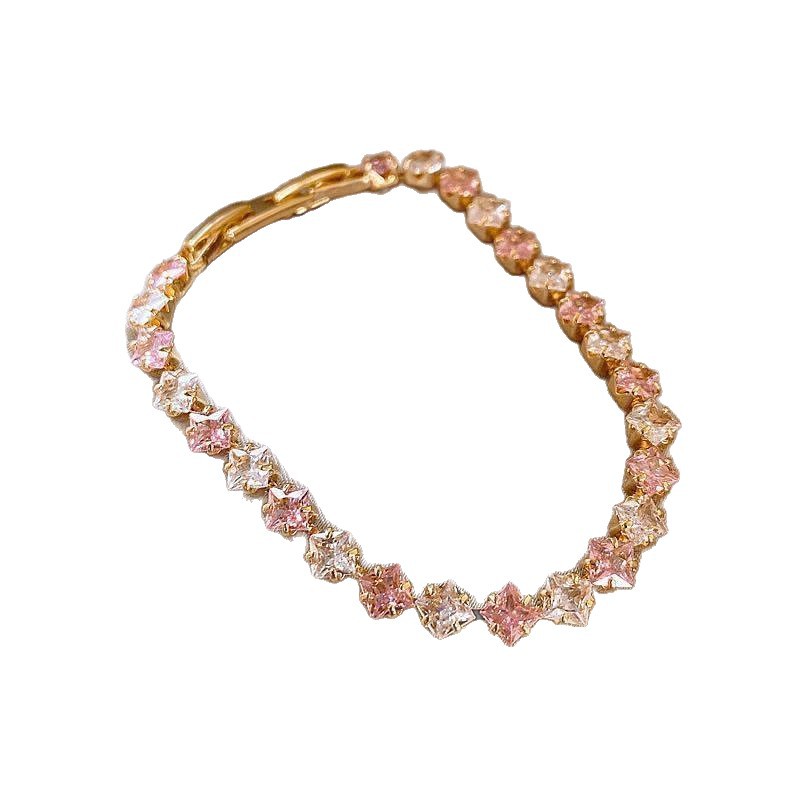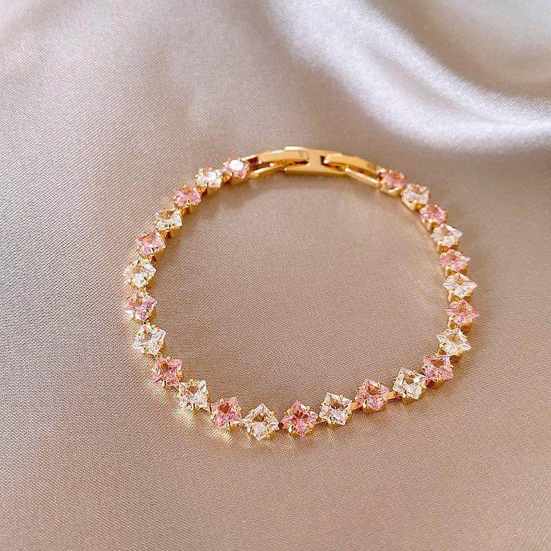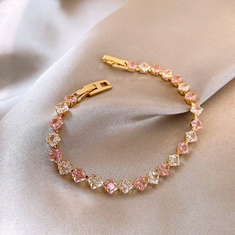 韩系甜美简约锆石方形撞色手链轻奢高级感手环时尚精致百搭手饰女 English | 投诉