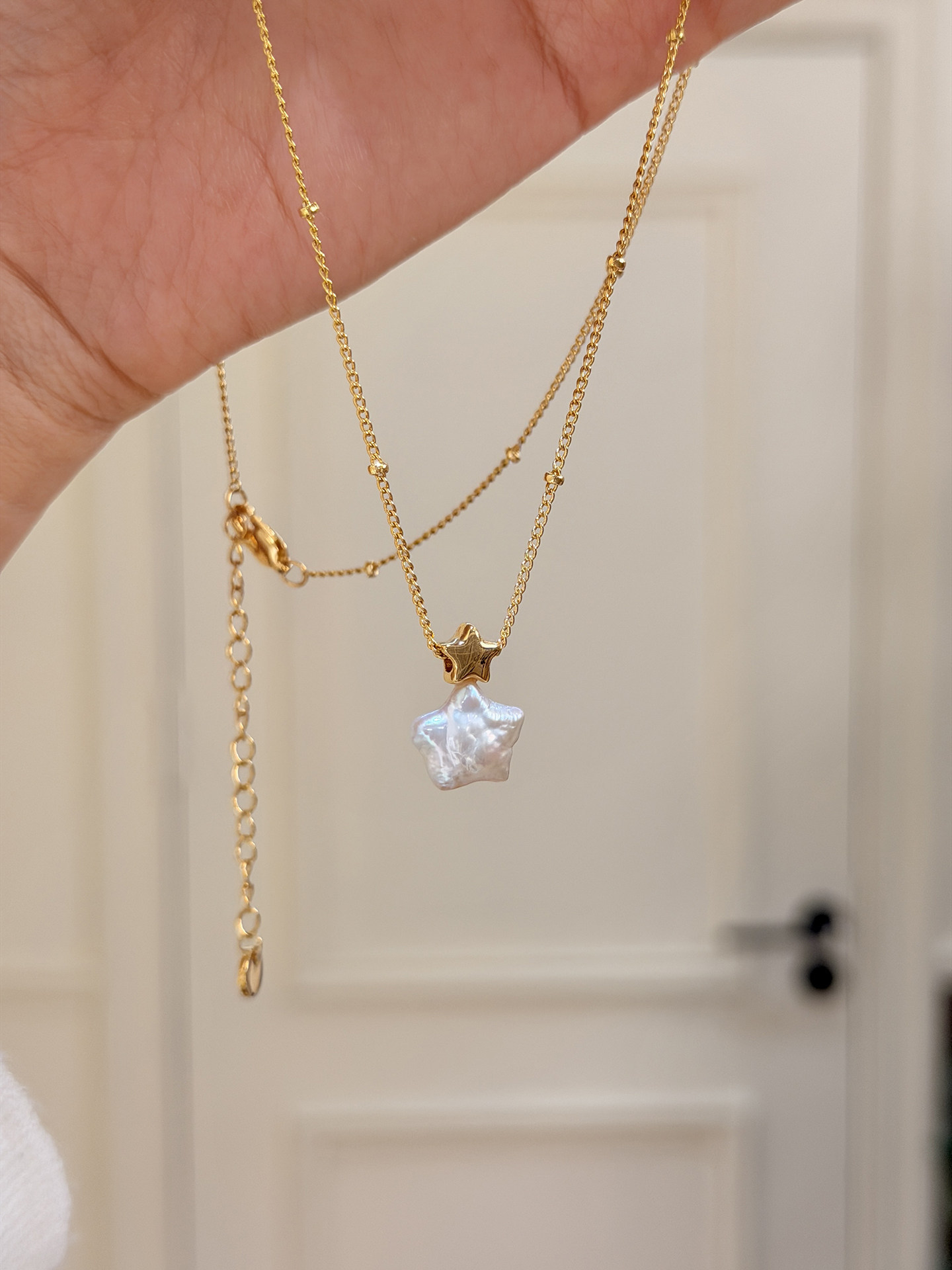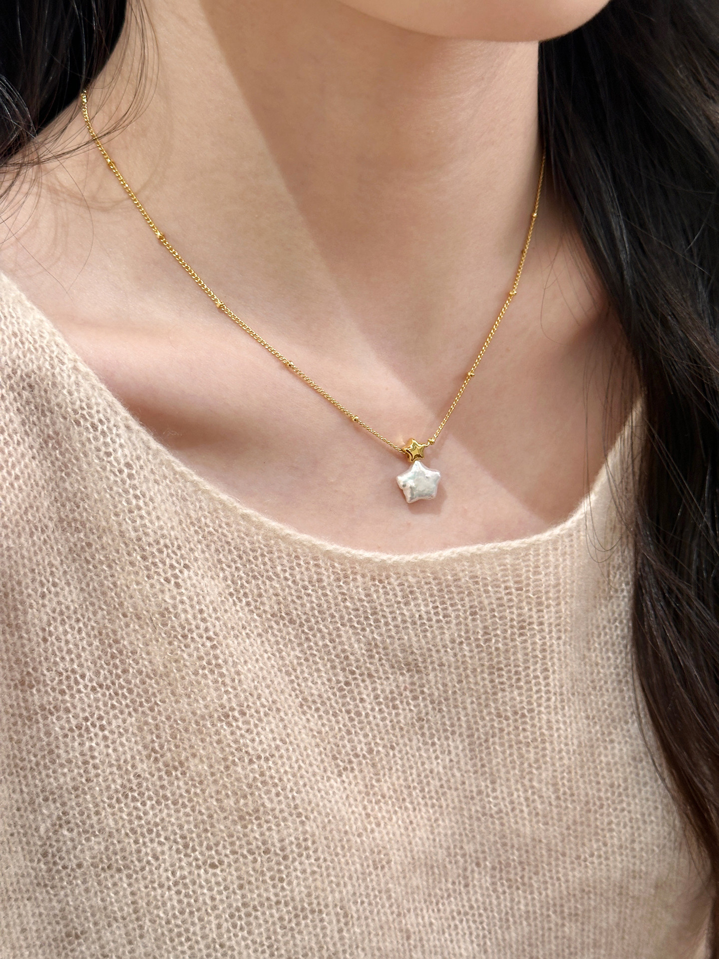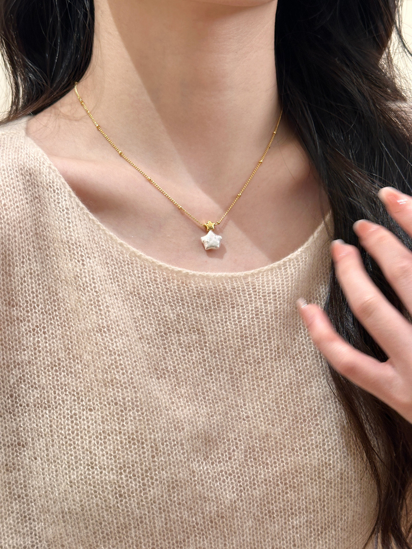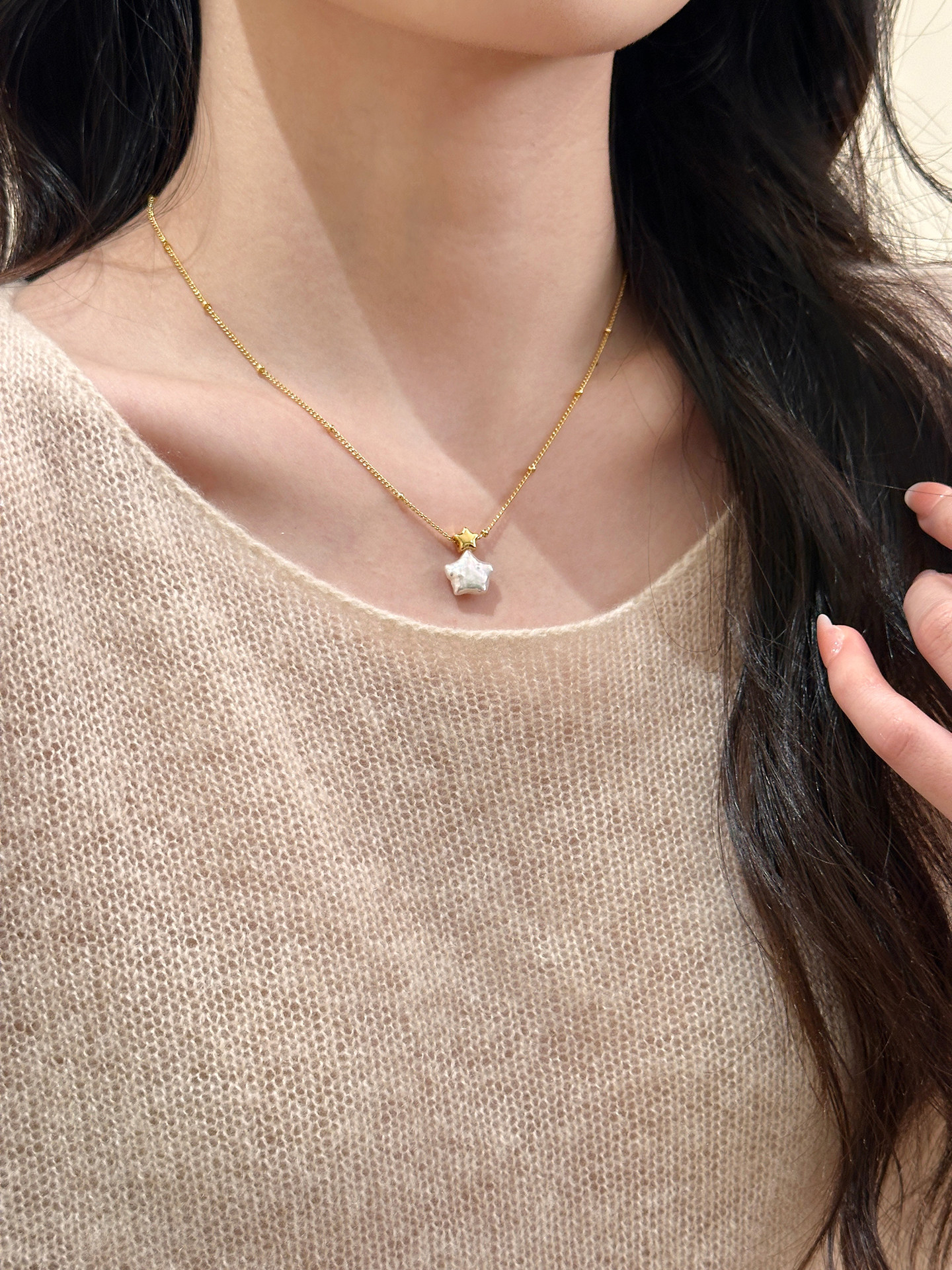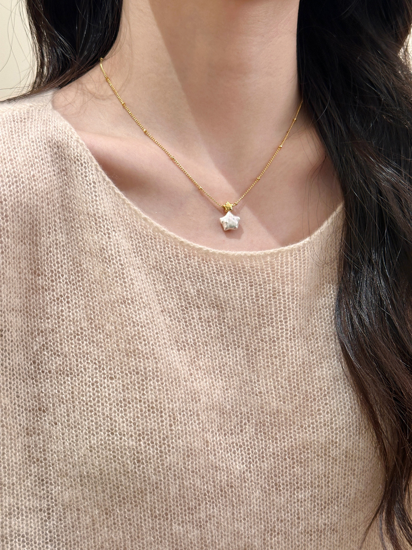 18k真金电镀韩系简约风星星珍珠项链配饰女毛衣链轻奢高级感项饰