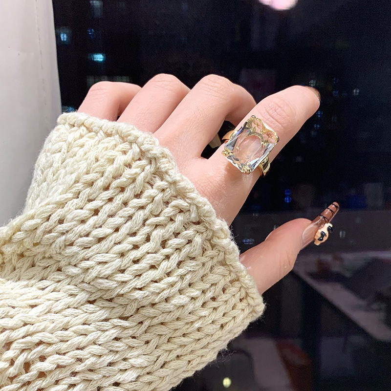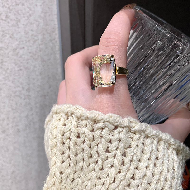 14k真金电镀欧美跨境方形锆石戒指小众高级感指环时尚个性手饰女 English | 投诉