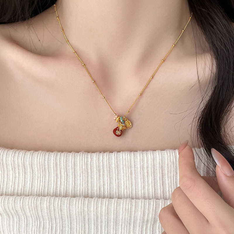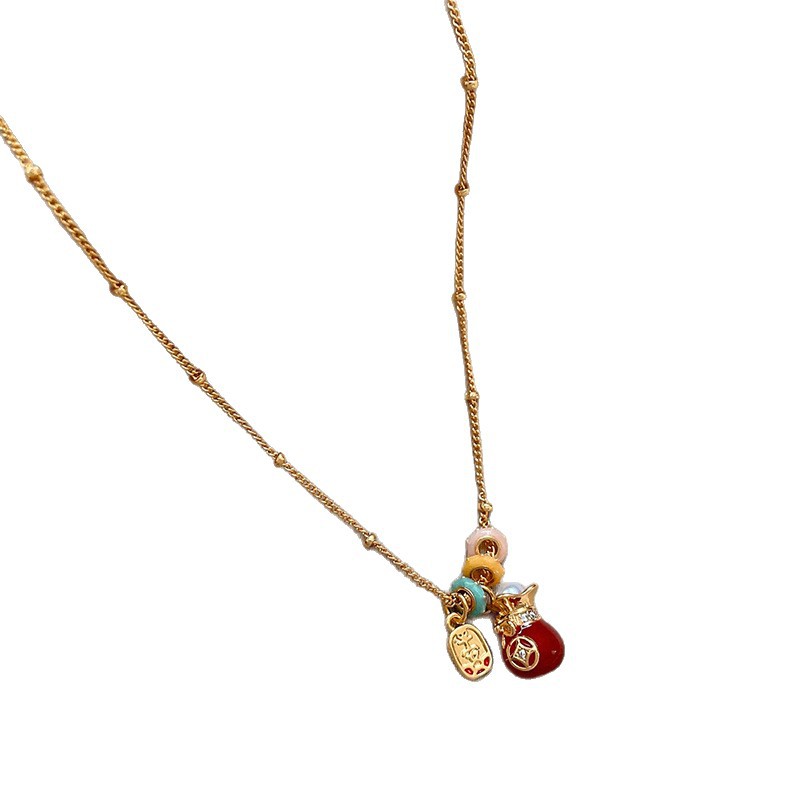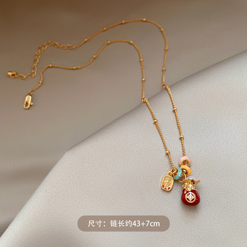 材质: 铜 处理工艺: 电镀 链子样式: 锁骨链 坠子材质: 铜 品牌: 丰美饰品厂 流行元素: 福袋 造型: 几何型 货号: HN11022-1- 产地: 义乌 是否多层: 否 周长: 41cm(含)-50cm(含) 颜色: 项链-金色-红色 有可授权的自有品牌: 否 是否跨境出口专供货源: 是 上市年份/季节: 2025年冬季 风格: 轻奢风 重量: 6.1g 风格分类: 时尚通勤 适用人群: 女式 流行元素分类: 民族/国风 重量: 0.5 kg/条