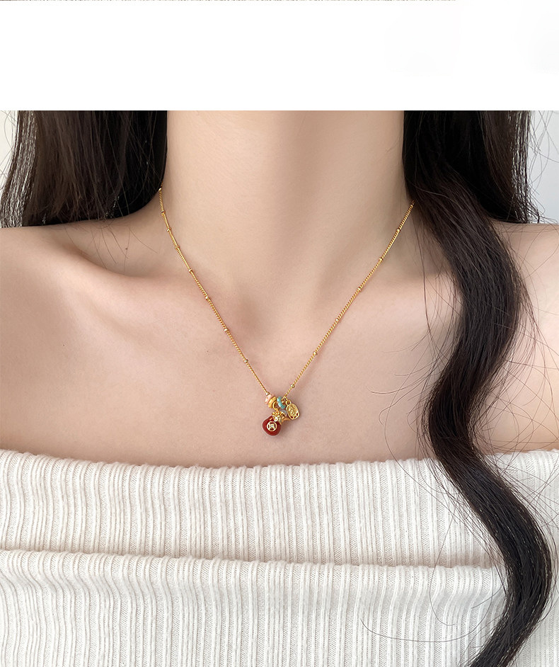 18k真金电镀锆石滴油福袋吊坠项链小众设计感锁骨链秋冬气质项饰 English | 投诉
