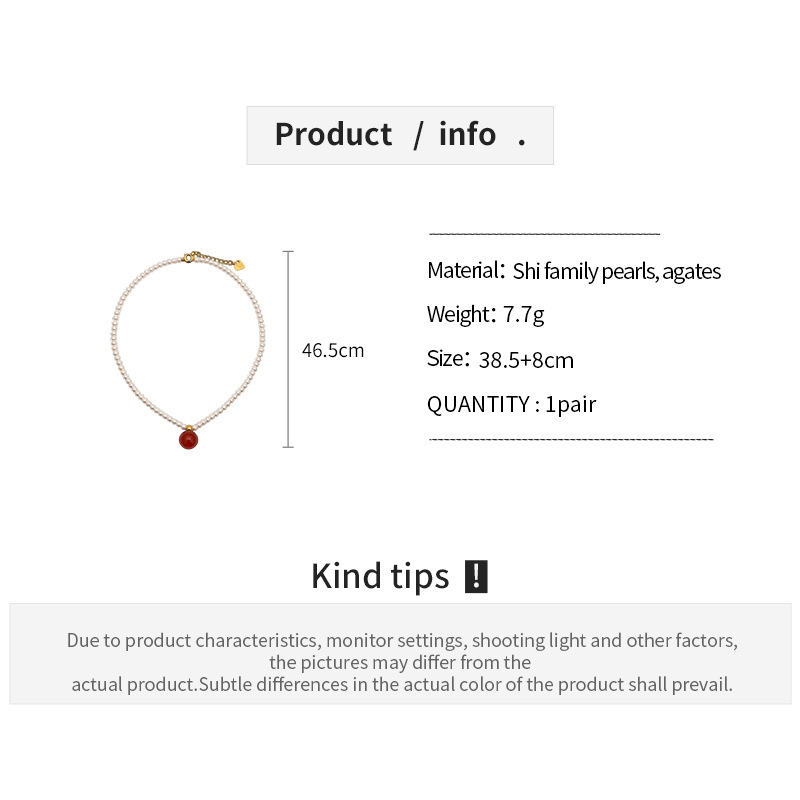 材质: 仿珍珠 处理工艺: 电镀 链子样式: 锁骨链 坠子材质: 玛瑙 品牌: 丰美饰品厂 流行元素: 圆形 造型: 几何型 货号: HN10968-1 产地: 义乌 是否多层: 否 周长: 41cm(含)-50cm(含) 颜色: 项链-白色-红色 有可授权的自有品牌: 是 是否跨境出口专供货源: 是 上市年份/季节: 2025年冬季 风格: 轻奢风 重量: 7.7g 风格分类: 时尚通勤 适用人群: 女式 流行元素分类: 几何 重量: 0.5 kg/条