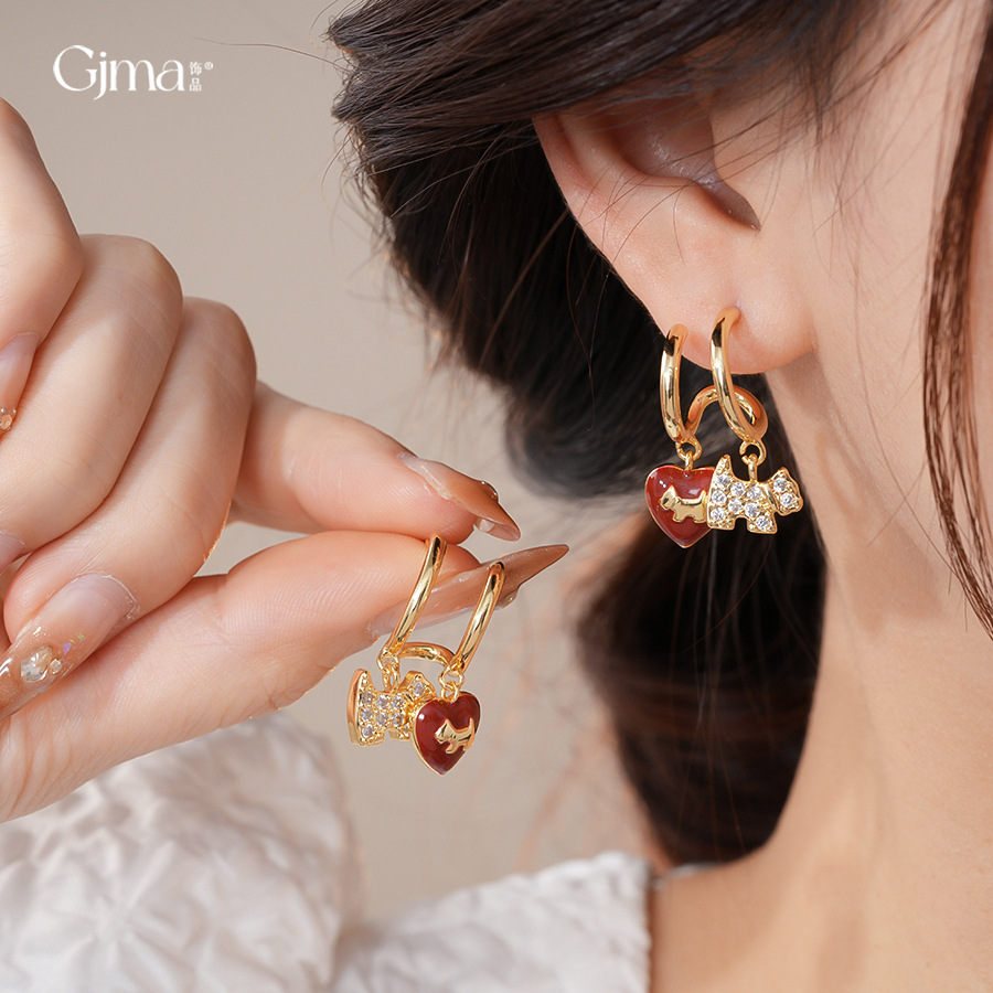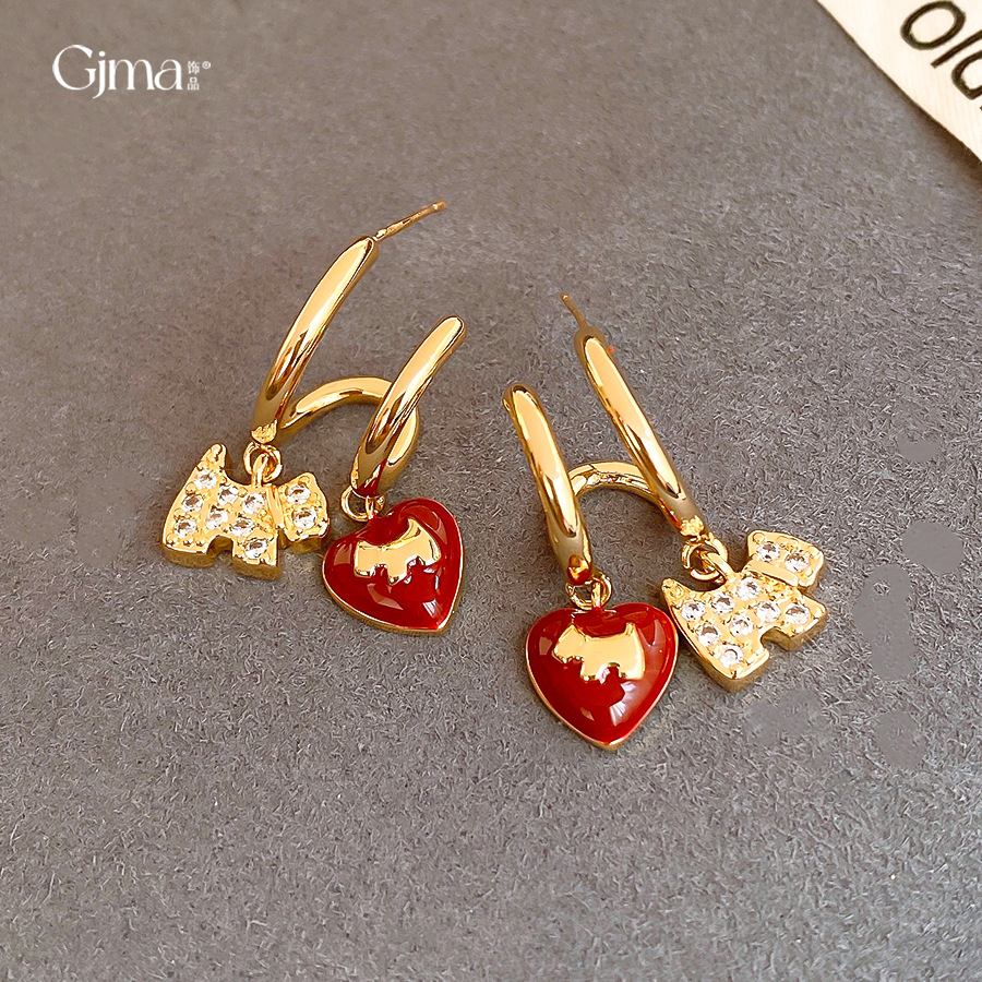 18k真金电镀复古滴油小狗爱心耳环轻奢高级感耳钉时尚精致耳饰女 English | 投诉