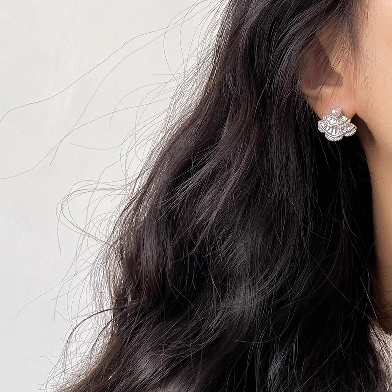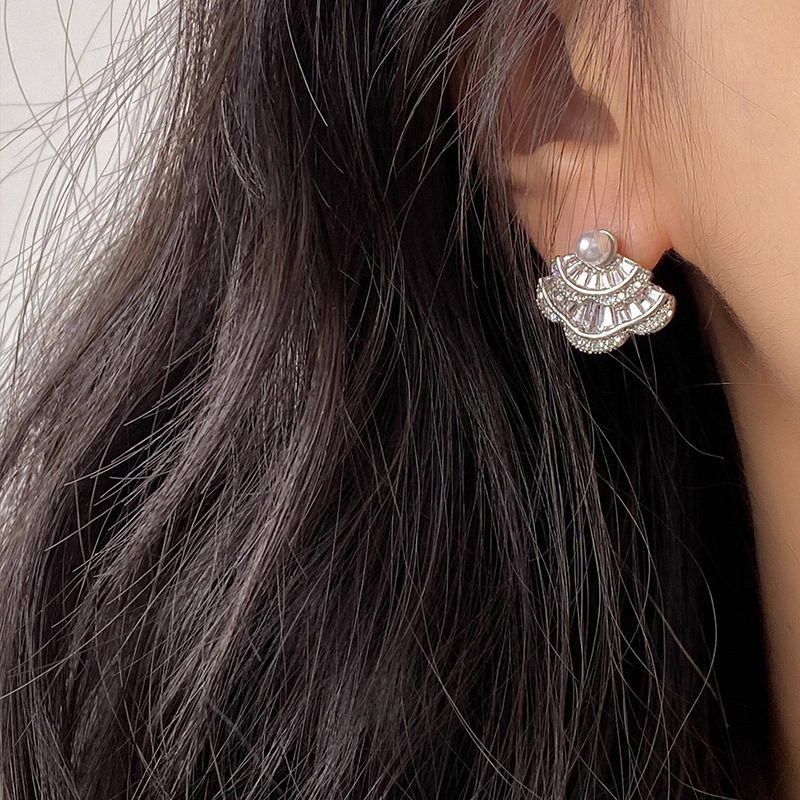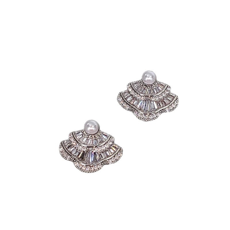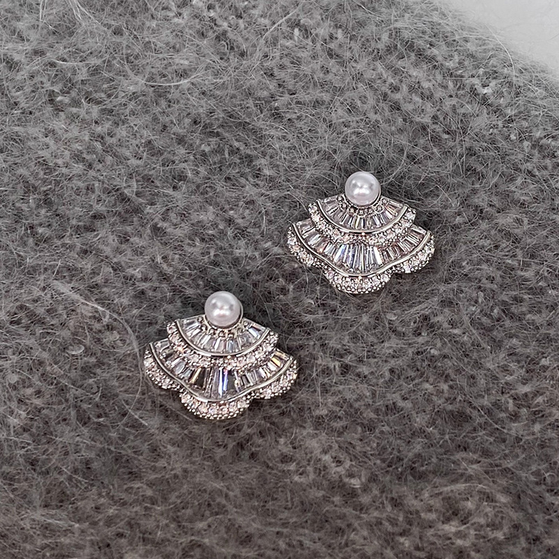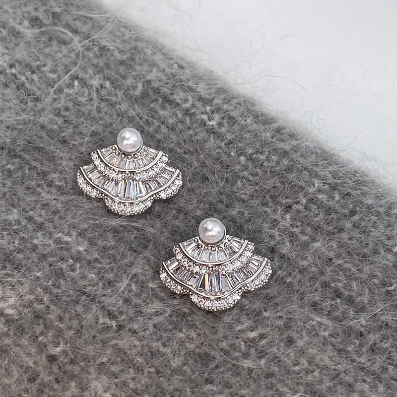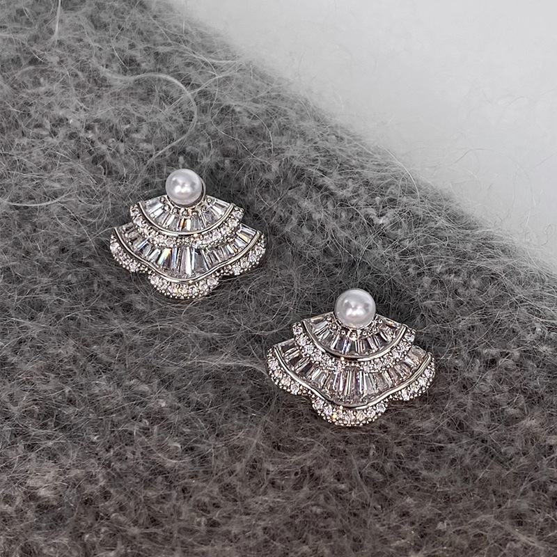 银针韩国时尚锆石扇形珍珠耳钉精致简约气质耳环轻奢高级感耳饰女 English | 投诉