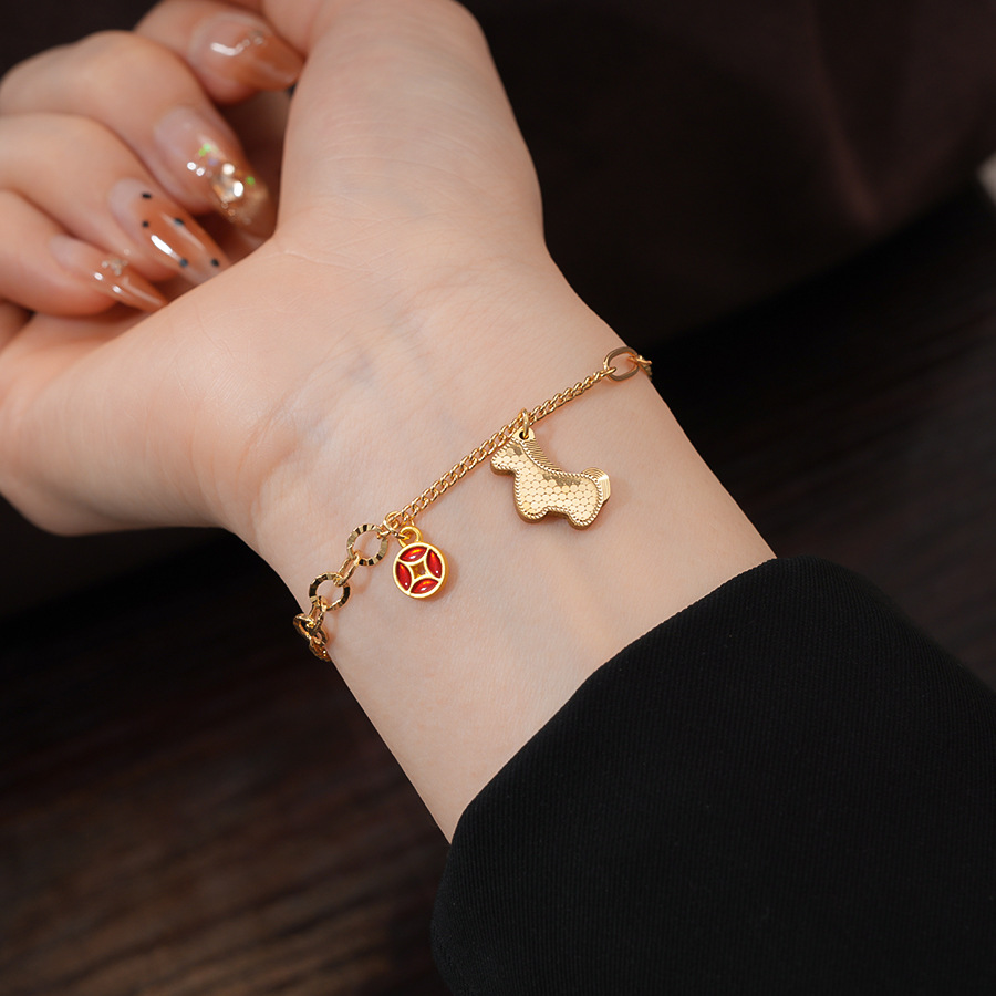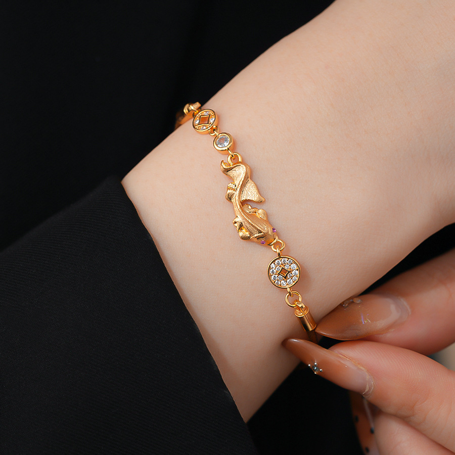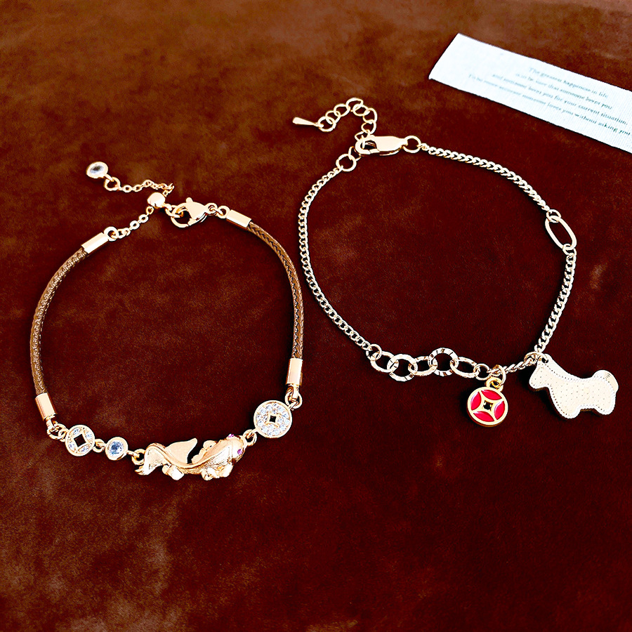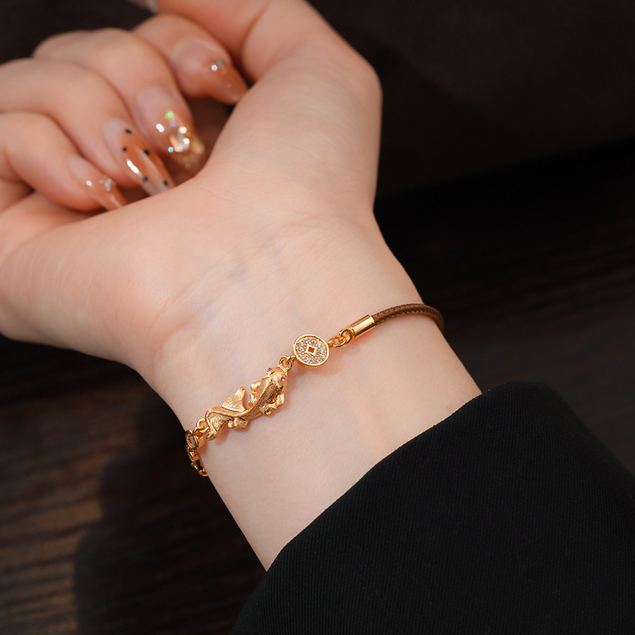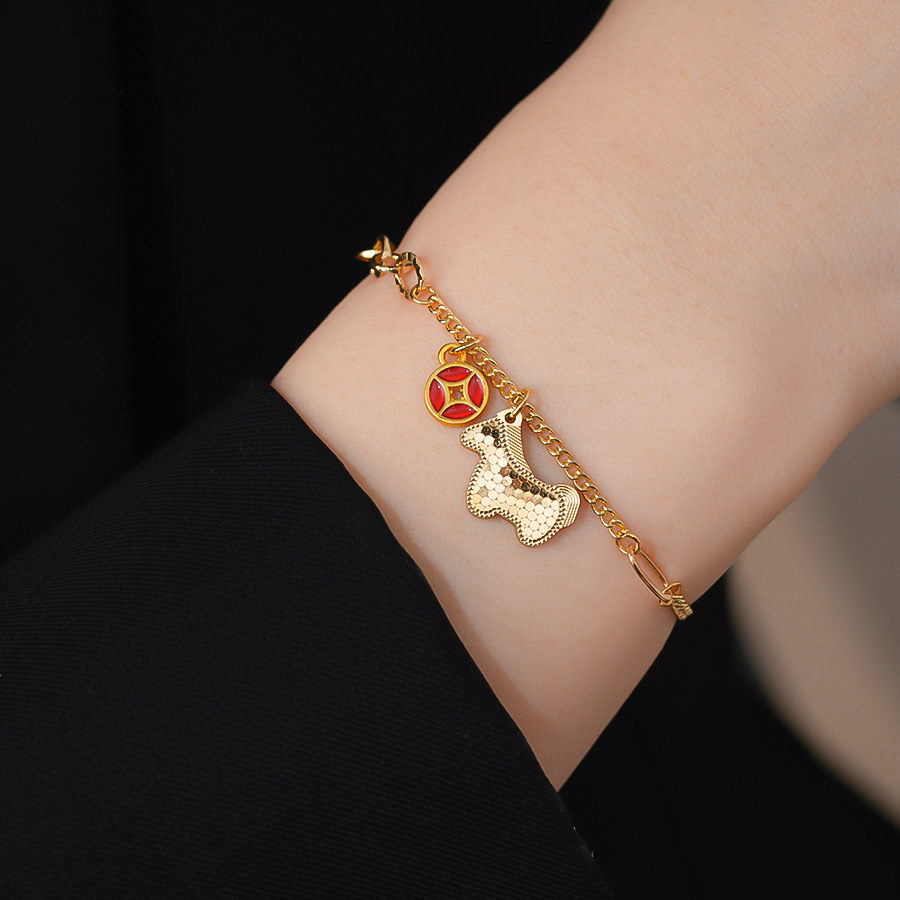材质: 铜 品牌: 丰美饰品厂 处理工艺: 镶锆石 风格: 新中式 适用人群: 女式 样式: 女式 造型: 动物/生肖 适用送礼场合: 展销会 货号: HB5063-HB5066 产地: 义乌 颜色: 手链-金色-咖色(真金电镀),手链-金色 有可授权的自有品牌: 是 是否跨境出口专供货源: 是 流行元素: 锦鲤 上市年份/季节: 2025年冬季 风格分类: 个性风潮 流行元素分类: 动物 重量: 0.5 kg/条