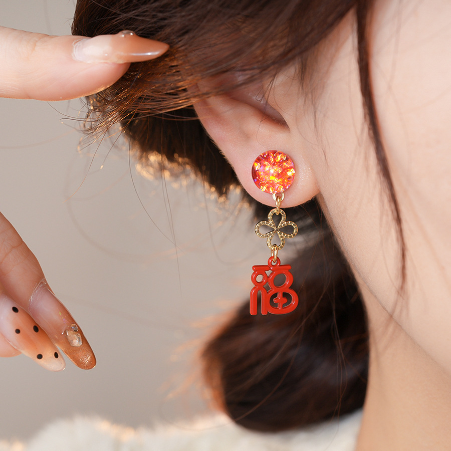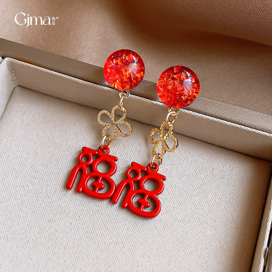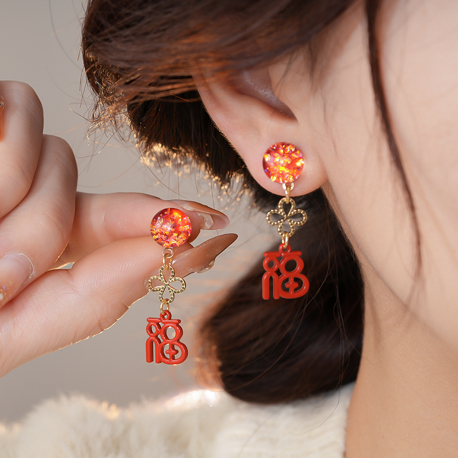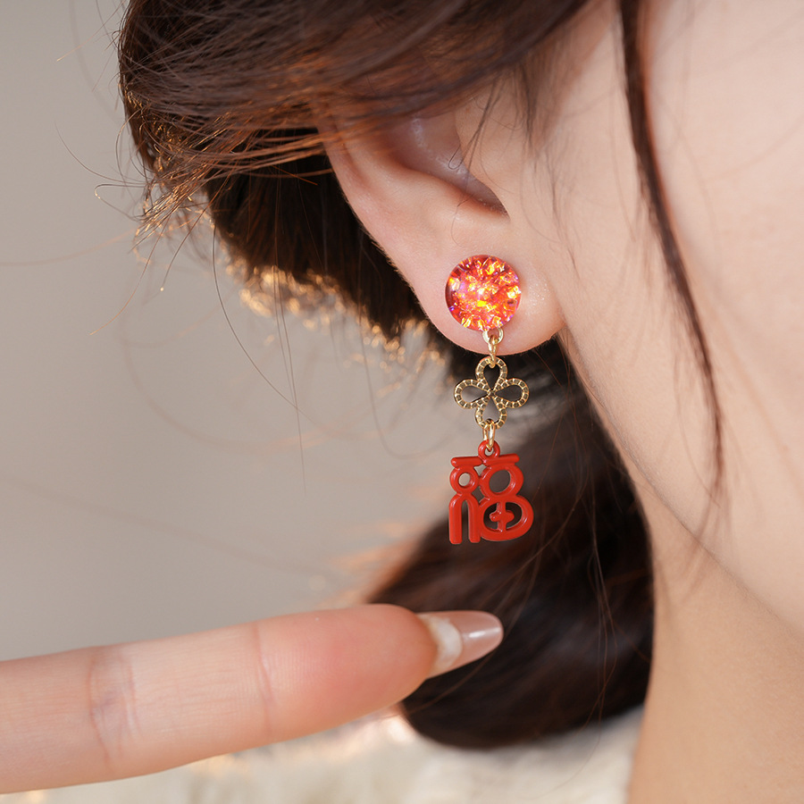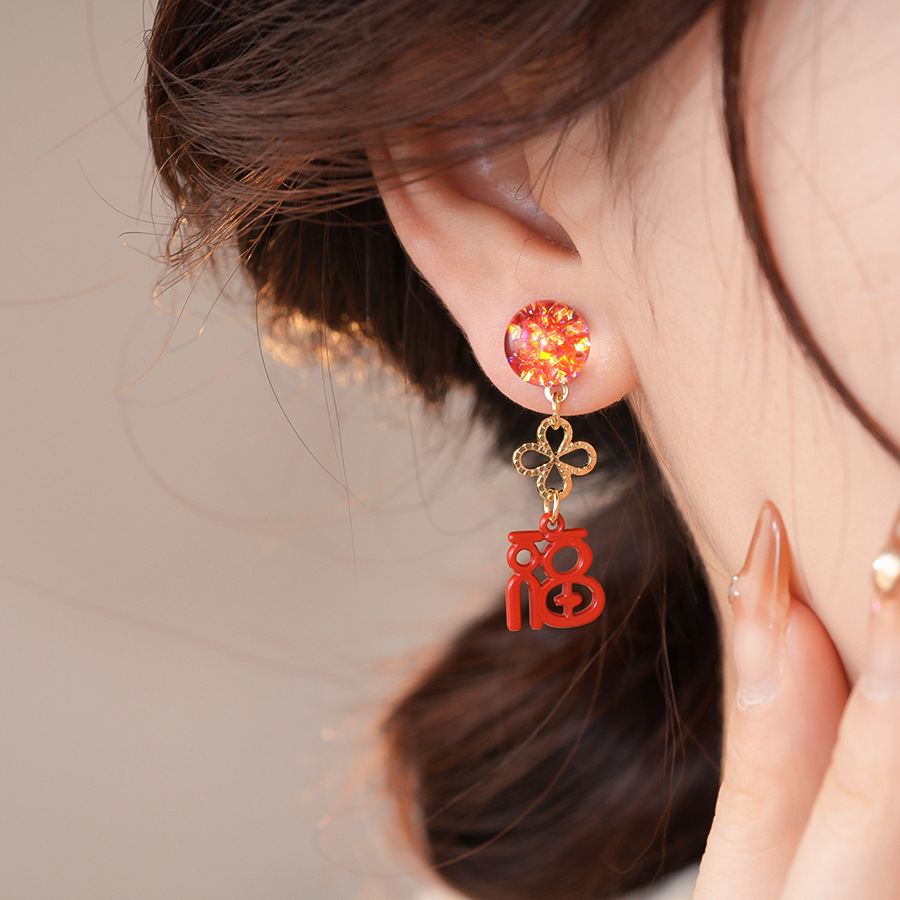 银针新中式中国风花朵红色福字耳环轻奢高级感耳钉时尚简约耳饰女 English | 投诉