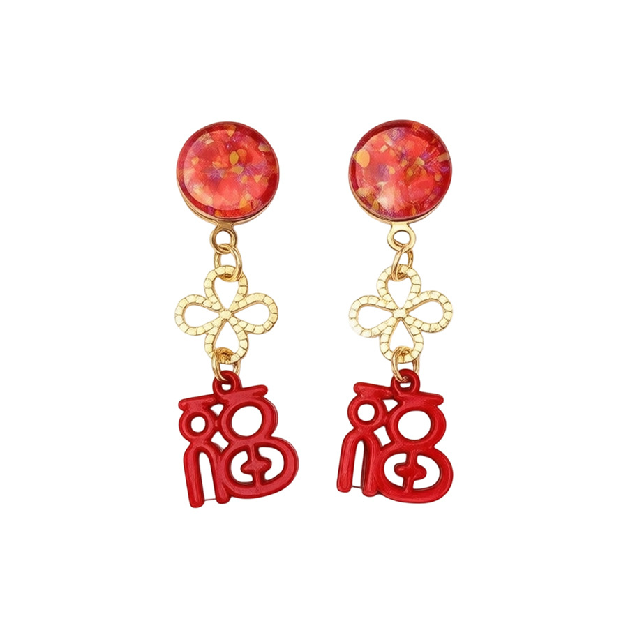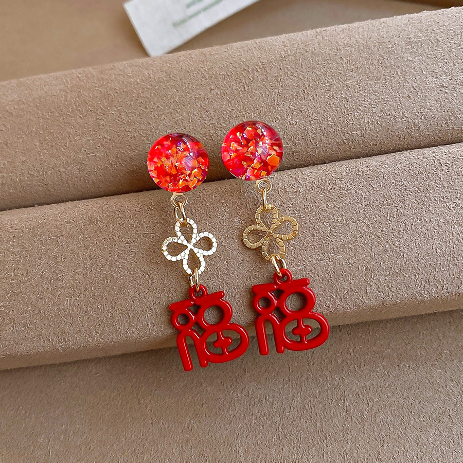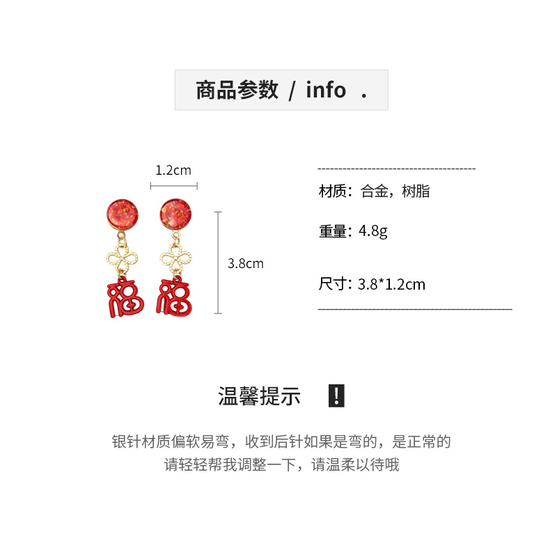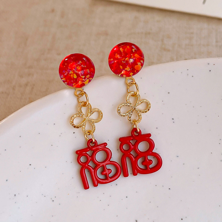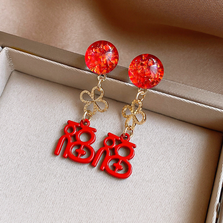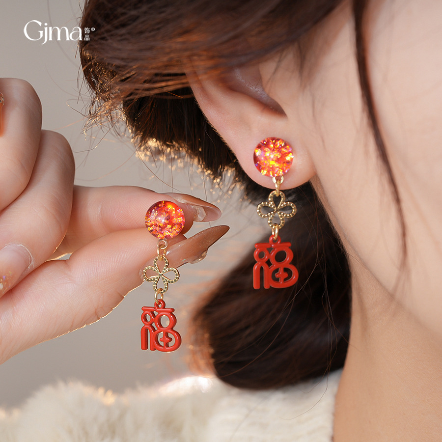 银针新中式中国风花朵红色福字耳环轻奢高级感耳钉时尚简约耳饰女 English | 投诉