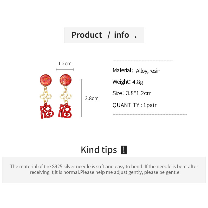 材质: 合金 处理工艺: 滴油 品牌: 丰美饰品厂 流行元素: 汉字 风格: 中国风 货号: WE5666-1 造型: 字母/数字/文字 产地: 义乌 颜色: 银针-红色 有可授权的自有品牌: 是 是否跨境出口专供货源: 是 上市年份/季节: 2025年冬季 耳针材质: 钢 风格分类: 文艺复古 适用人群: 女式 流行元素分类: 字母/数字/文字 重量: 0.5 kg/对