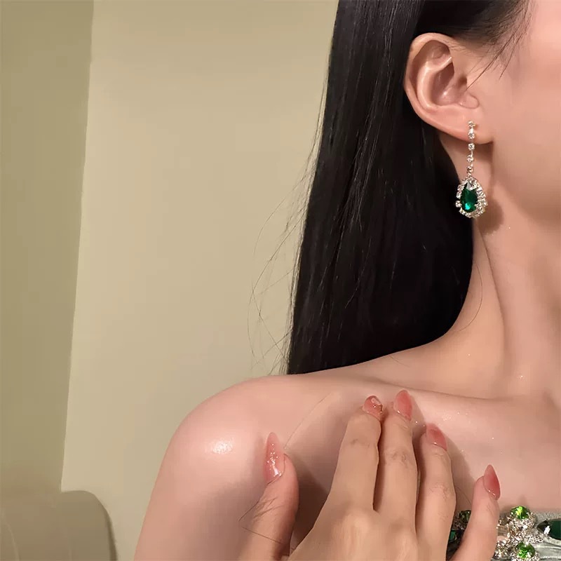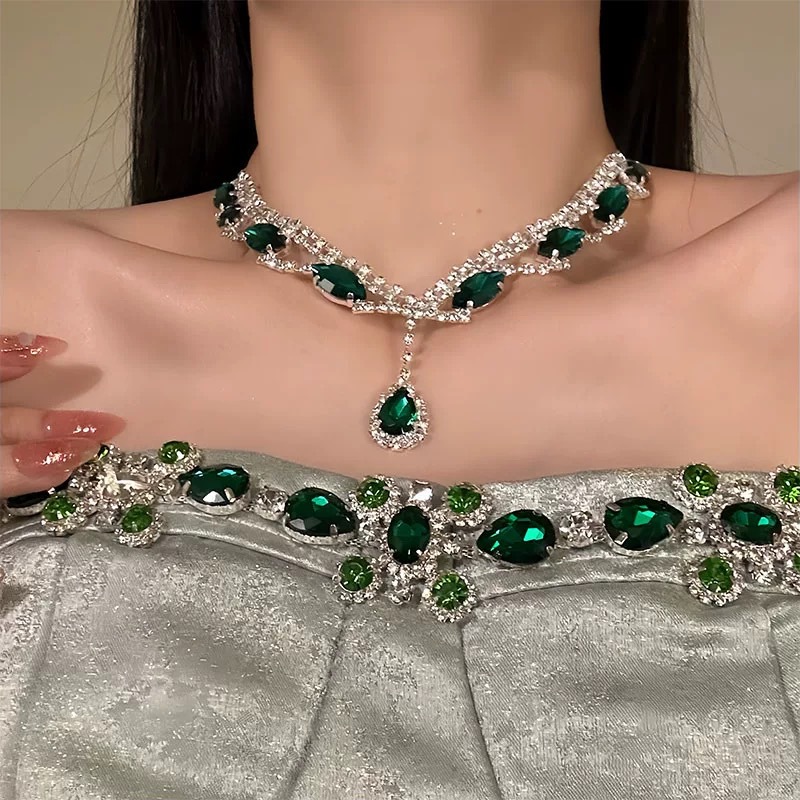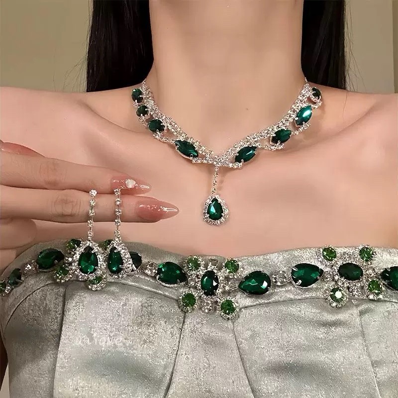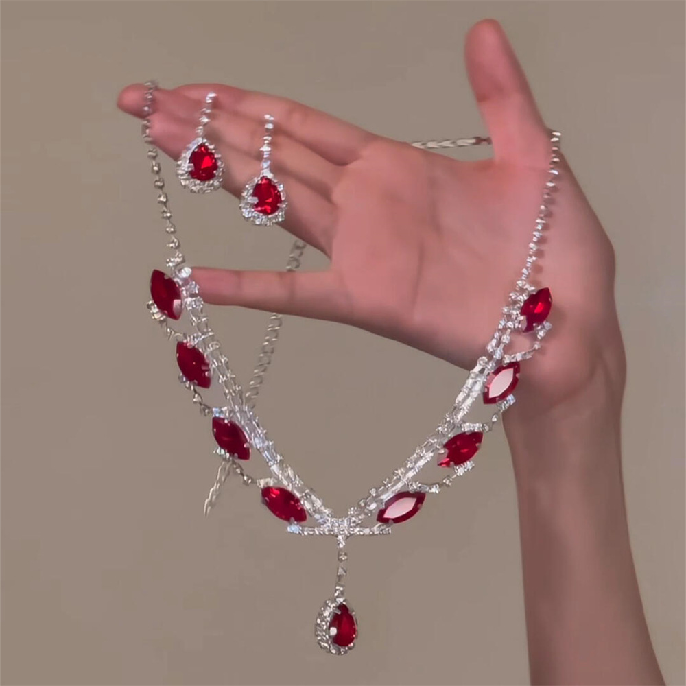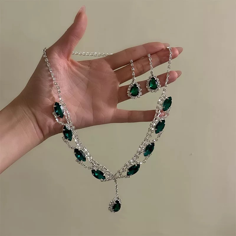 欧美跨境镶钻水滴吊坠耳钉项链套装轻奢小众锁骨链简约时尚项饰女 English | 投诉