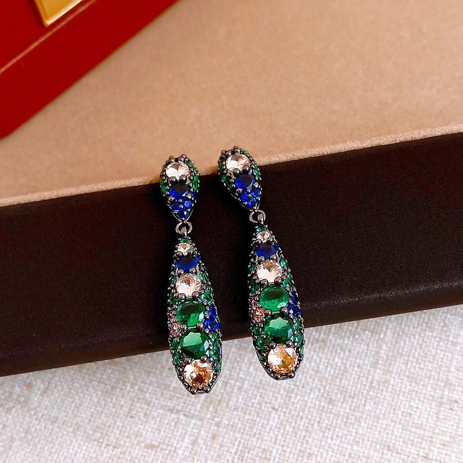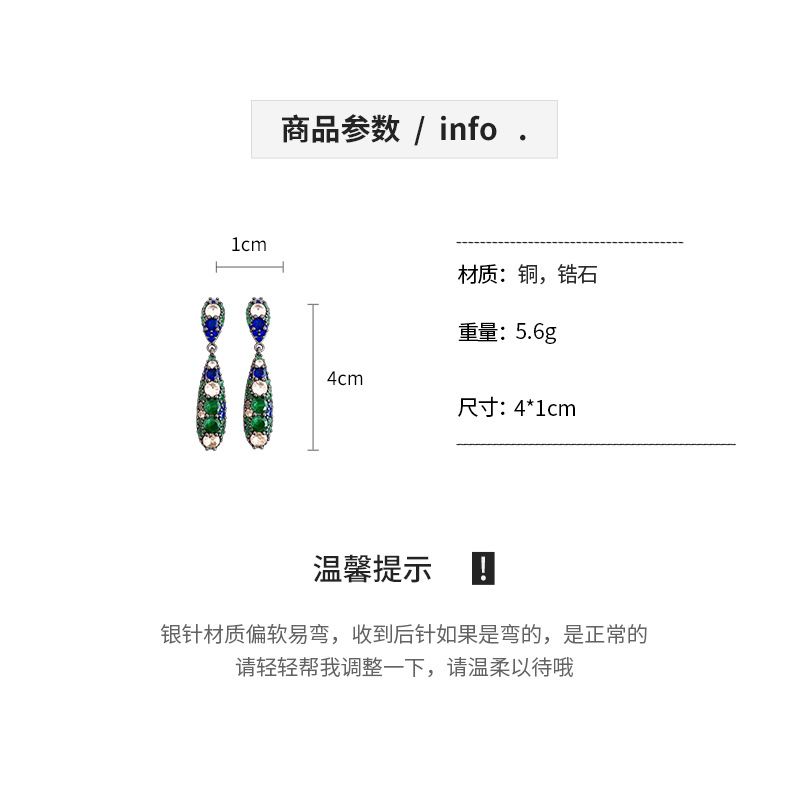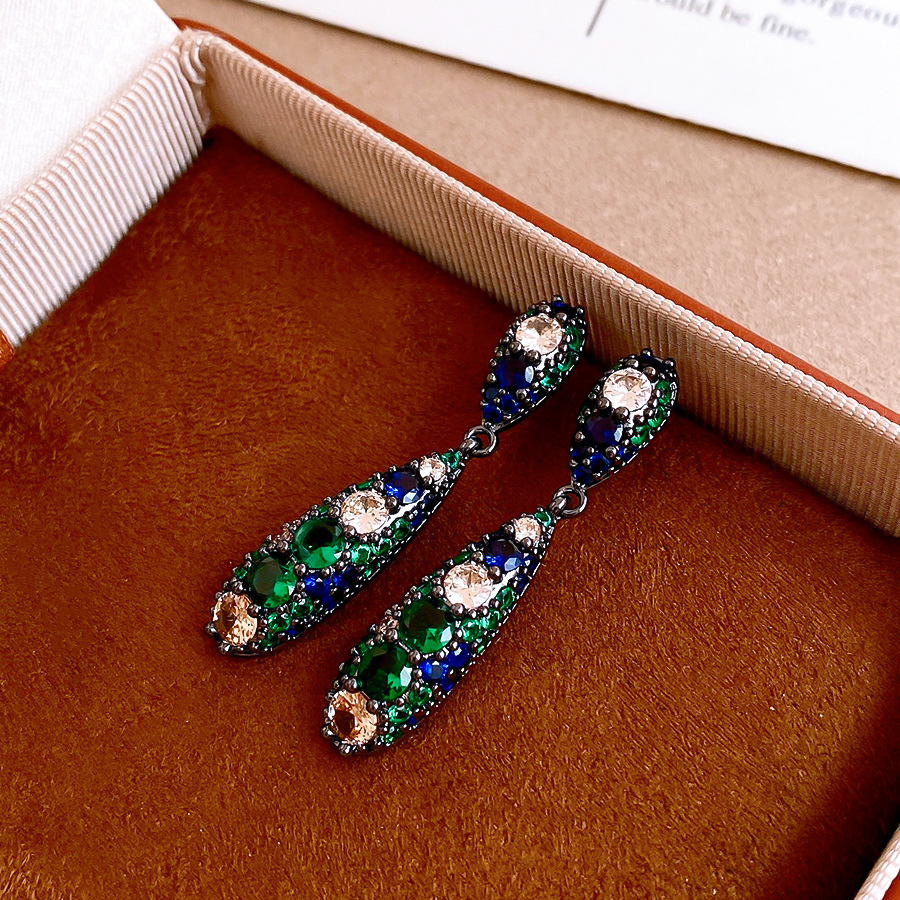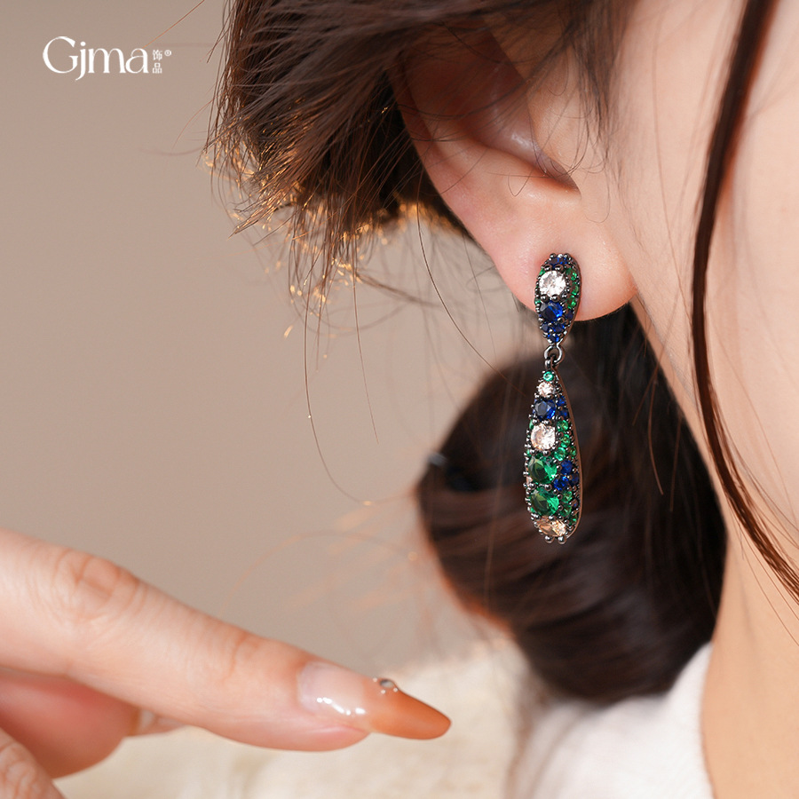 银针欧美祖母绿锆石水滴耳环轻奢高级感耳钉时尚个性气质耳饰批发 English | 投诉