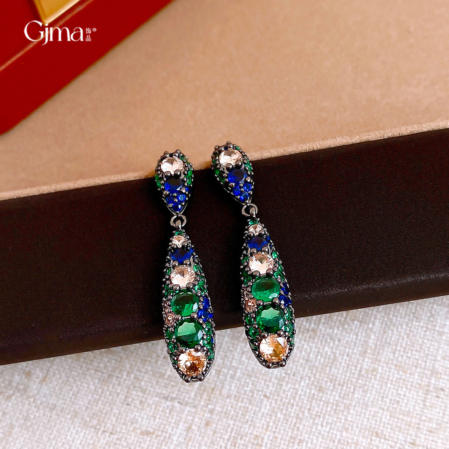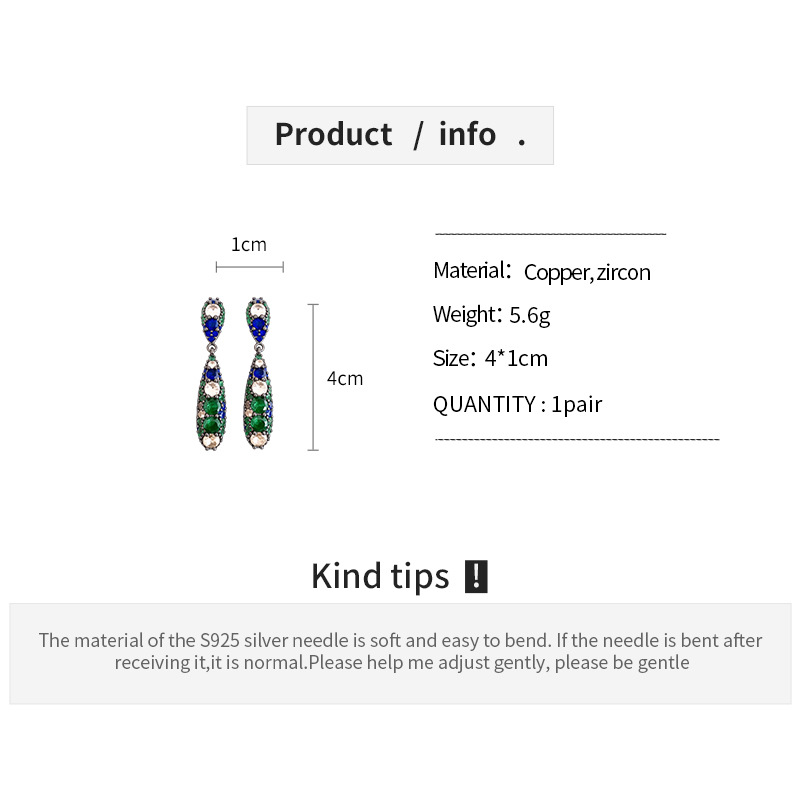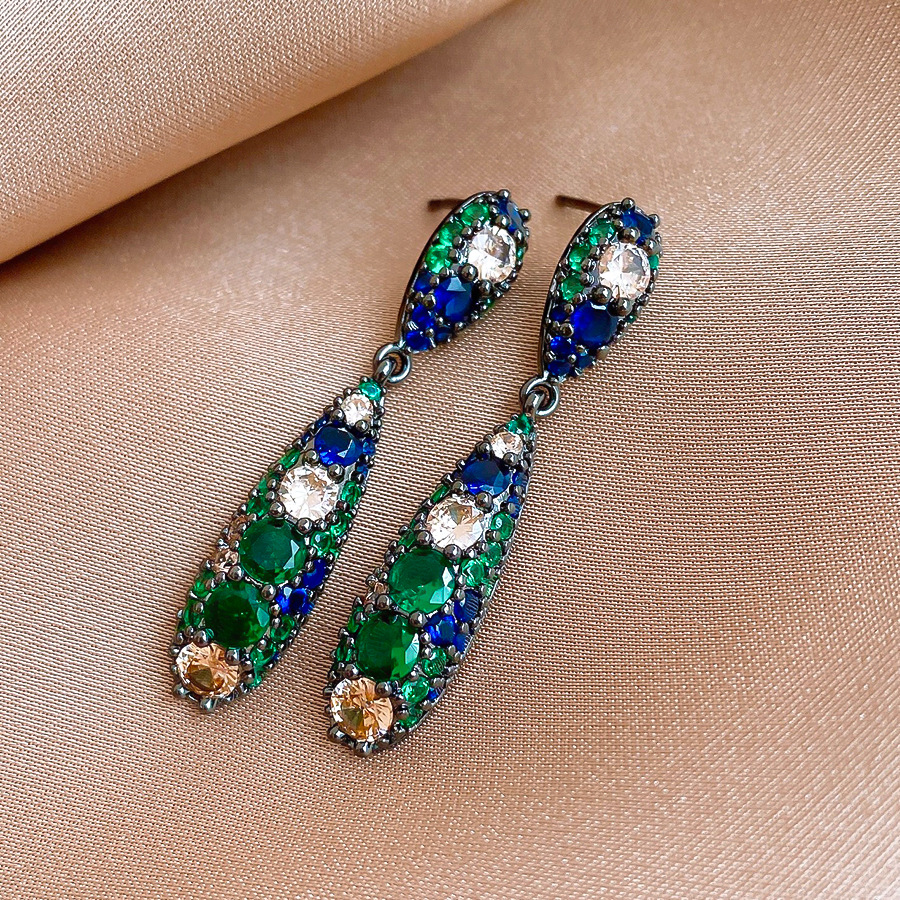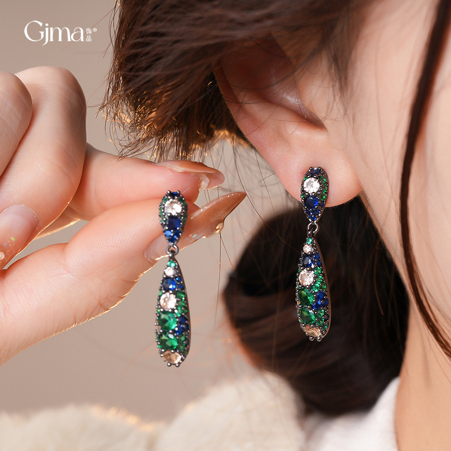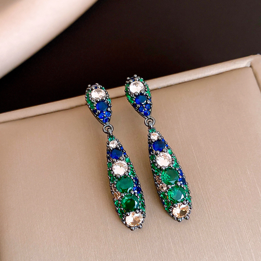银针欧美祖母绿锆石水滴耳环轻奢高级感耳钉时尚个性气质耳饰批发 English | 投诉