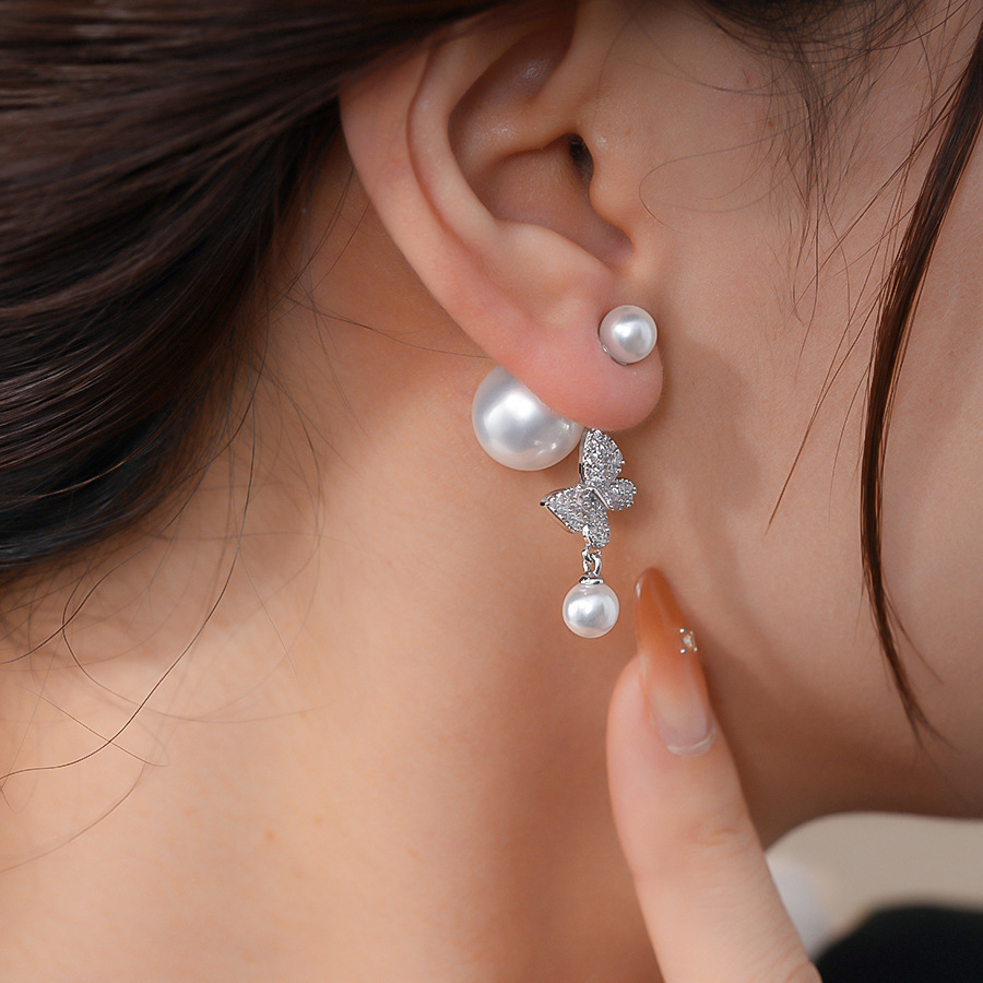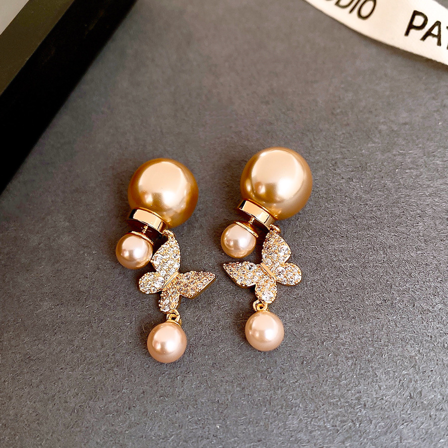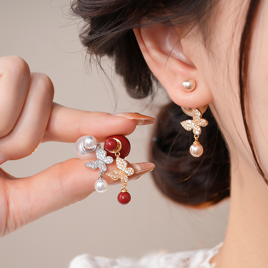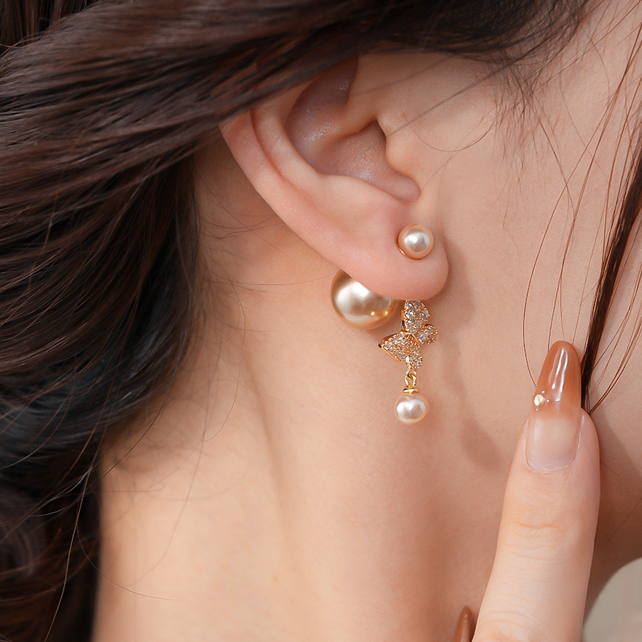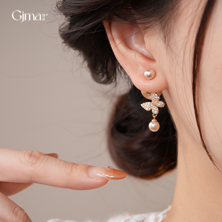 18k真金电镀复古锆石蝴蝶珍珠耳环轻奢高级感耳钉时尚气质耳饰女 English | 投诉