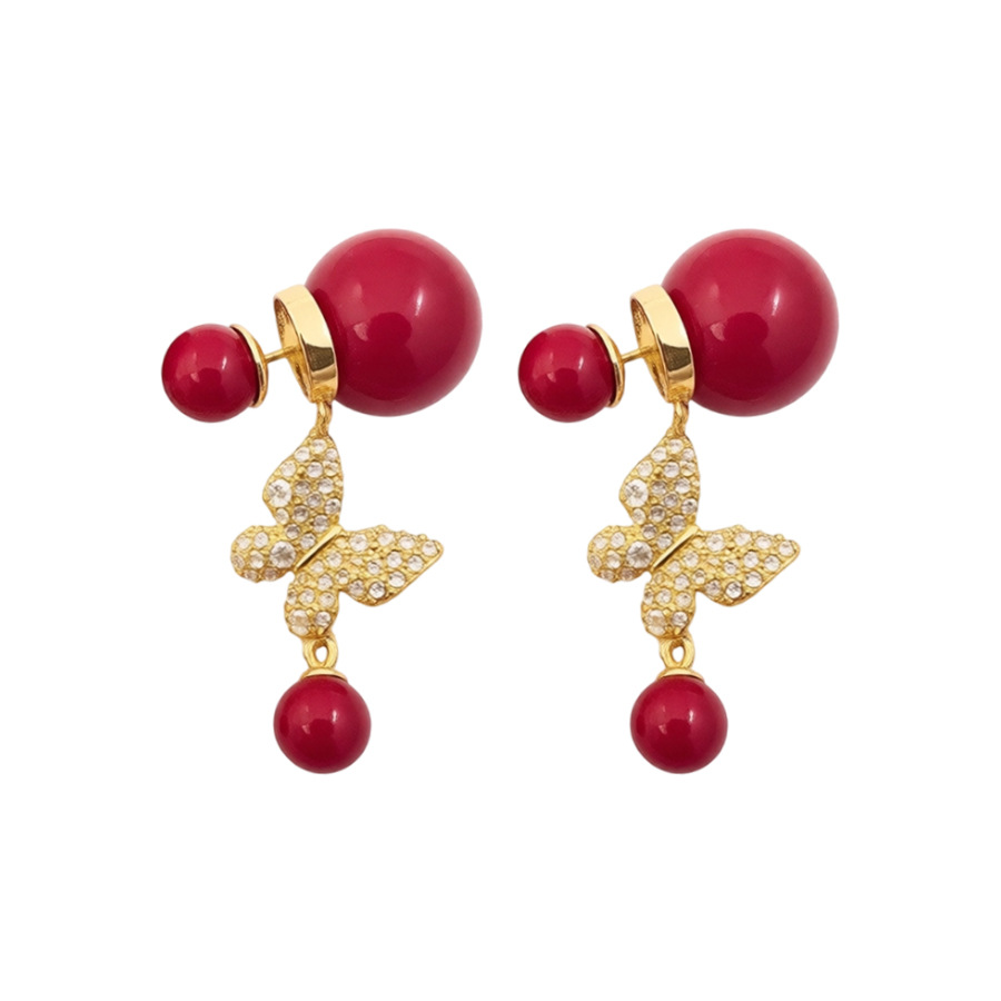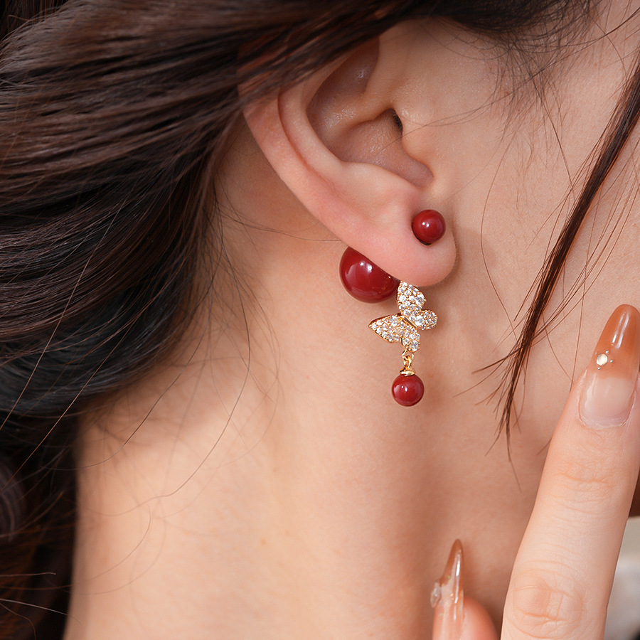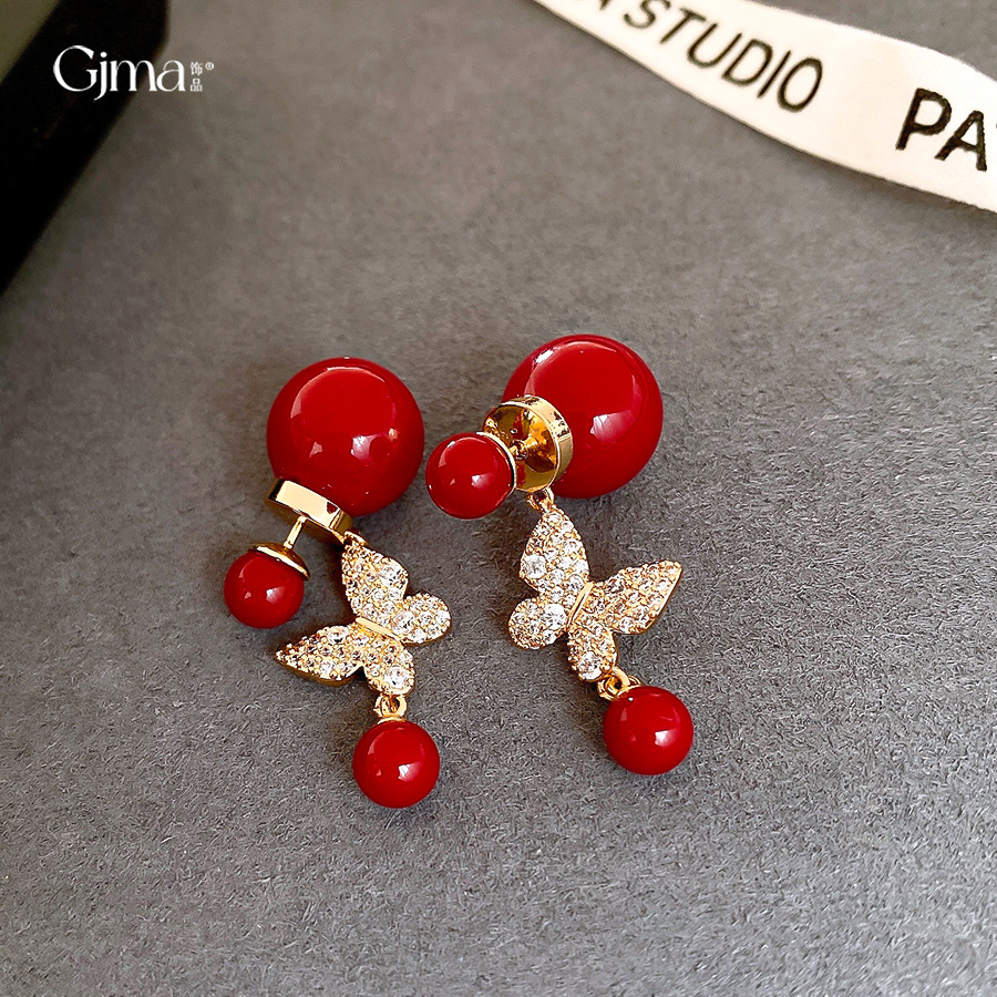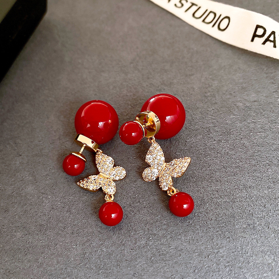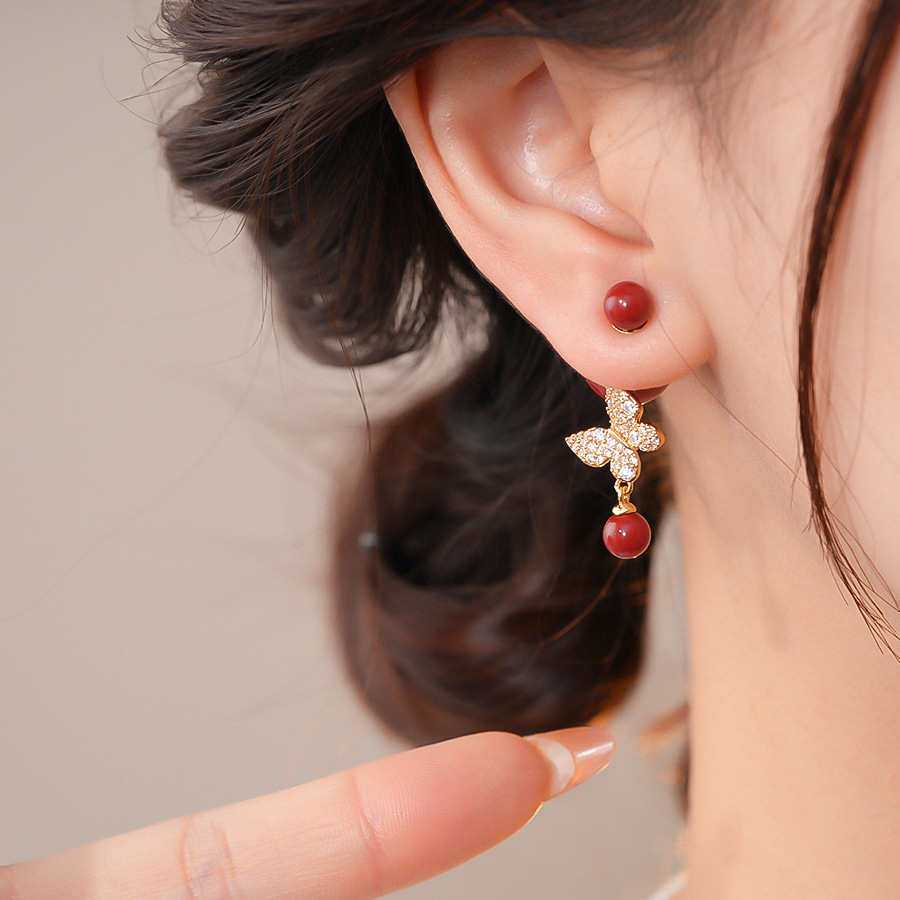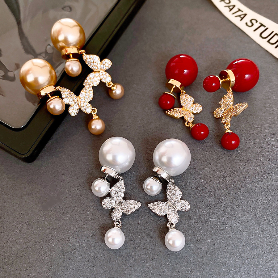18k真金电镀复古锆石蝴蝶珍珠耳环轻奢高级感耳钉时尚气质耳饰女 English | 投诉