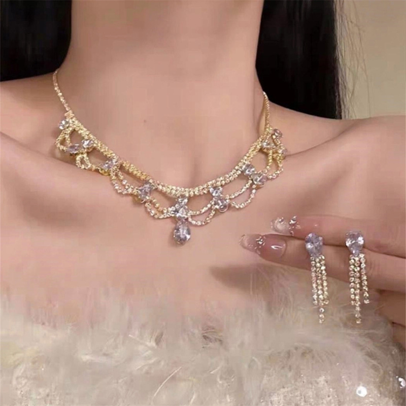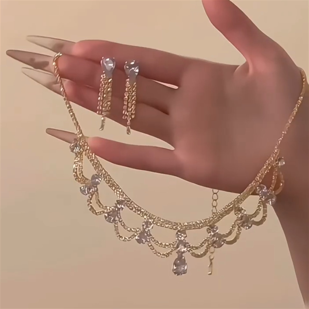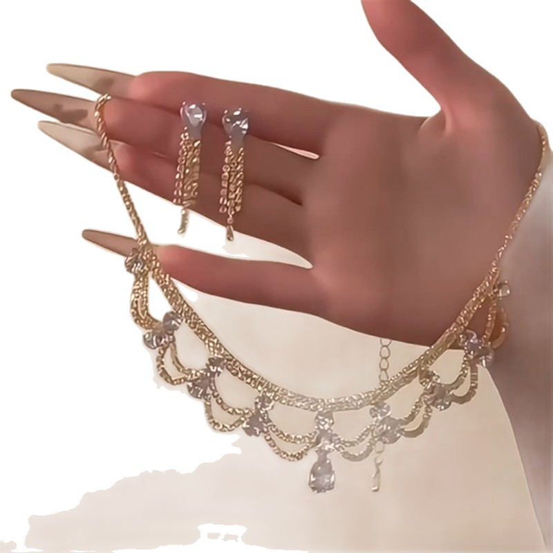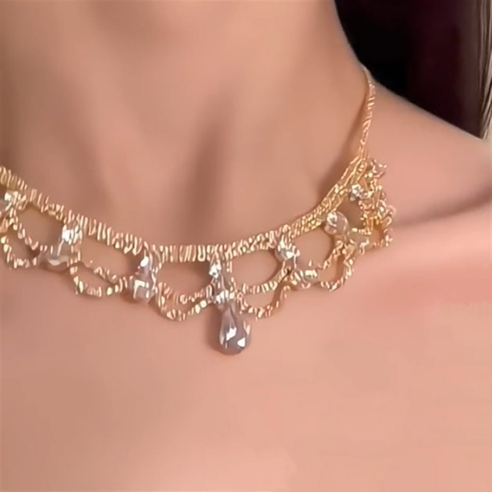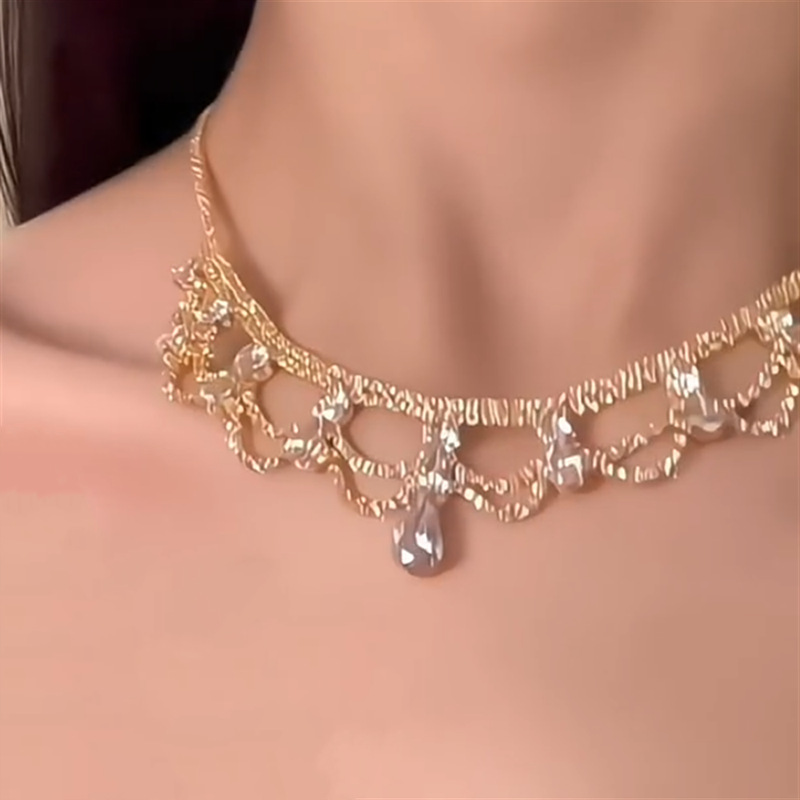 欧美跨境镶钻水滴花边项链配饰女潮流百搭锁骨链轻奢高级感项饰品 English | 投诉