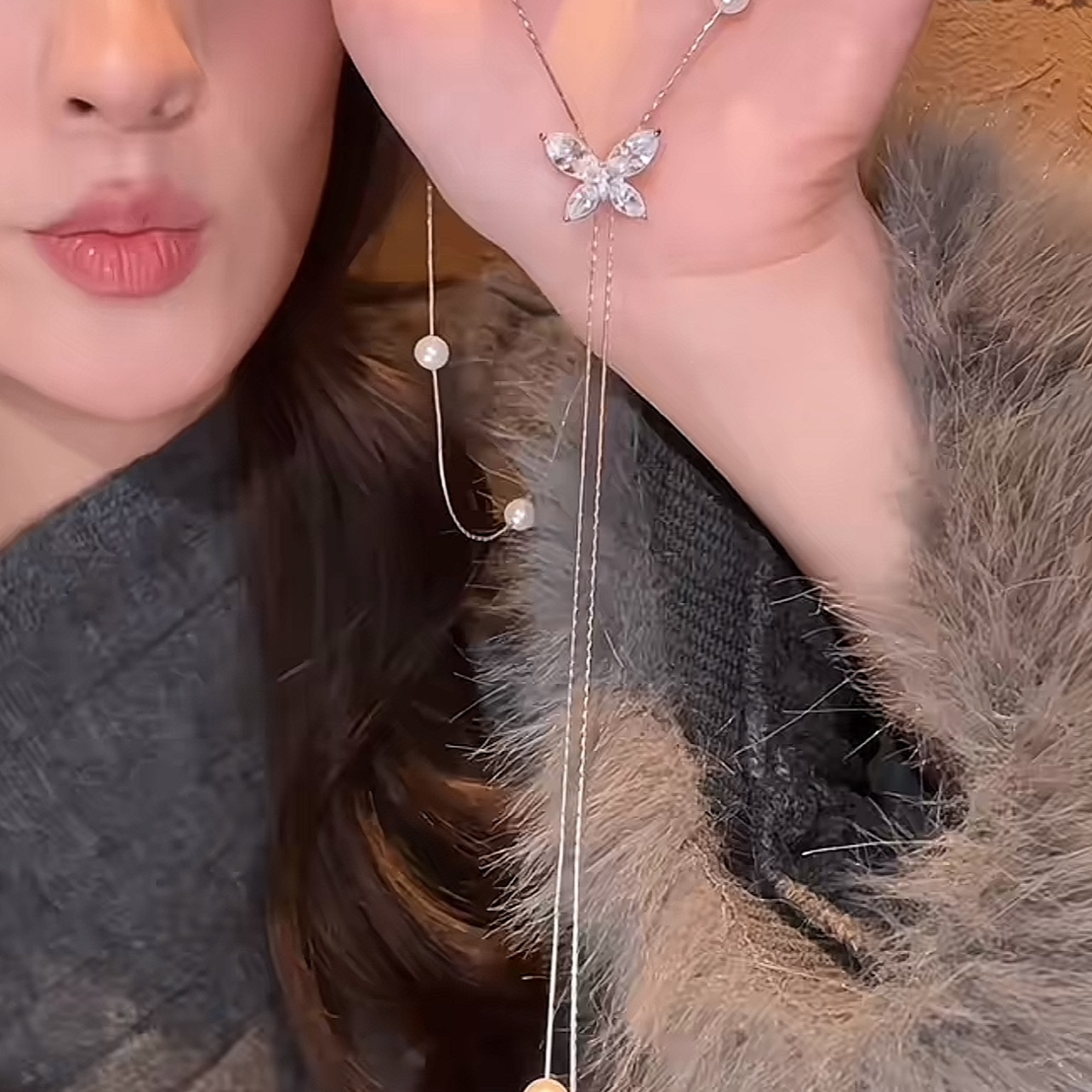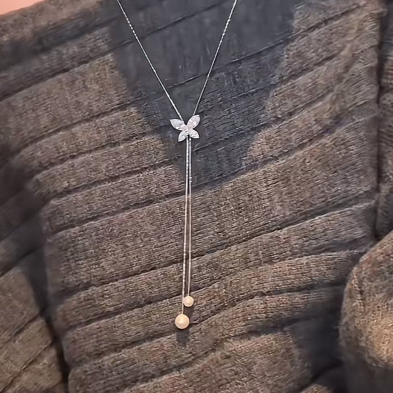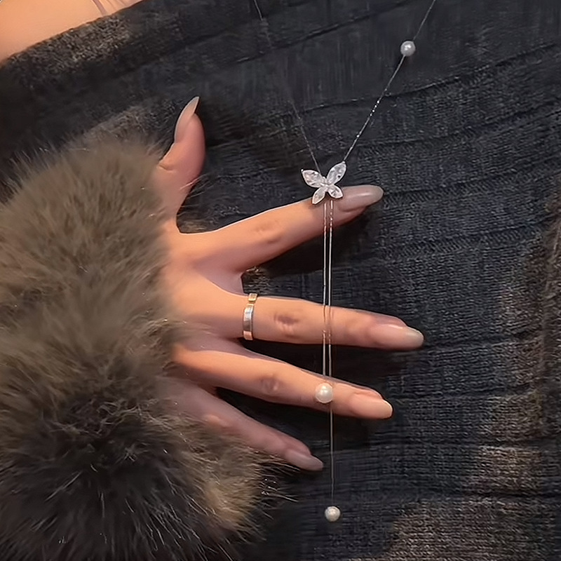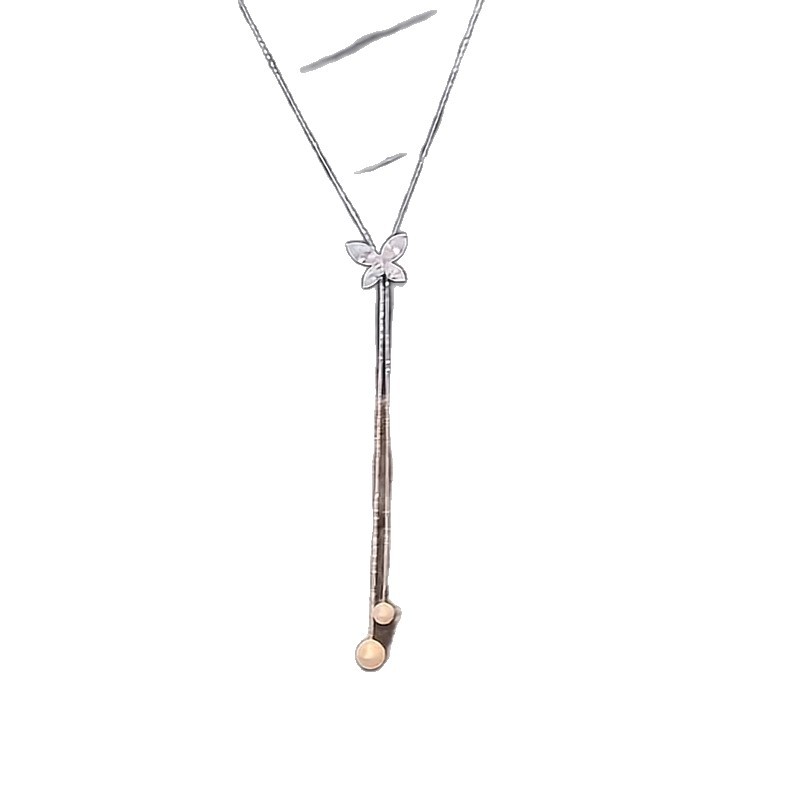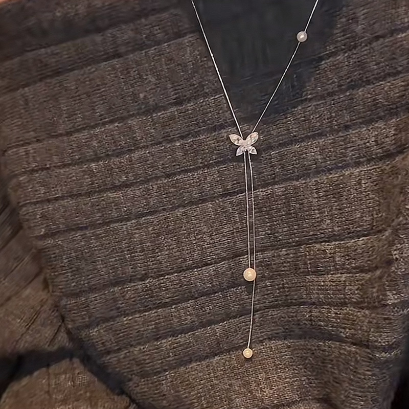 韩版时尚锆石蝴蝶流苏珍珠项链个性气质毛衣链轻奢高级感项饰批发 English | 投诉