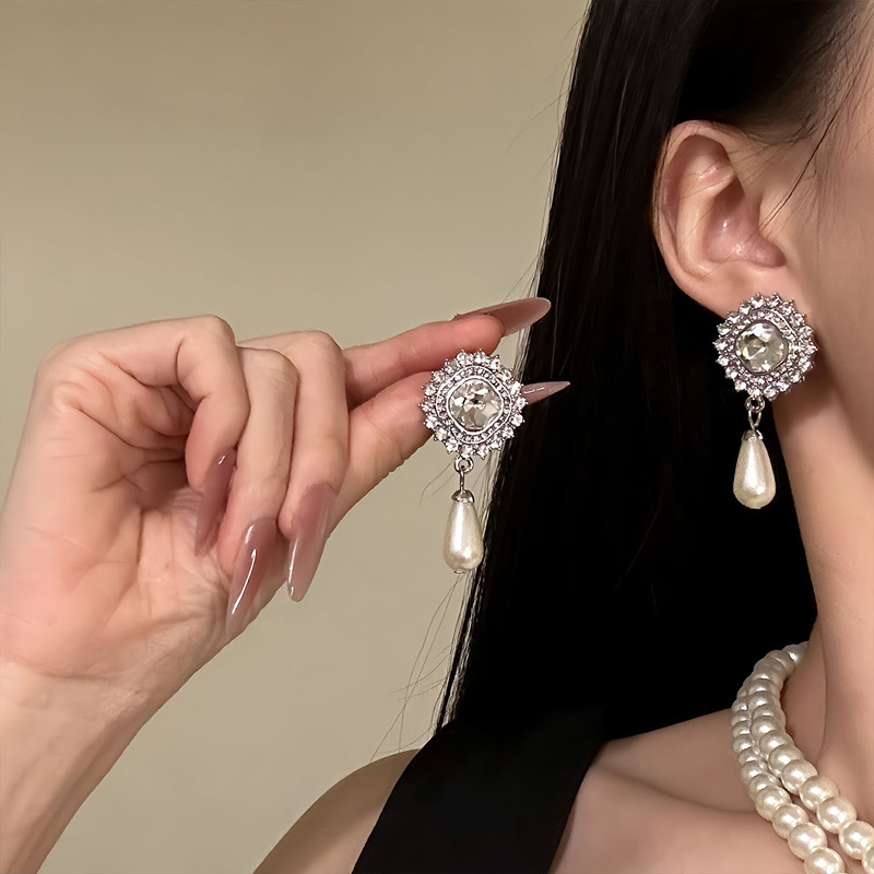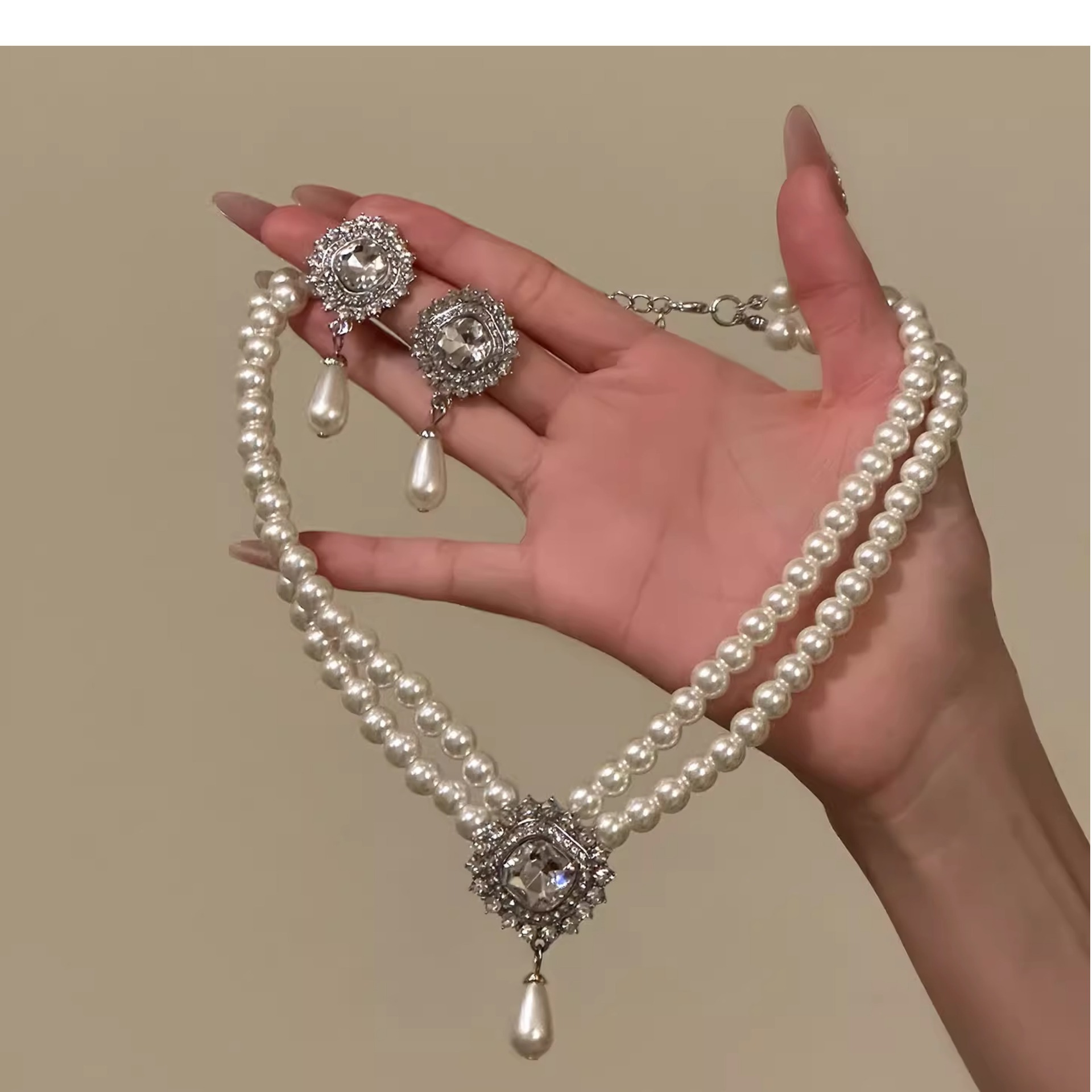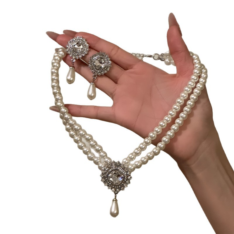 欧美宫廷风镶钻几何水滴珍珠项链配饰女重工毛衣链轻奢高级感项饰 English | 投诉