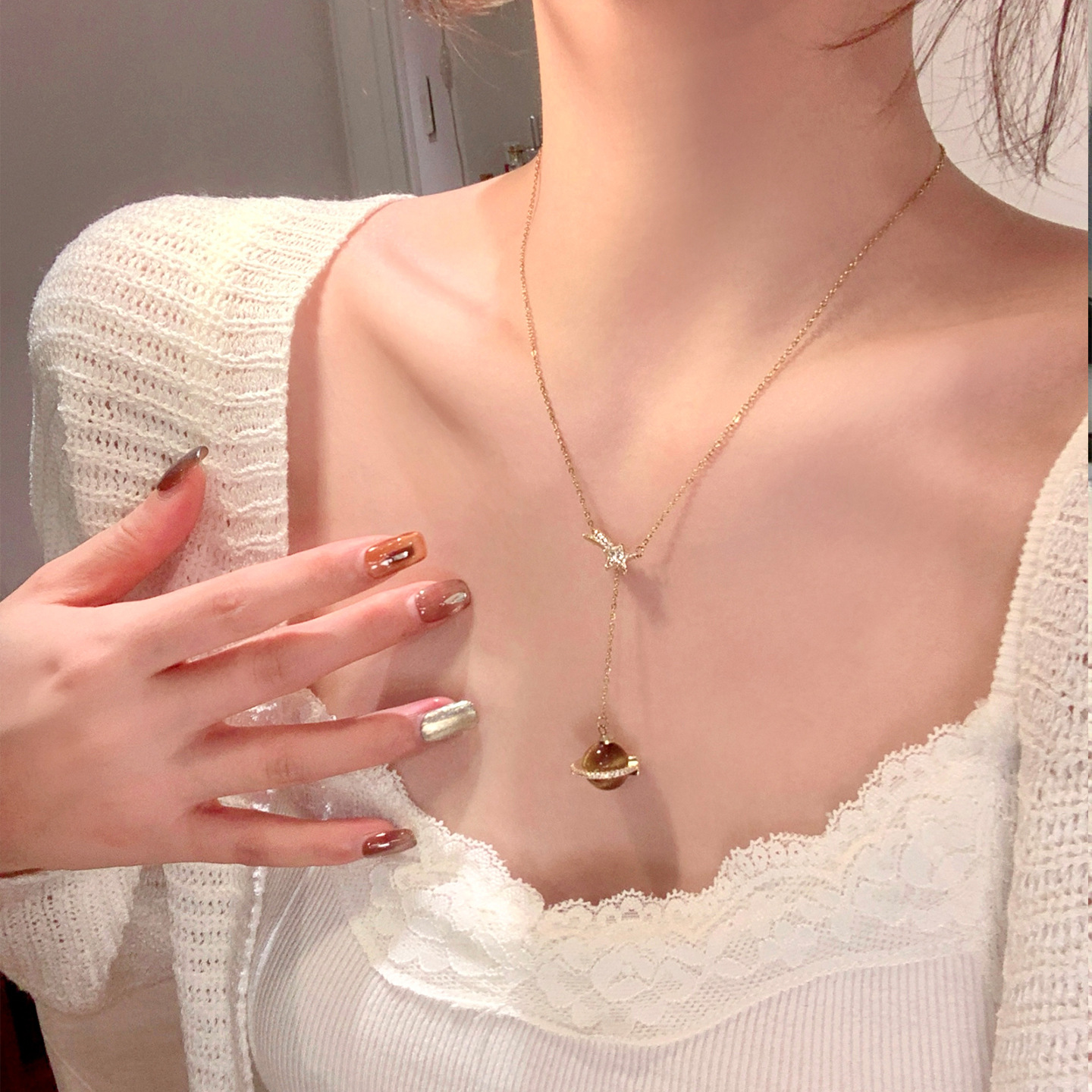 复古美拉德简约锆石土星流苏项链配饰女时尚毛衣链轻奢高级感项饰 English | 投诉